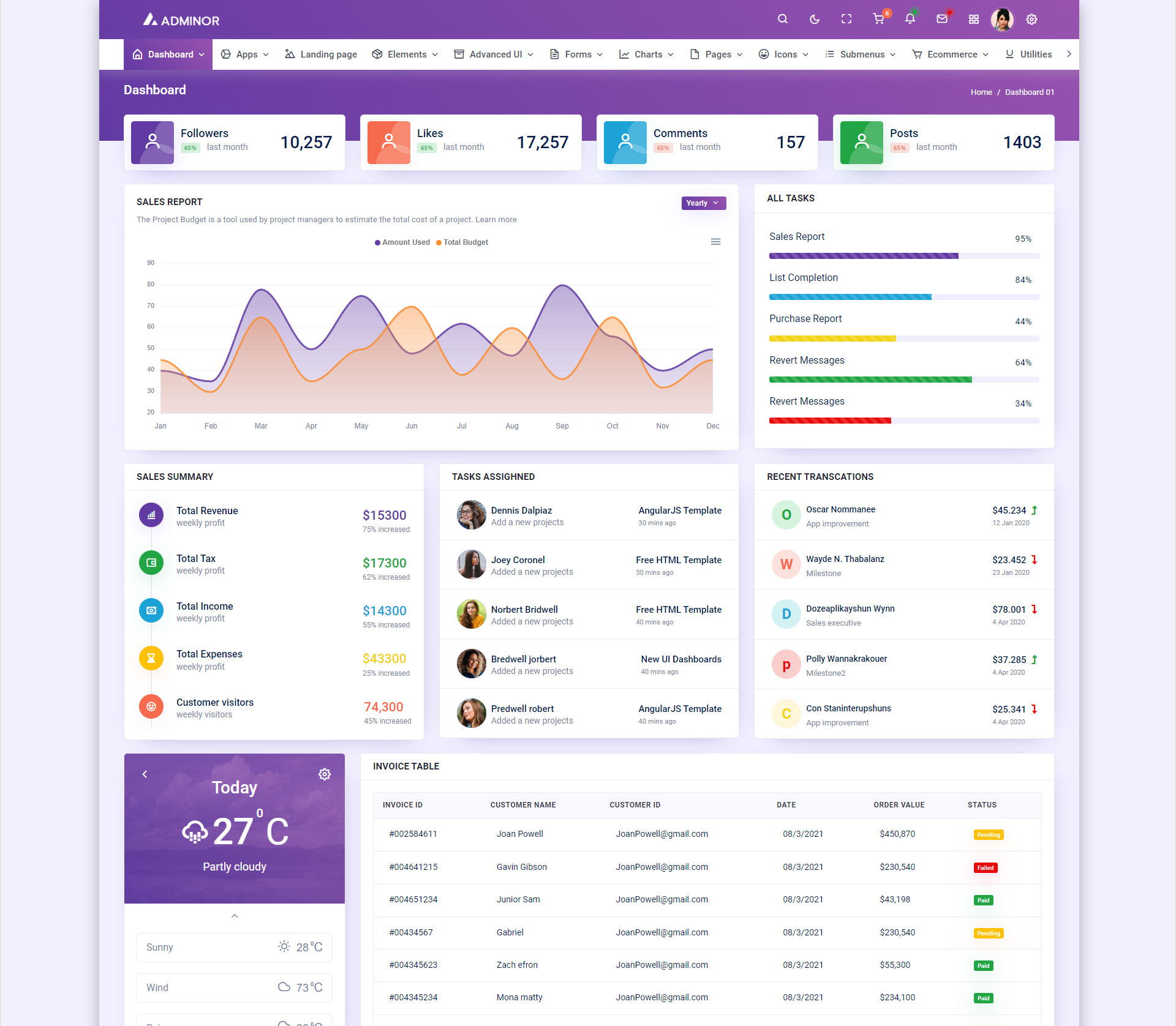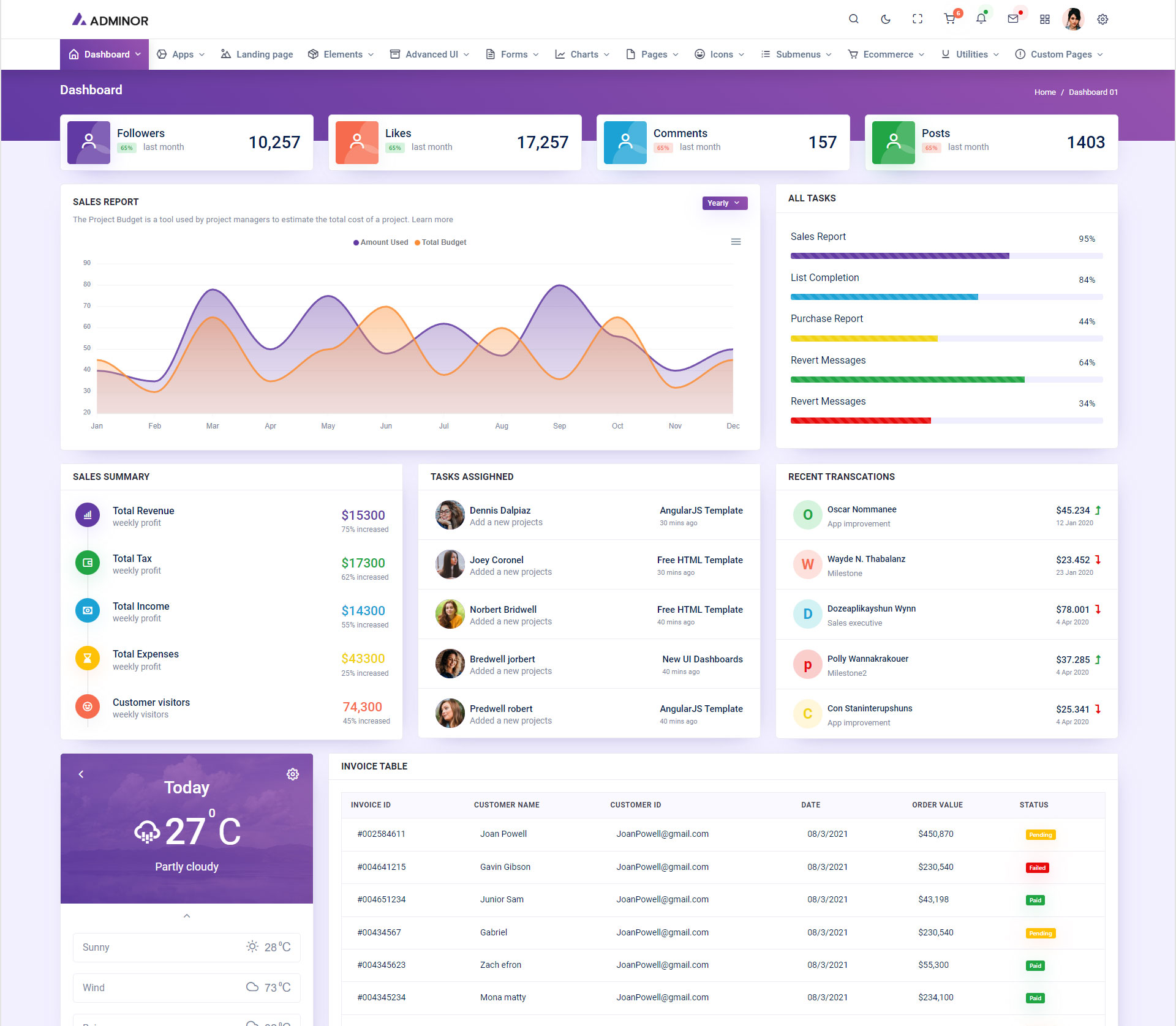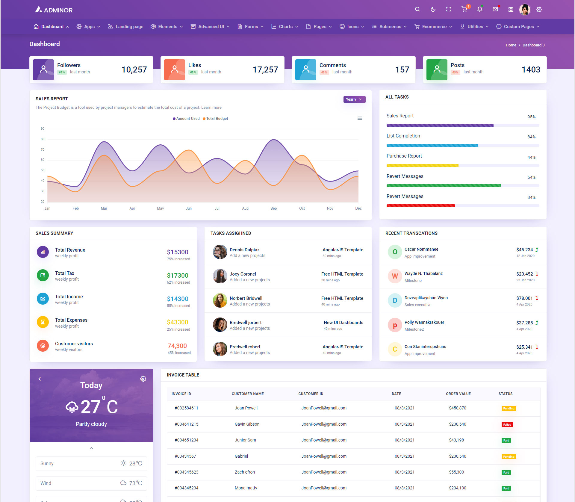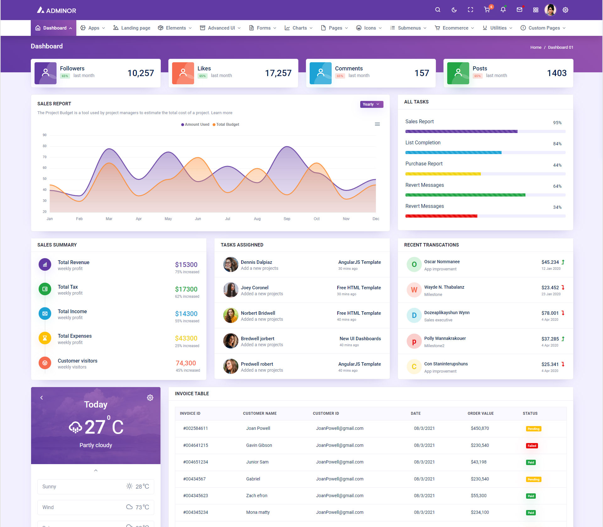 Adminor - Django Premium Bootstrap 5 Admin & Dashboard Template boasts essential features such as design quality, compatibility with your front-end framework, responsiveness, ease of customization, comprehensive documentation, and dedicated support. Additionally, it includes integrated plugins and other supplementary features.
