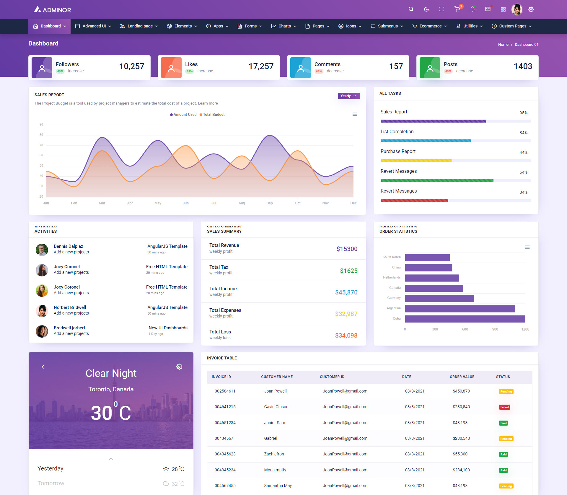 The Adminor Django Dashboard Template comes with a wealth of ready-to-use features, saving developers significant time with its array of pre-built functionalities.