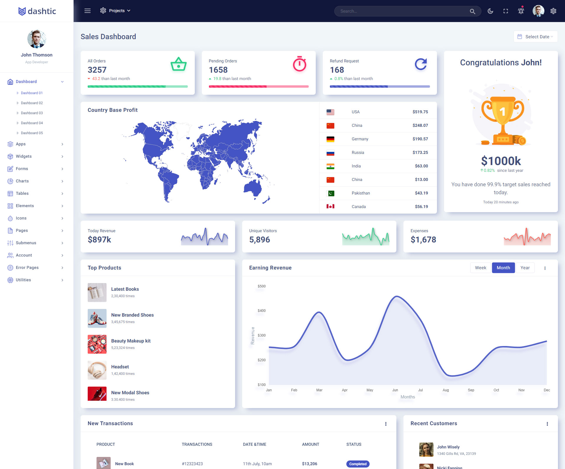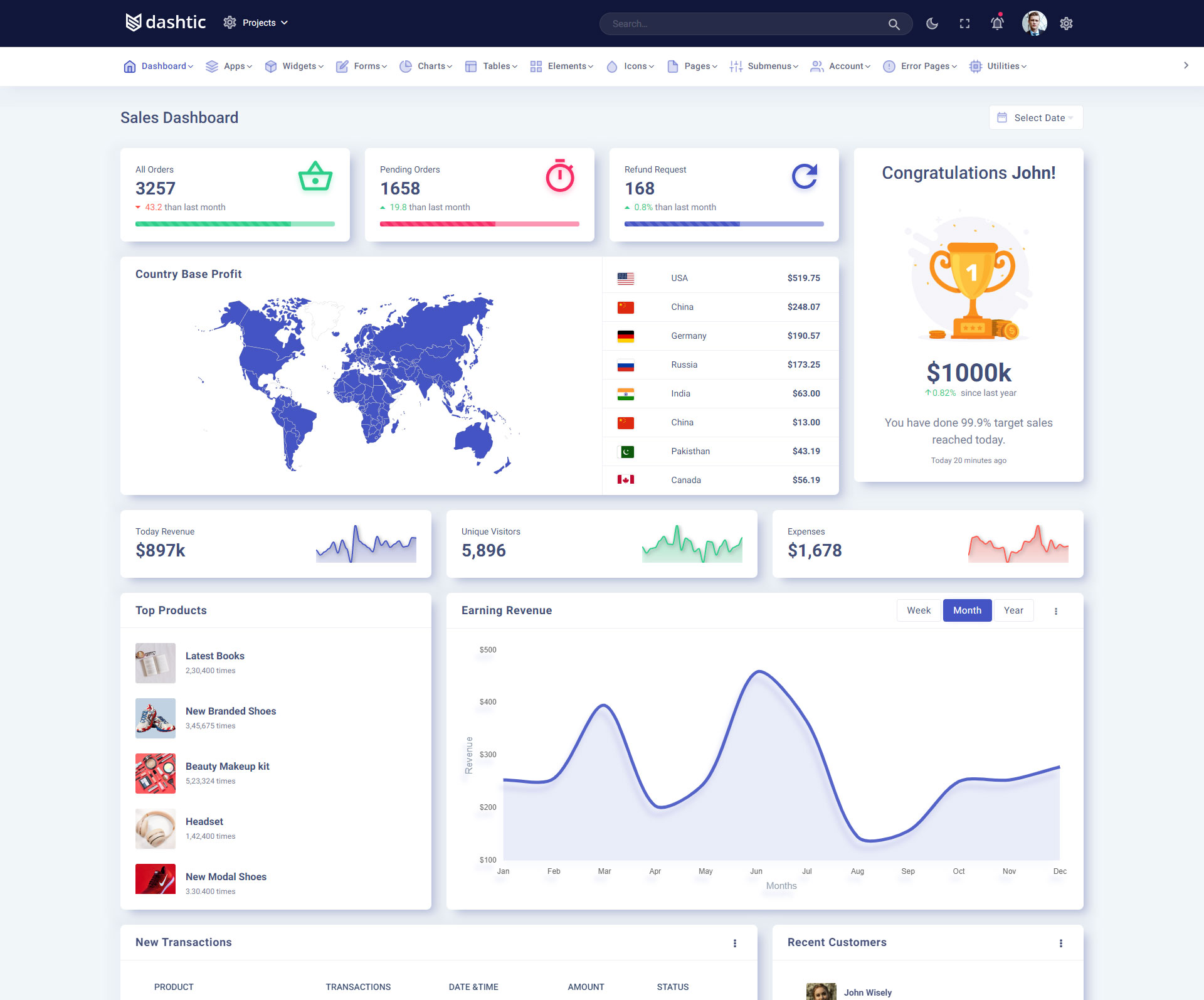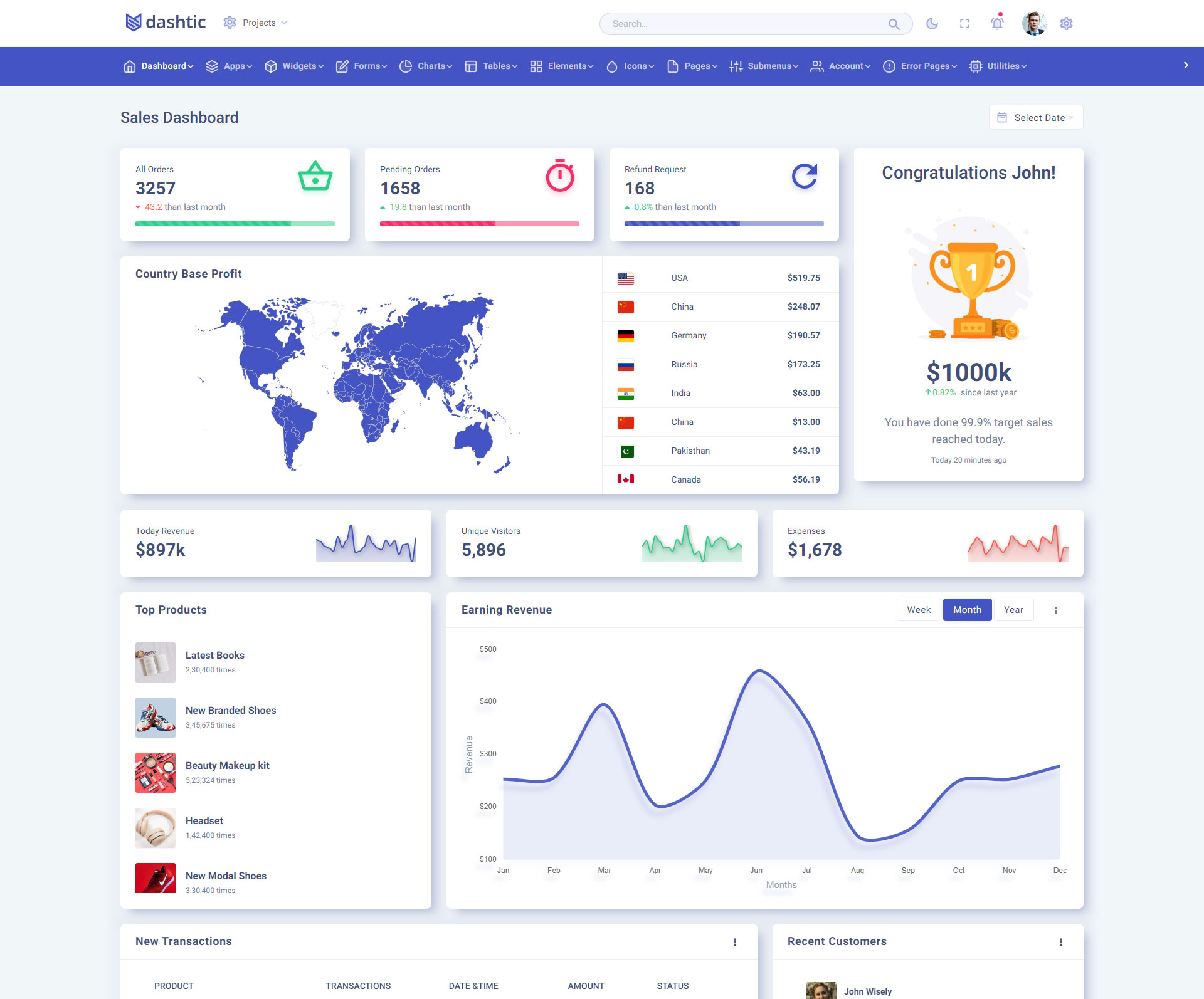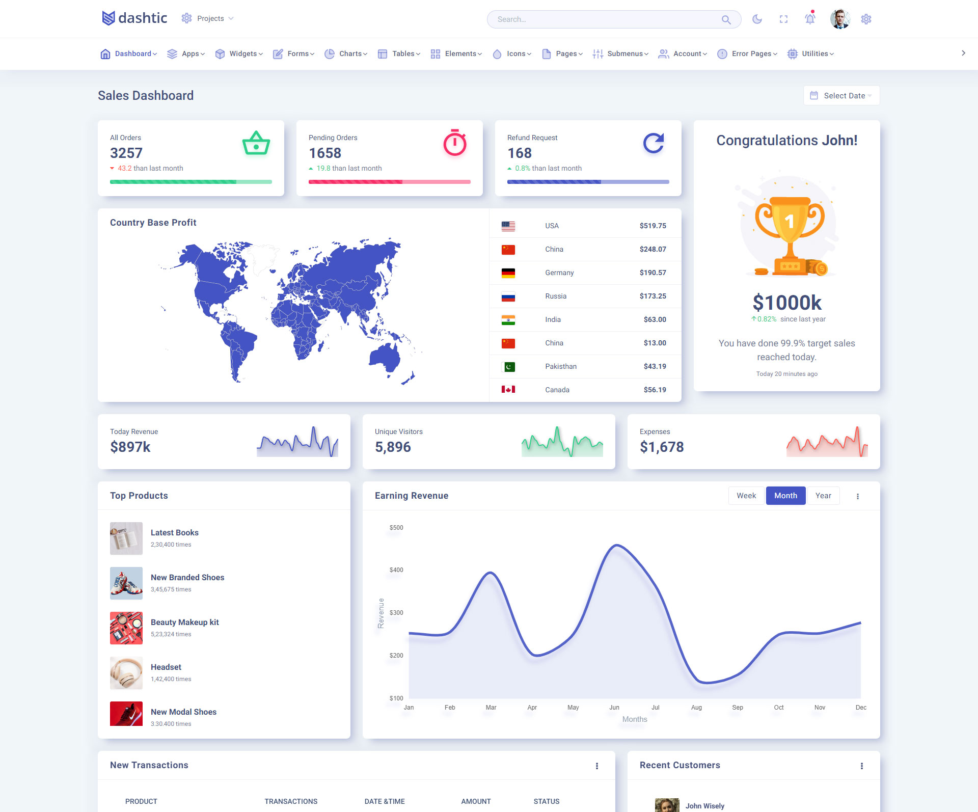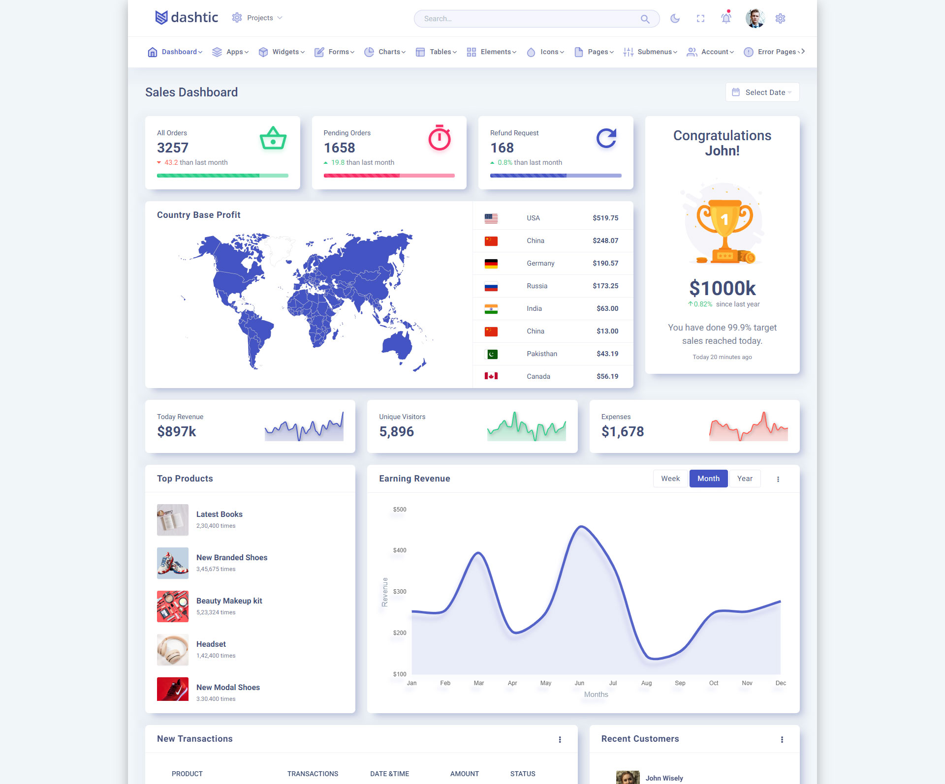 Explore the latest trending features incorporated into the Dashtic Django Admin template, showcasing how we have enhanced and designed our template. When it comes to design, we always keep a close watch on the most trending features.