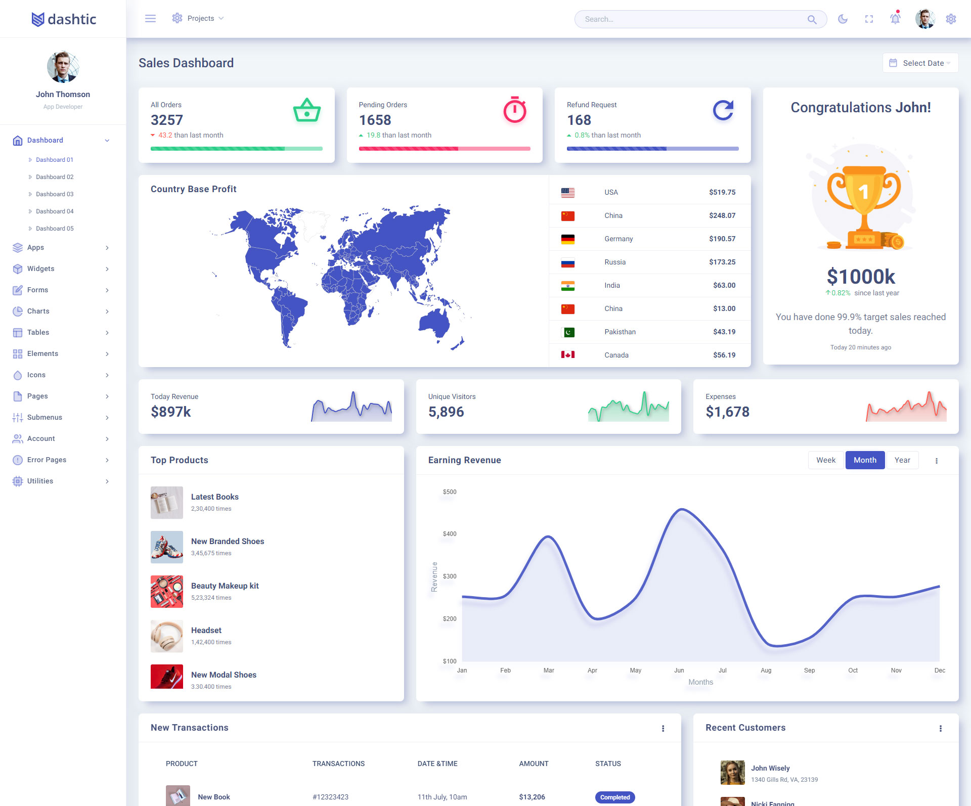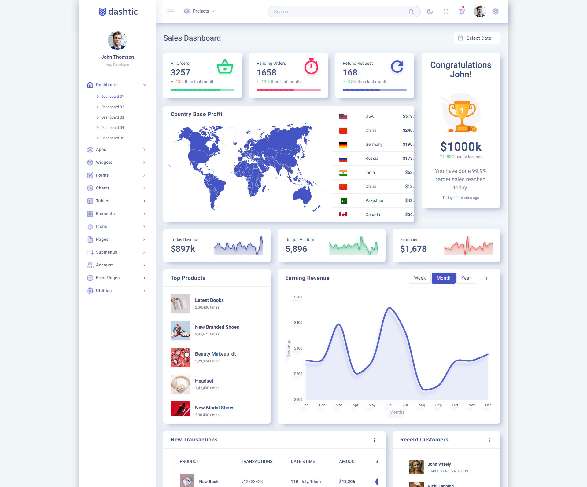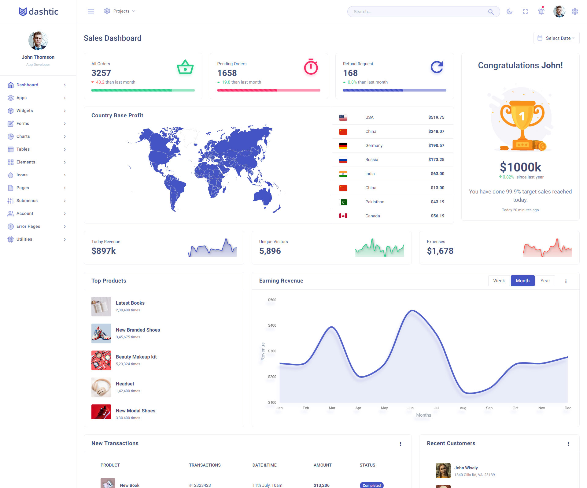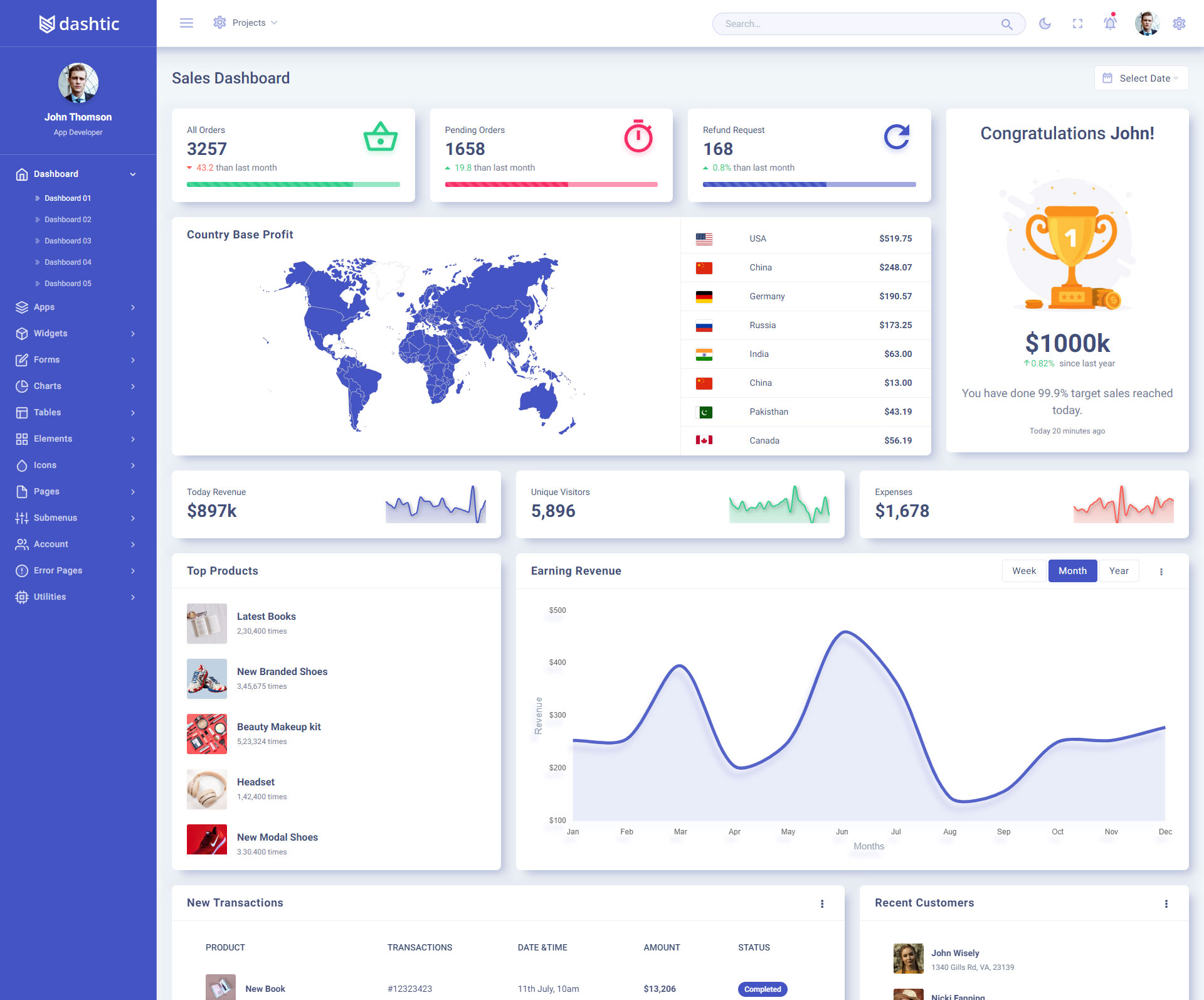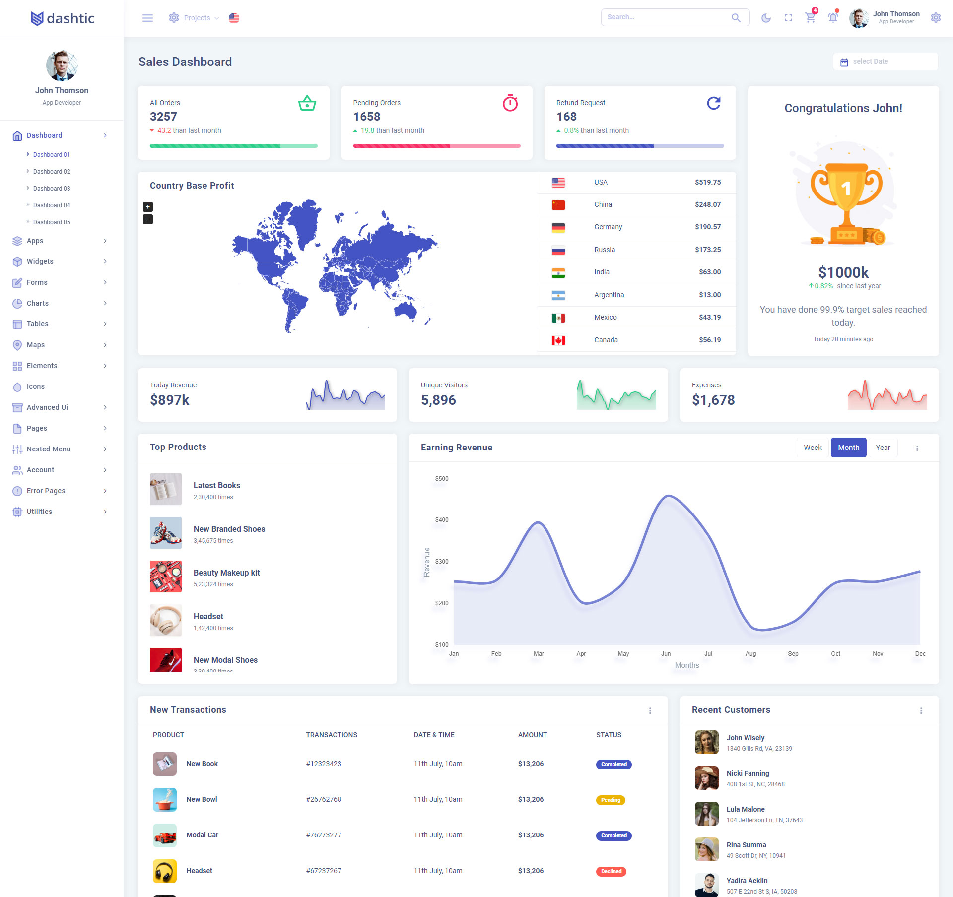 Explore the latest trending features incorporated into the Dashtic Django Admin template, showcasing how we have enhanced and designed our template. When it comes to design, we always keep a close watch on the most trending features.