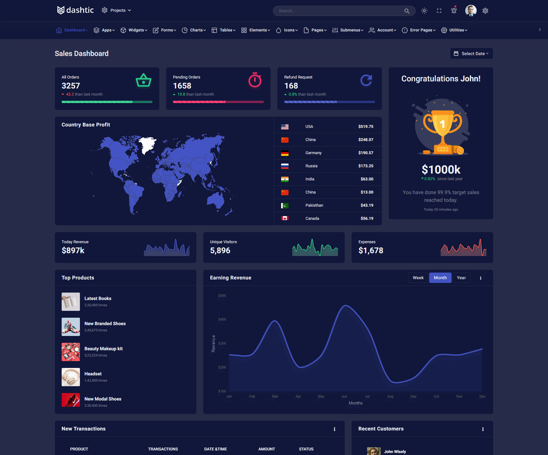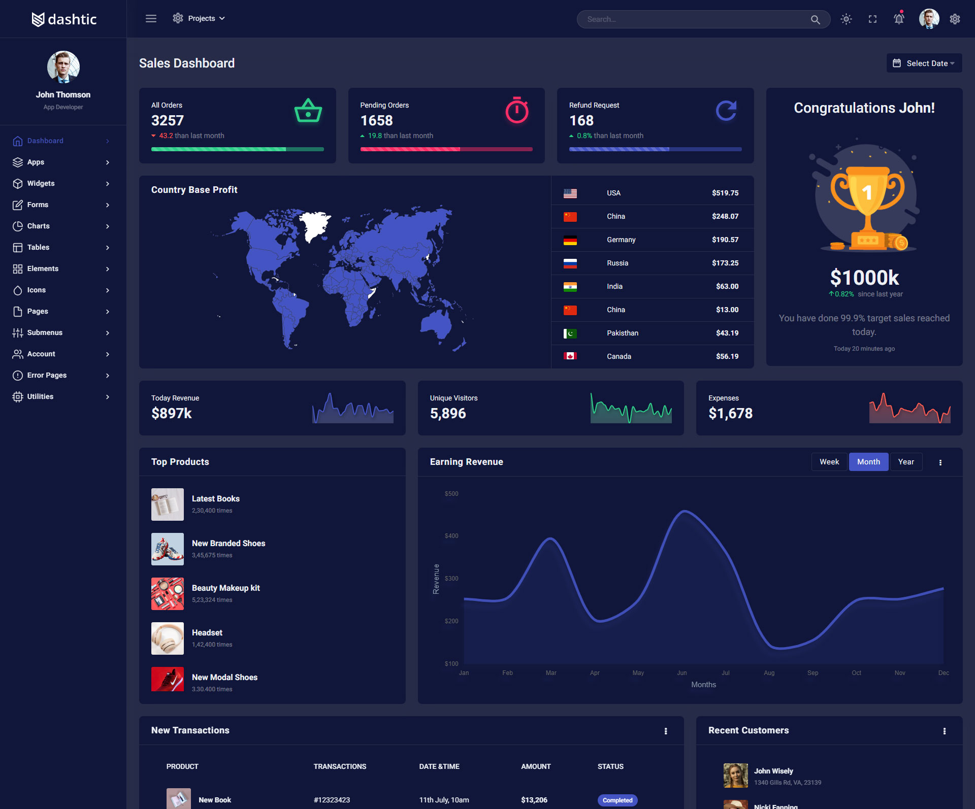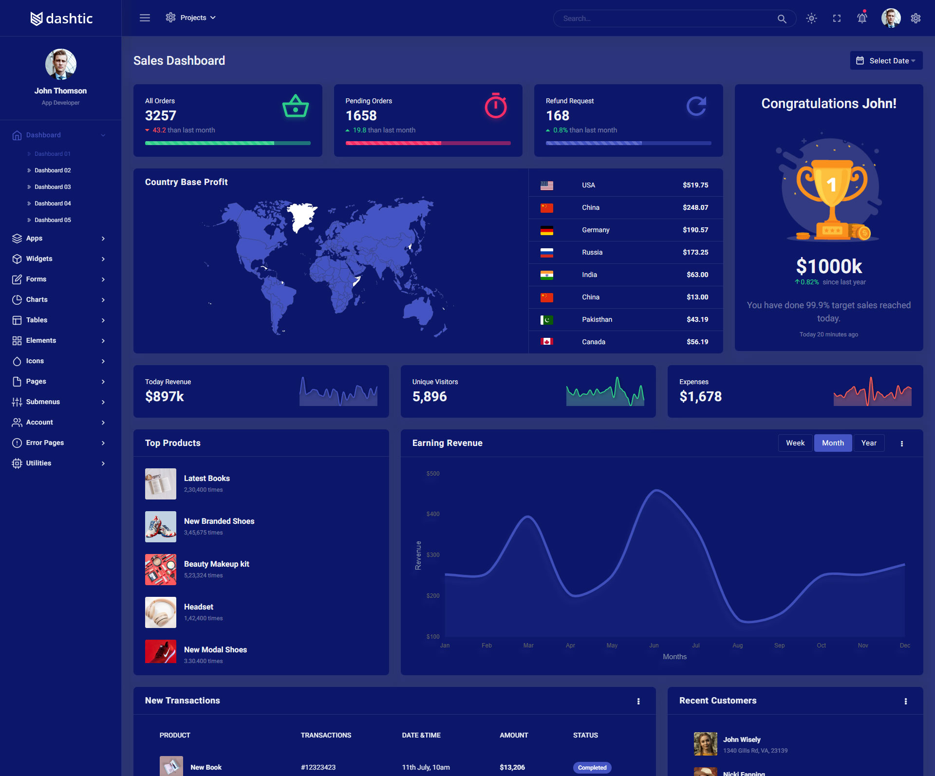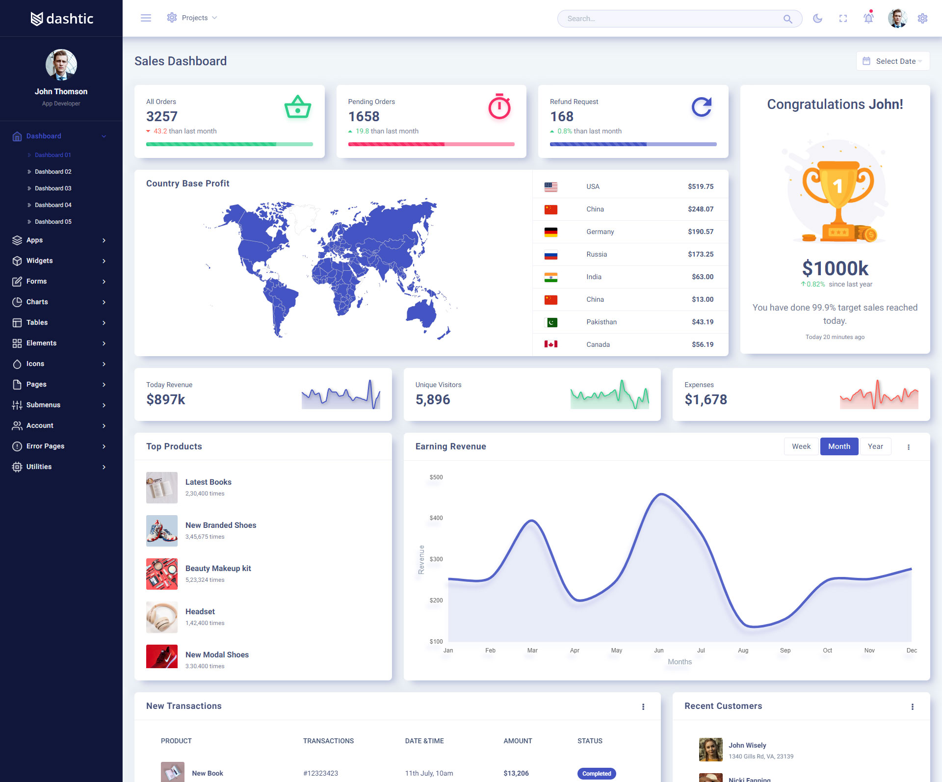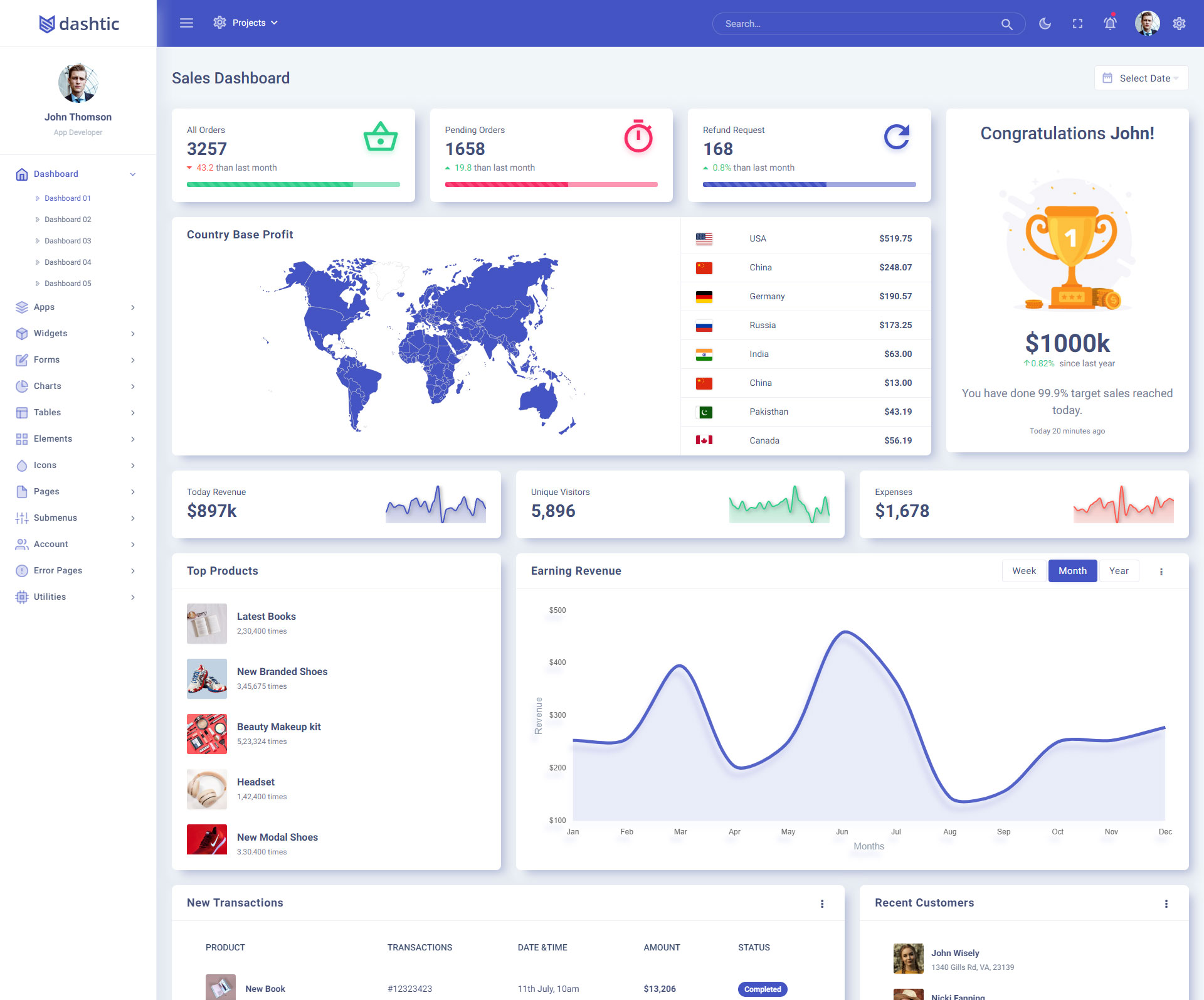Explore the latest trending features incorporated into the Dashtic Django Admin template, showcasing how we have enhanced and designed our template. When it comes to design, we always keep a close watch on the most trending features.