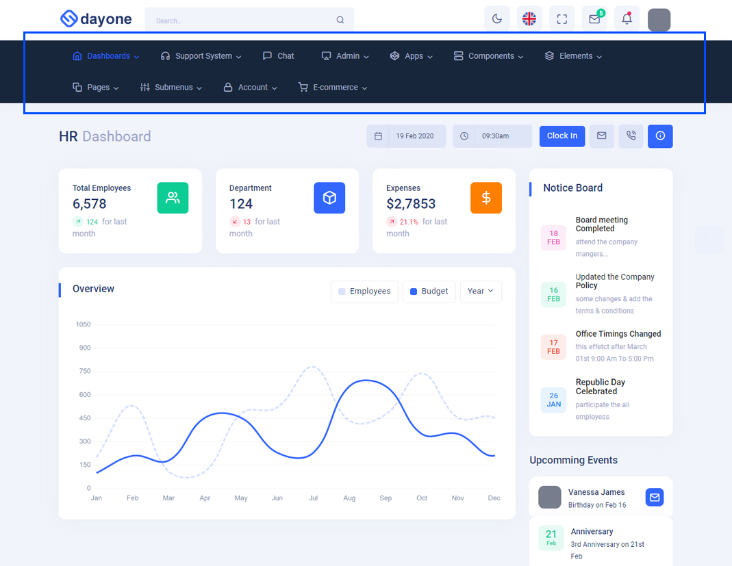 Dayone has very clean flat user interface admin Backend design, easy customizable components and widgets.The Template comes with an awesome unique design also we ensure you can easily design admin template.
