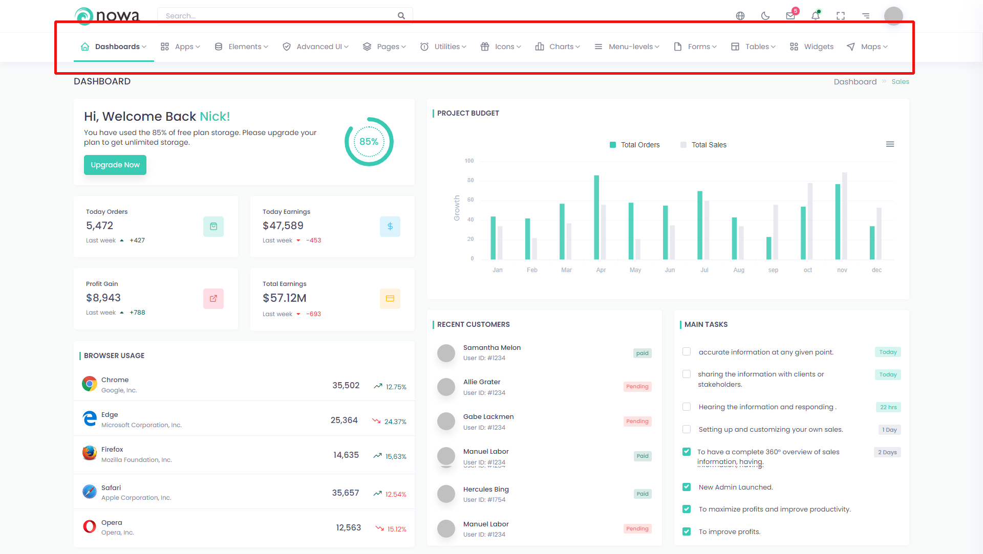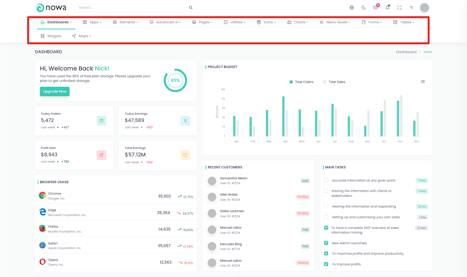 Nowa – Django Bootstrap 5 Admin & Dashboard Template, With this template format it is very easy to create a presence and grab someone's attention around the web Because this template is built using HTML5, CSS3, Bootstrap 5 framework and with Sass. So please make sure that before you start working with Nowa template go through the documentation for easy understanding.