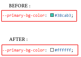 Simply you can also change color for primary-bg-hover:#5cd3b9; & --primary-bg-border:#38cab3; , where you can simply change color code to change them