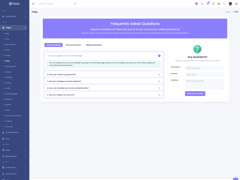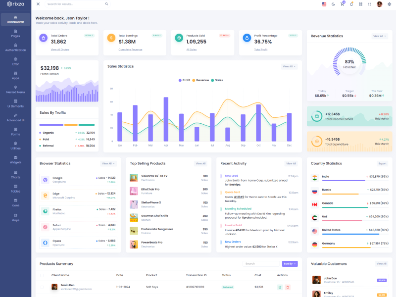 Explore the latest trending features incorporated into the Rixzo Django Admin template, showcasing how we have enhanced and designed our template. When it comes to design, we always keep a close watch on the most trending features.