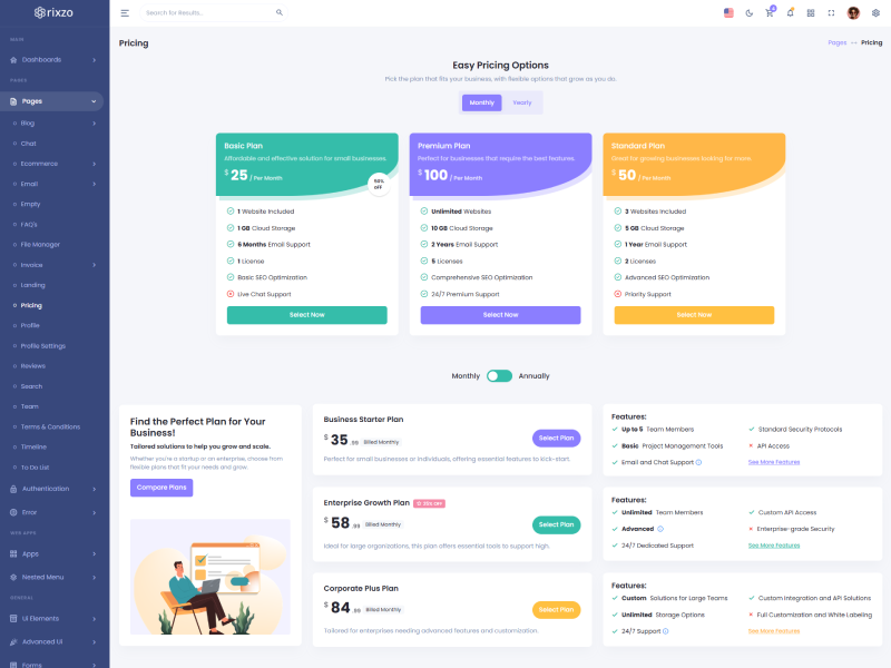 Take a look at the numerous versions we've integrated into the Rixzo Django Bootstrap 5 Premium Admin and Dashboard Template, where you can customize it in countless ways.