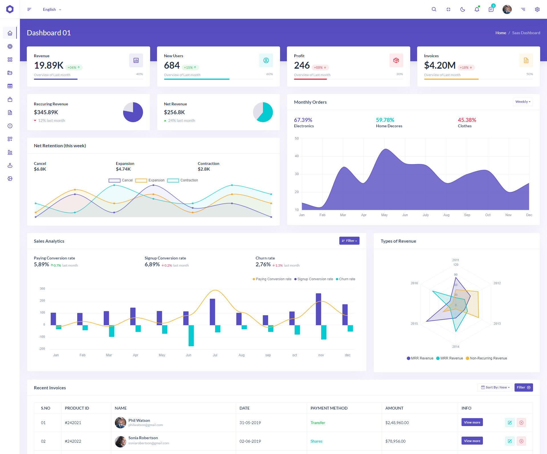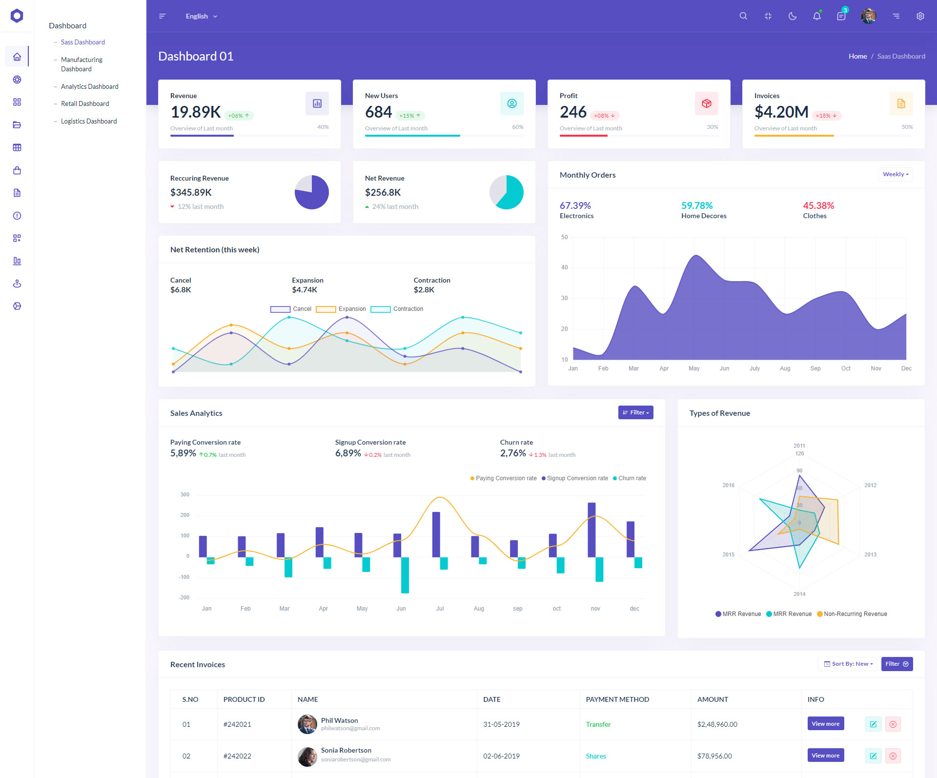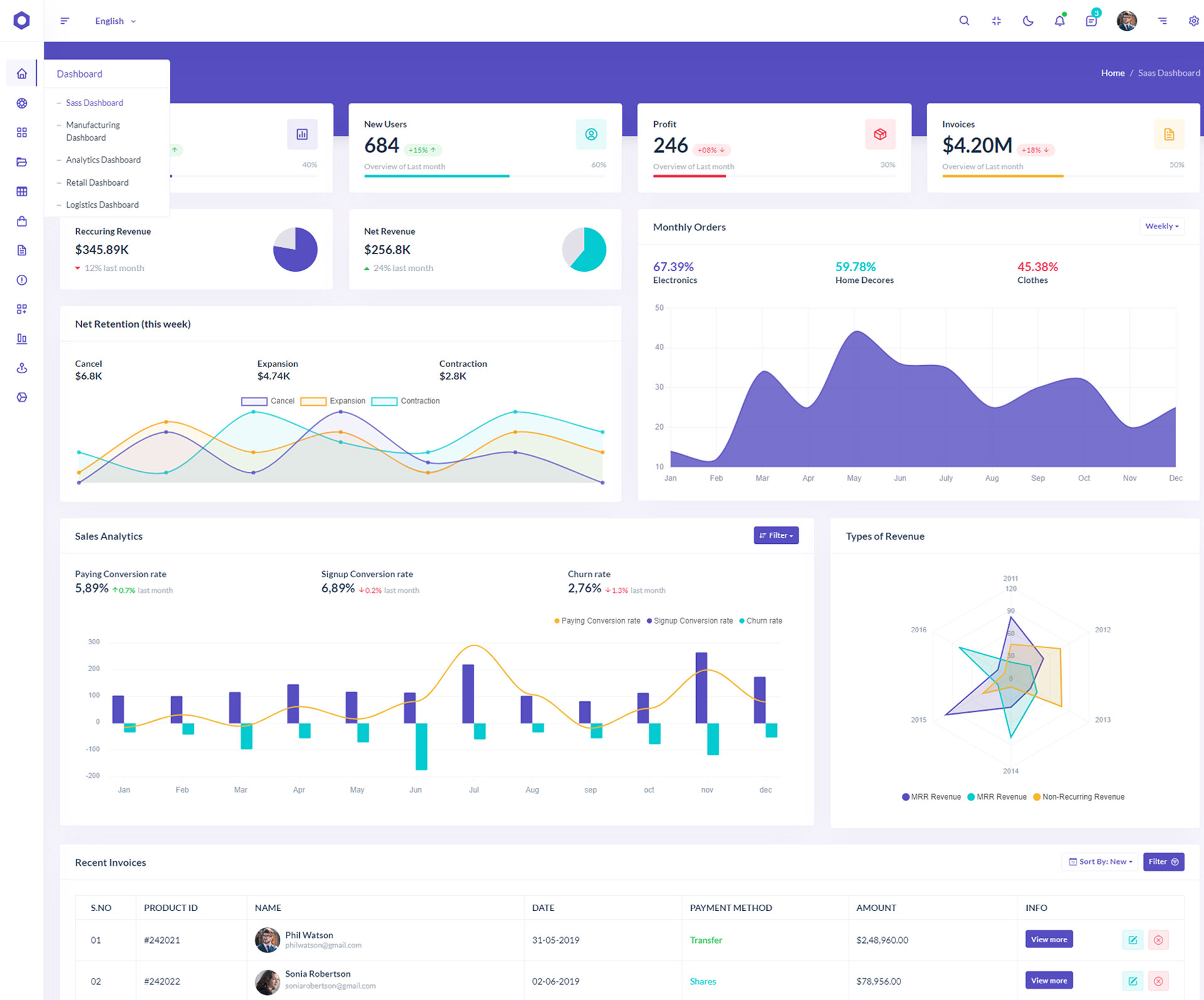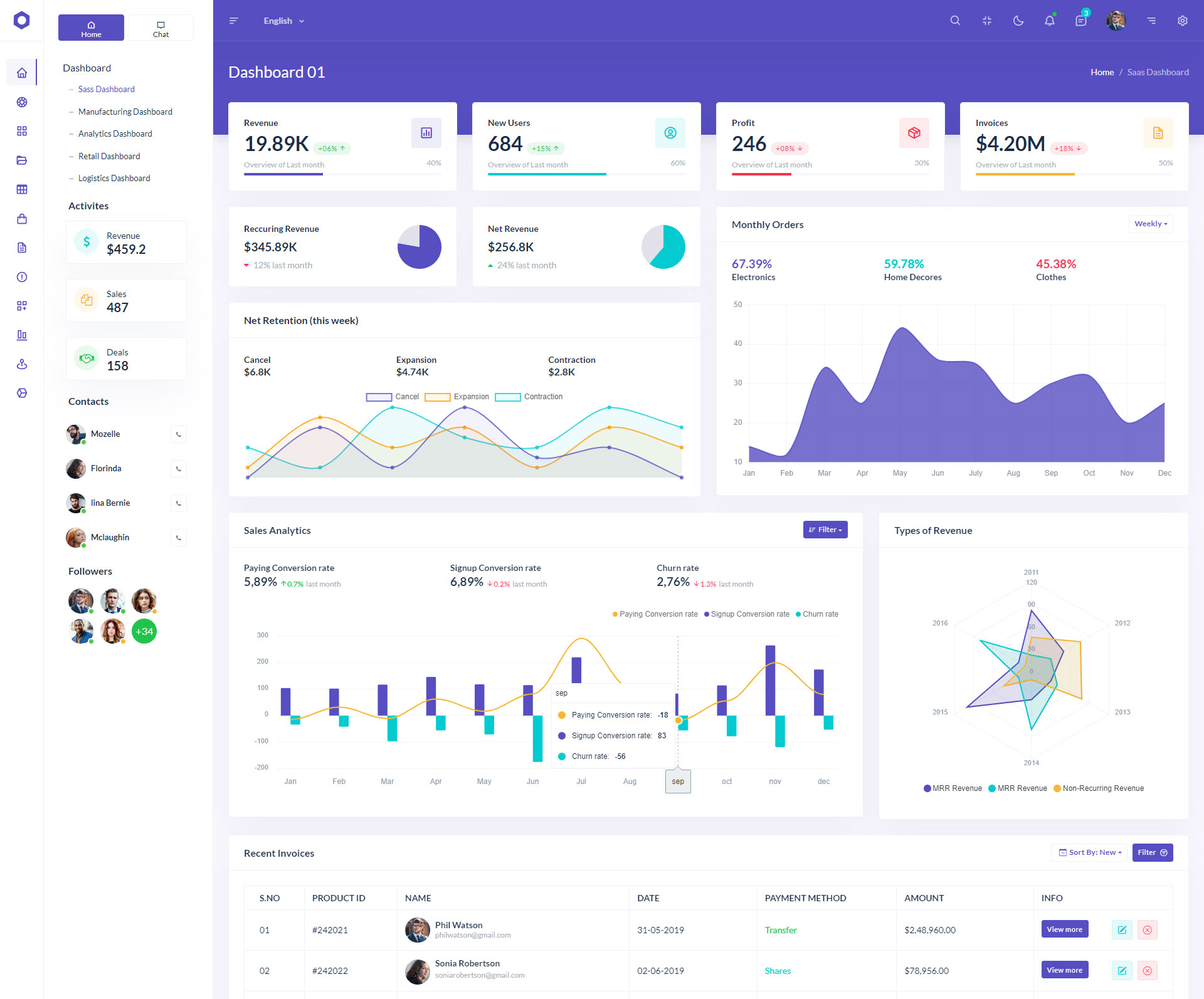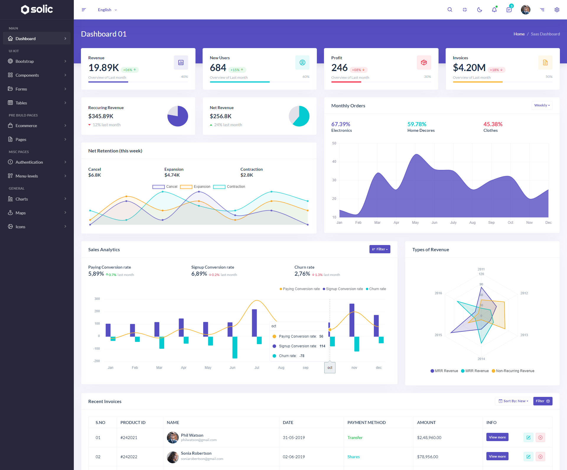 Solic Django admin template comes with of ready to use feature. It has lots of premade functionality which completely ready for any projects.