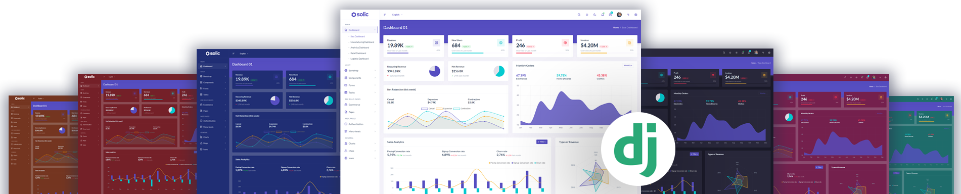 Have a look at the numerous versions we integrated in Solic Django Bootstrap5 premium admin and dashboard template,where you can customize theme in unlimited ways.