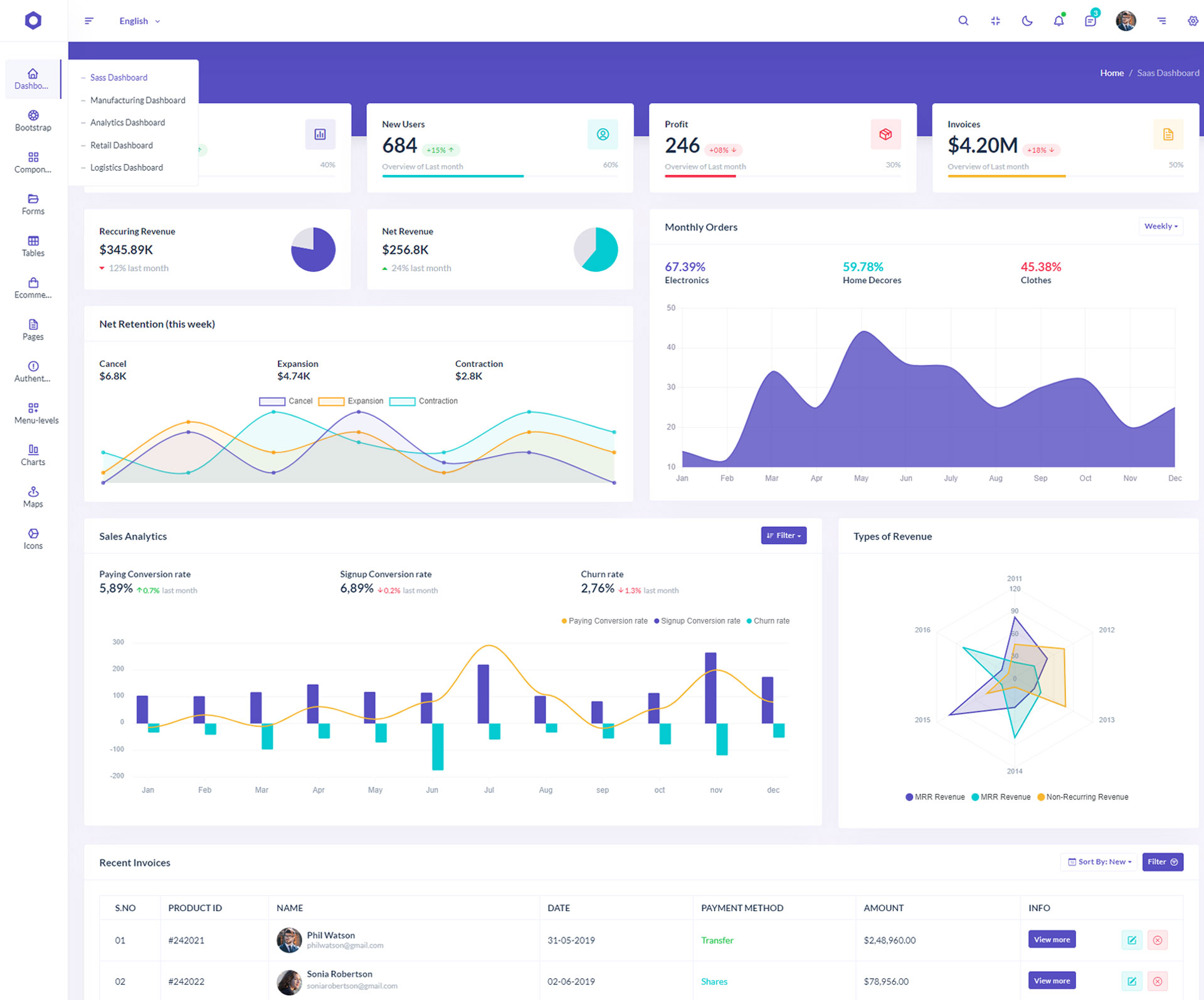Explore the latest trending features incorporated into the Solic Django Admin template, showcasing how we have enhanced and designed our template. When it comes to design, we always keep a close watch on the most trending features.
