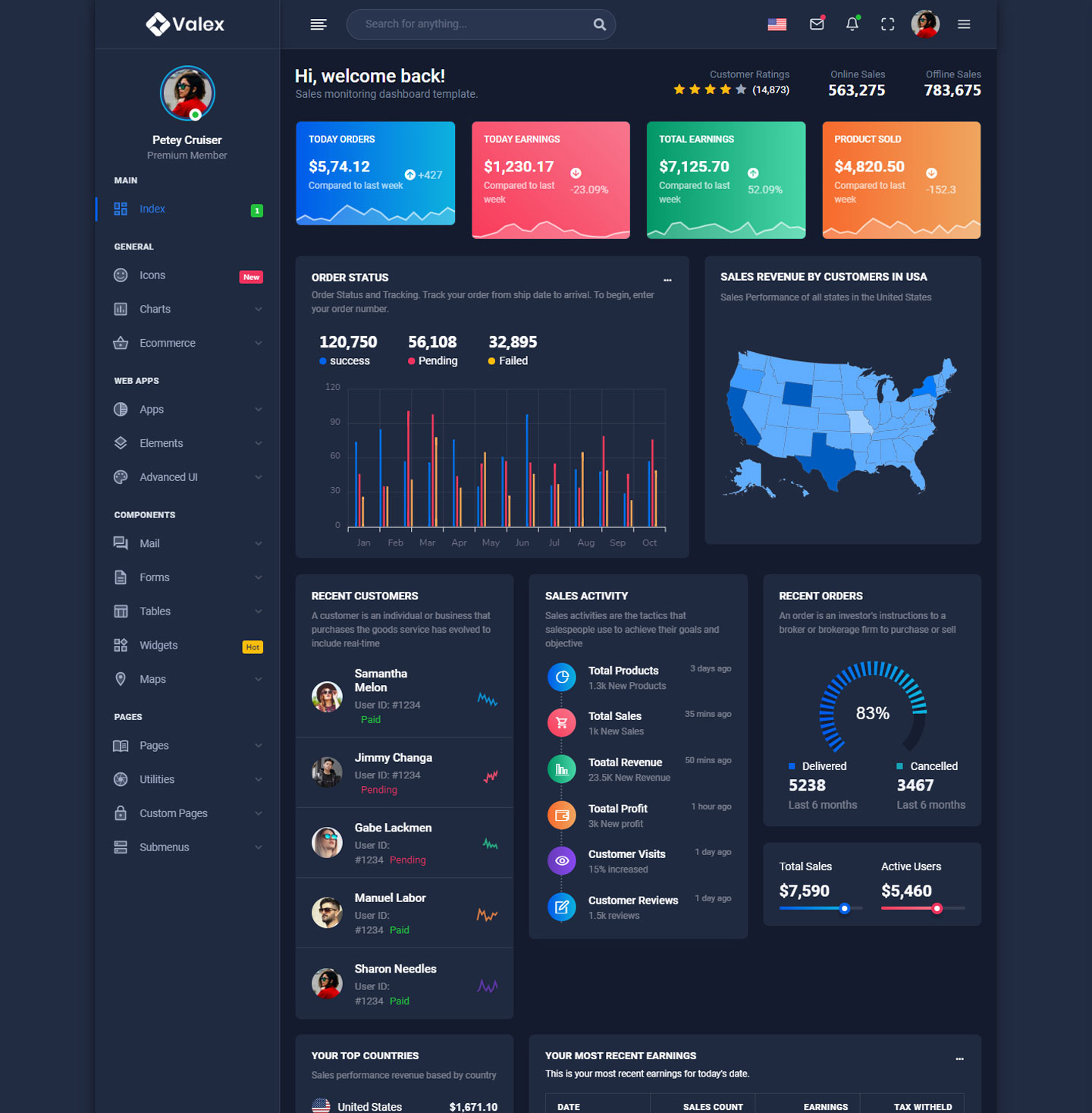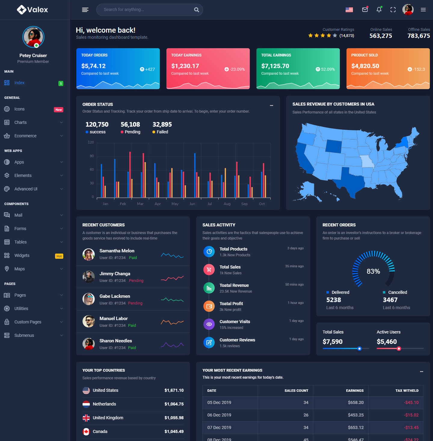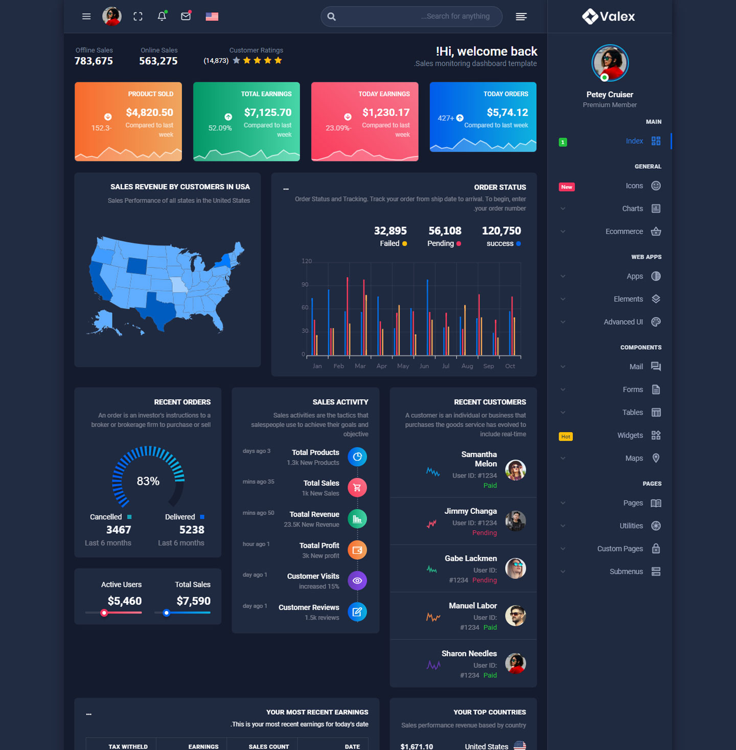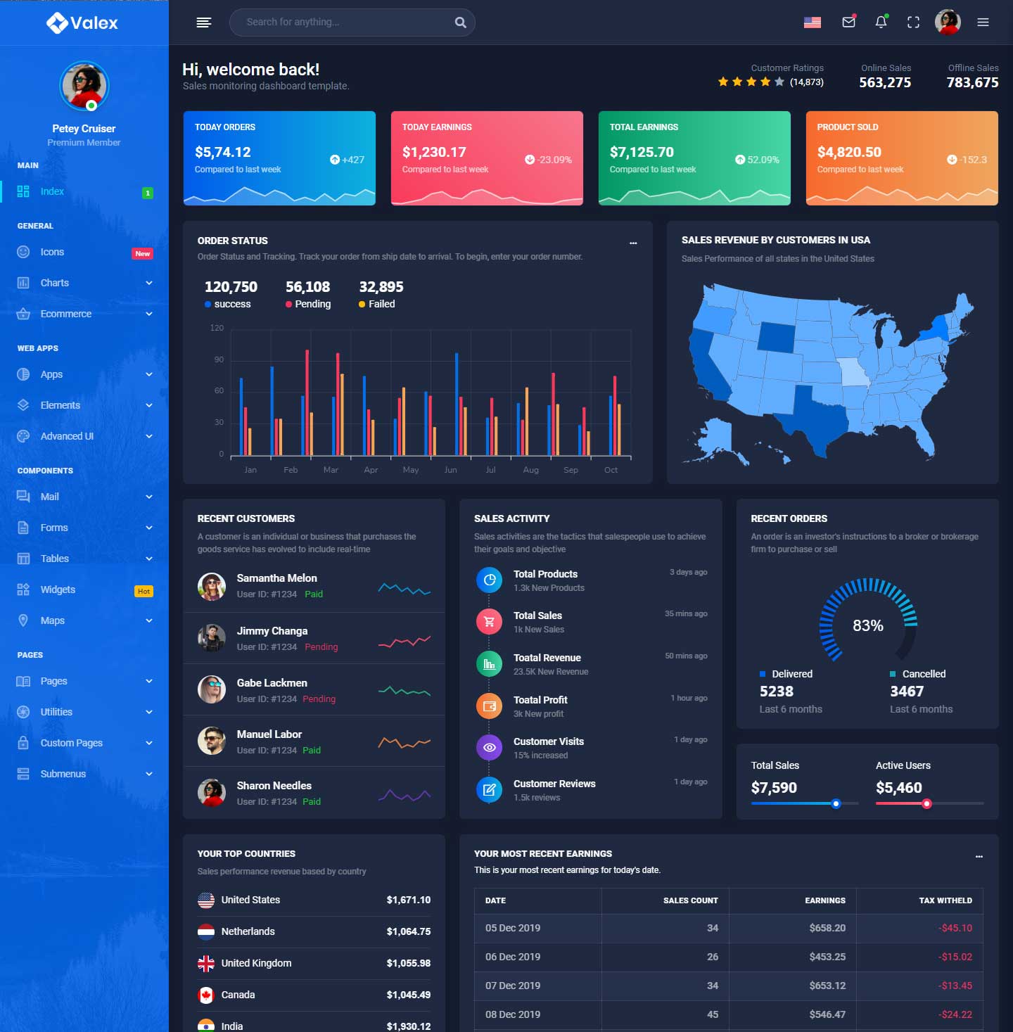 Here, Valex Django beautiful dashboard and comes with different types of themes. So that users can choose their best theme and customize the Valex - Django Premium Bootstrap Admin Template according to their choice.