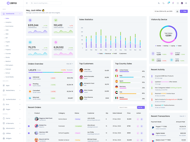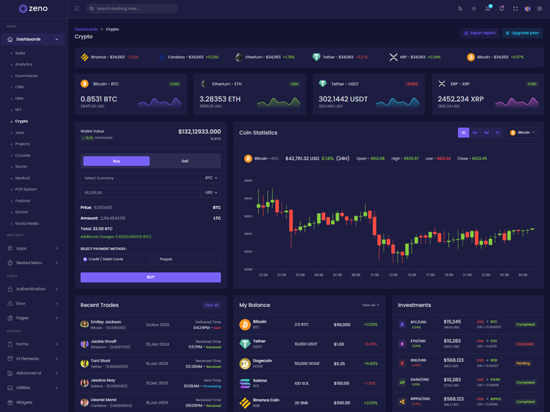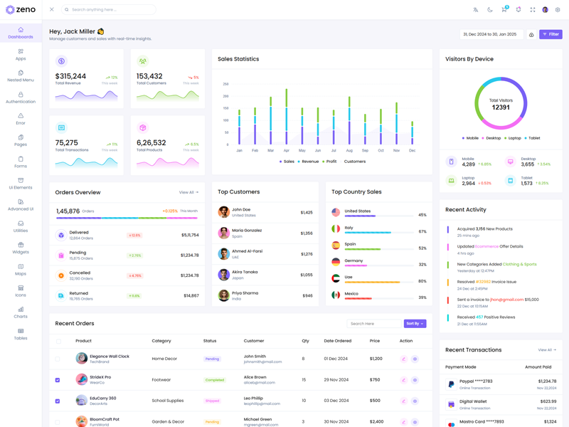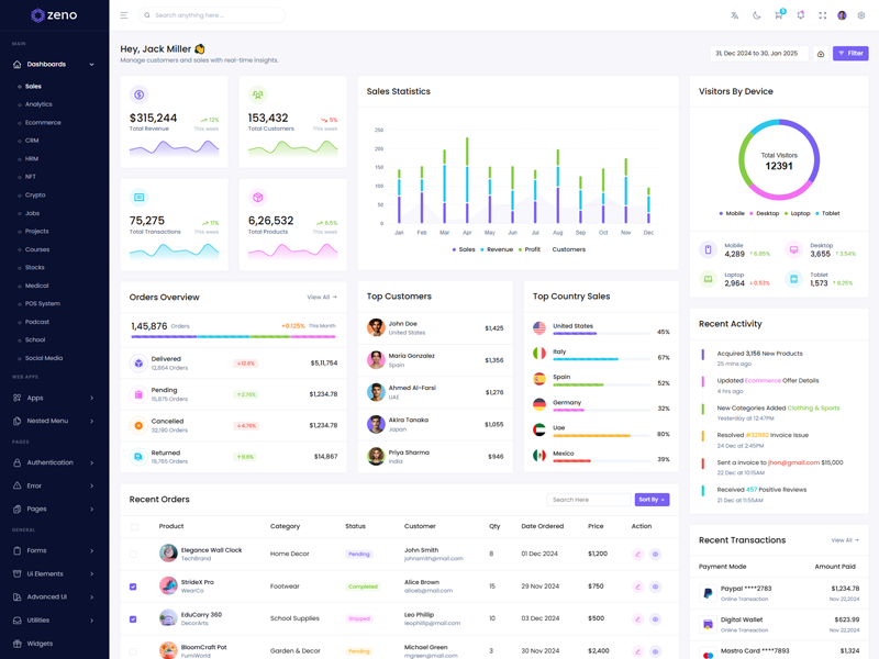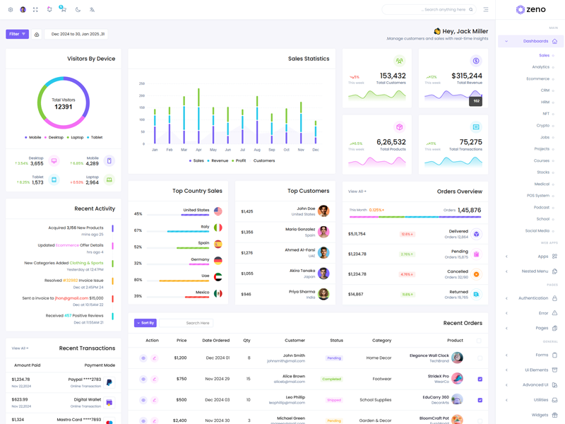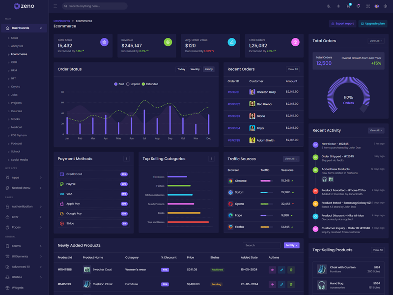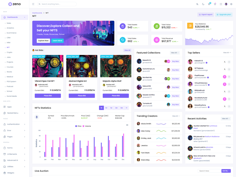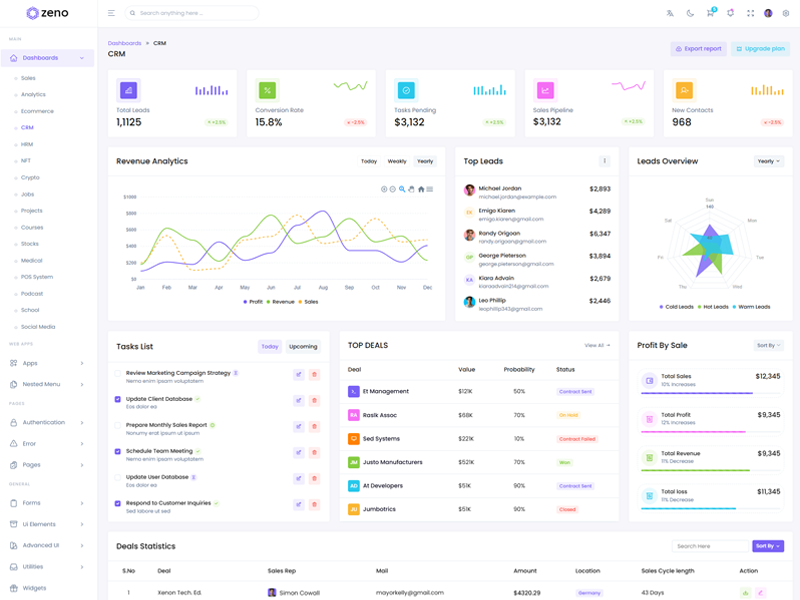 Zeno: Create stunning dashboards effortlessly with this admin template. Avoid the hassle of extensive coding in HTML, SCSS, CSS, and JS. Customize your dashboard quickly and easily with Zeno. Impress your target users with professional and well-structured designs in no time.