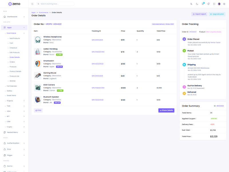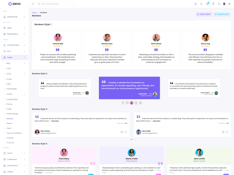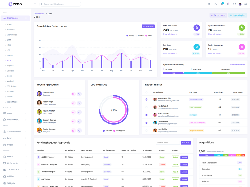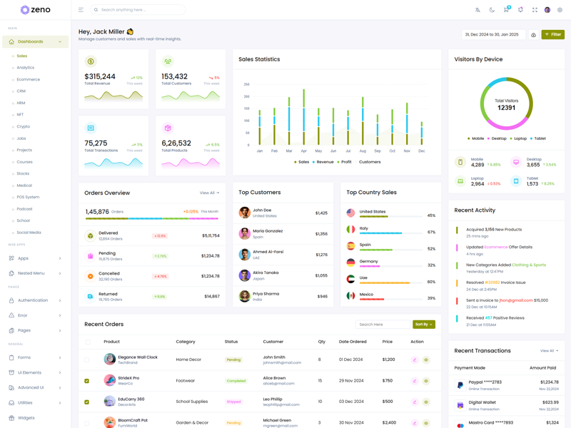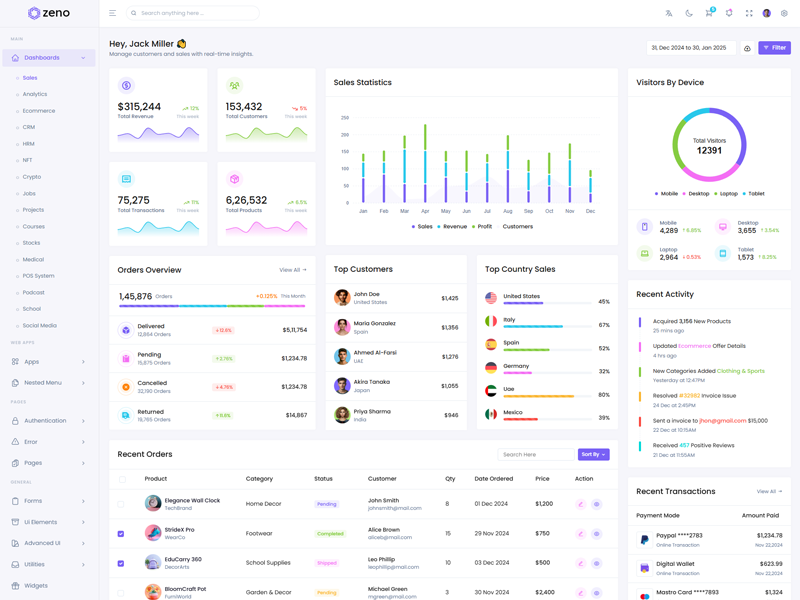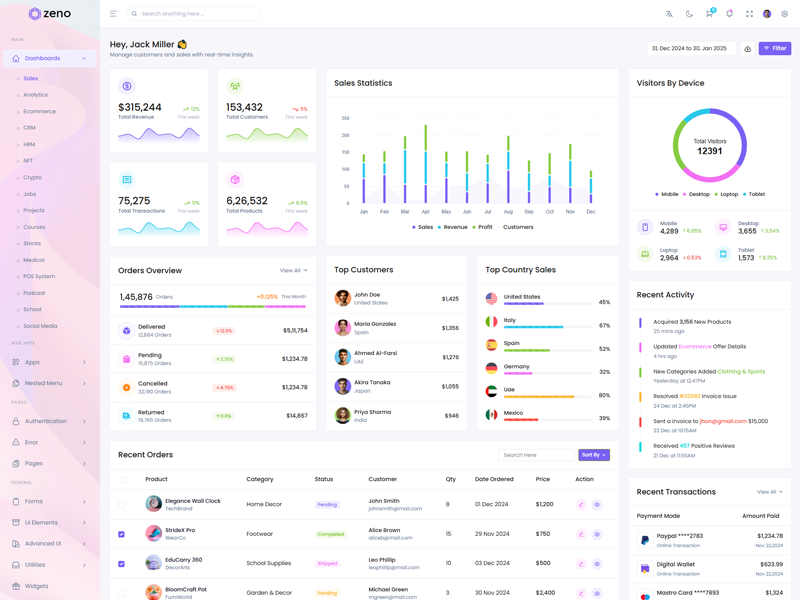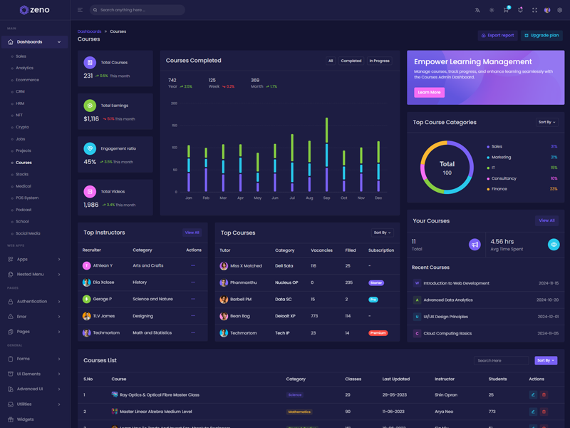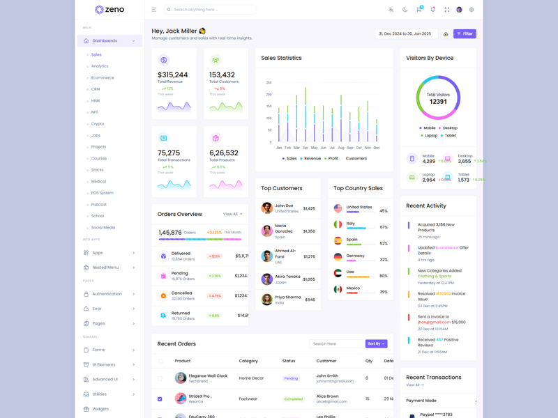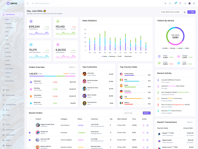 Zeno: Create stunning dashboards effortlessly with this admin template. Avoid the hassle of extensive coding in HTML, SCSS, CSS, and JS. Customize your dashboard quickly and easily with Zeno. Impress your target users with professional and well-structured designs in no time.