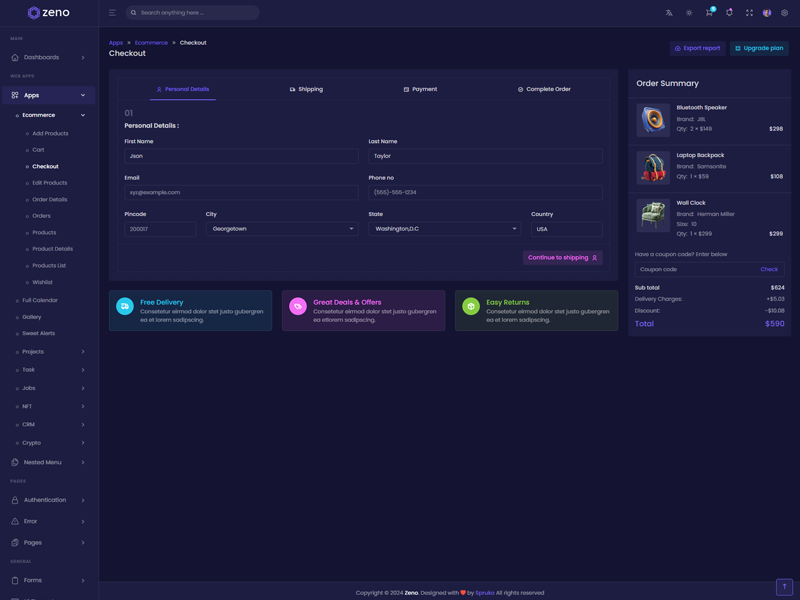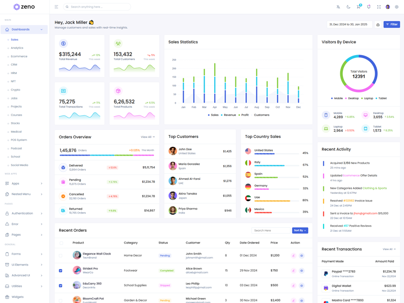 Zeno - Django Premium Bootstrap 5 Admin & Dashboard Template boasts essential features such as design quality, compatibility with your front-end framework, responsiveness, ease of customization, comprehensive documentation, and dedicated support. Additionally, it includes integrated plugins and other supplementary features.