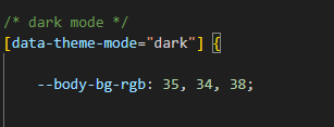Also Change the following variable colors to the desired theme background accordingly in [data-theme-mode="dark"]