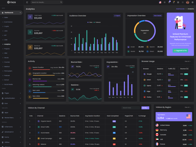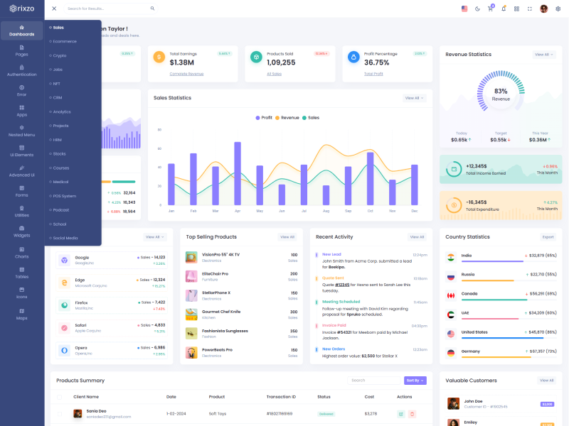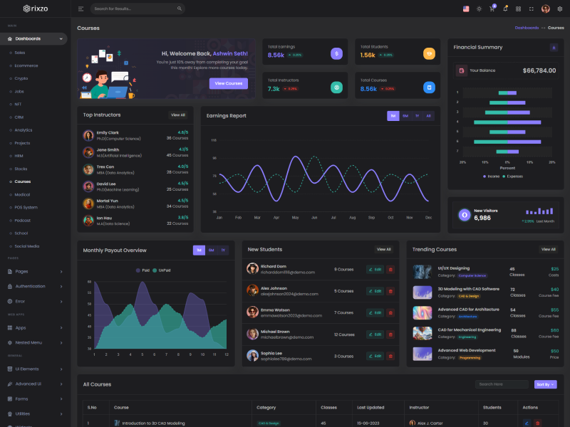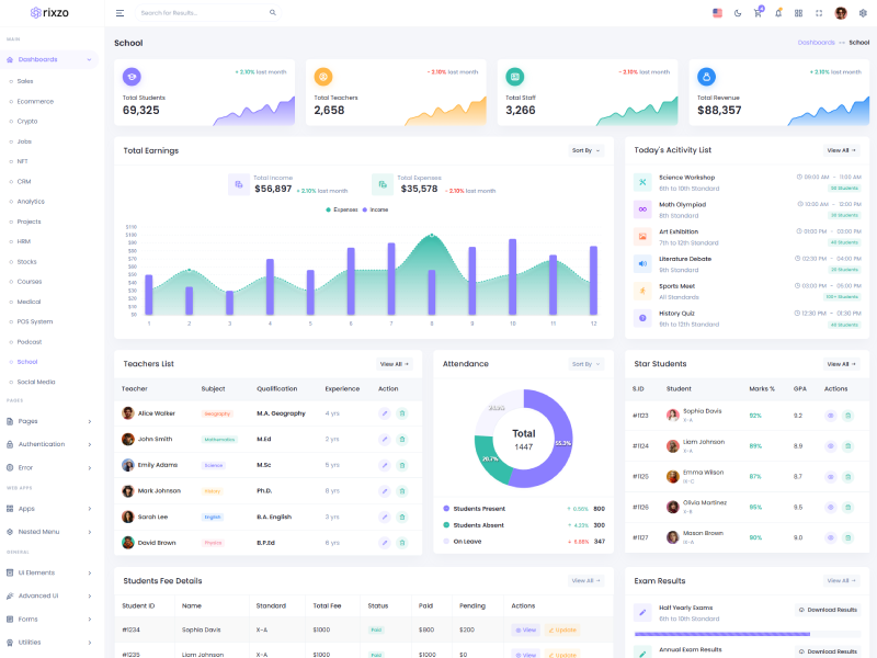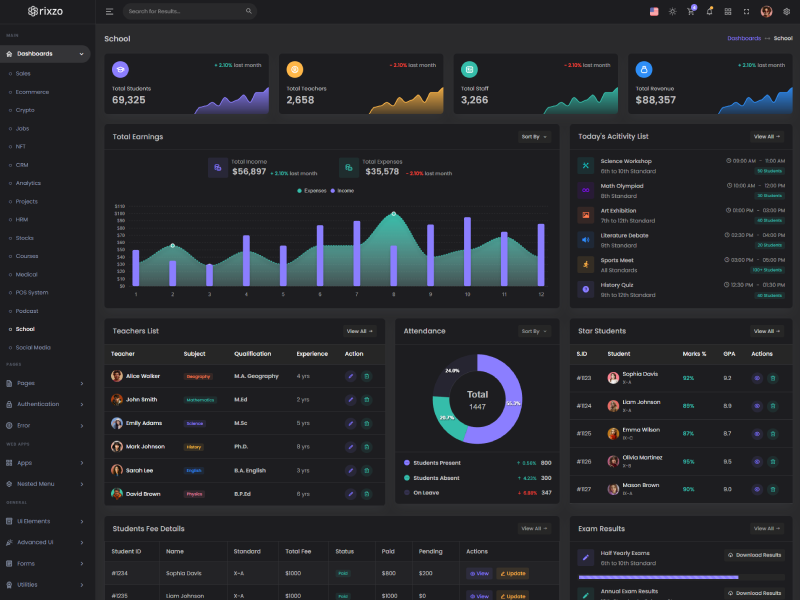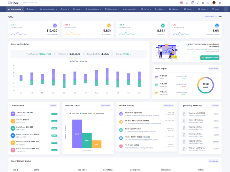 Explore the latest trending features incorporated into the Rixzo Admin template, showcasing how we have enhanced and designed our template. When it comes to design, we always keep a close watch on the most trending features.
