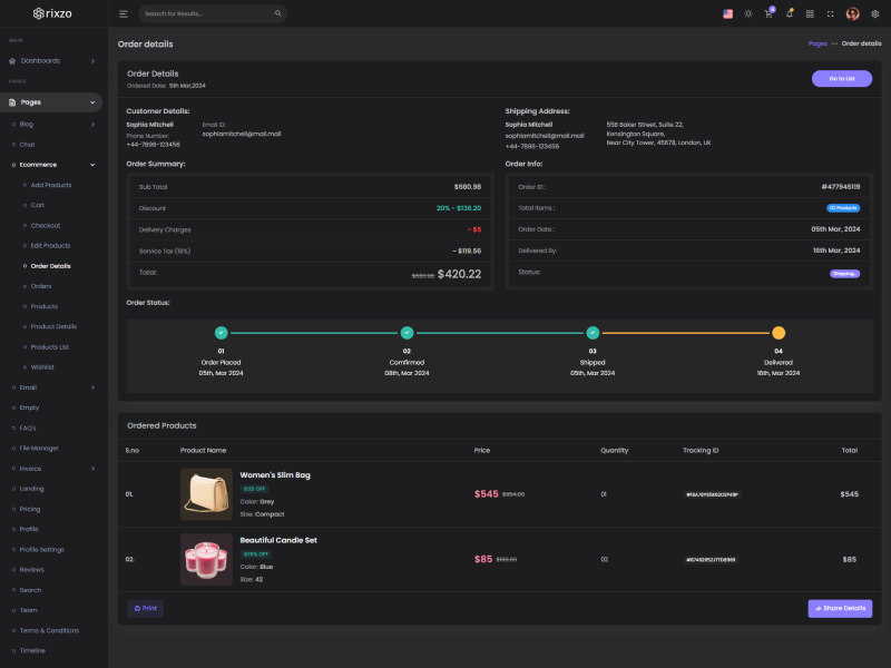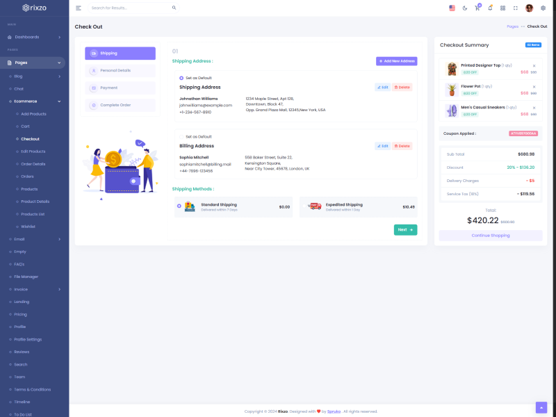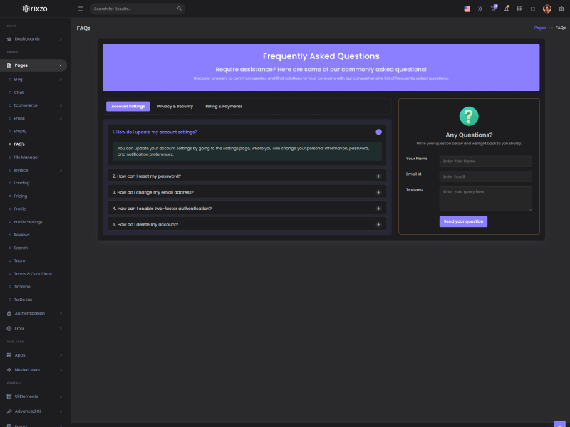 Rixzo admin template comes with ready to use features. It has lots of ready-made features saves more time for developers.