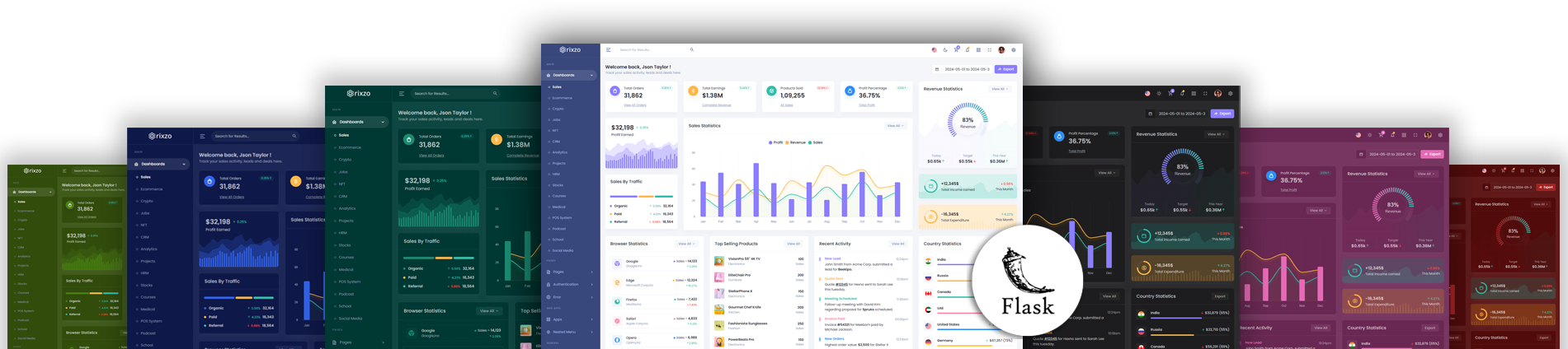 Rixzo offers 16 attractive dashboards with various themes for users to customize the Flask Premium Bootstrap Admin Template based on their preference.