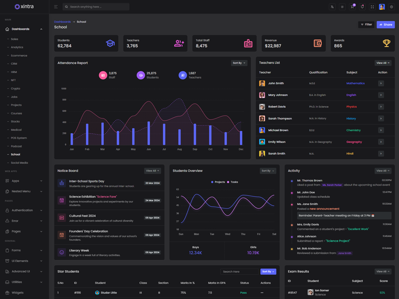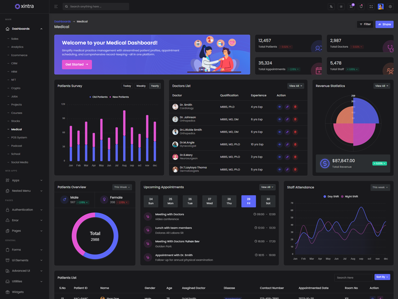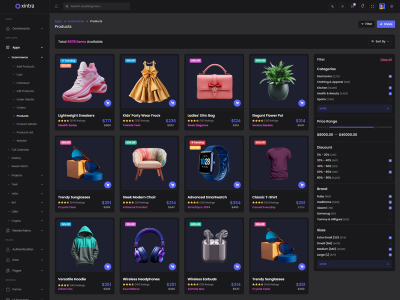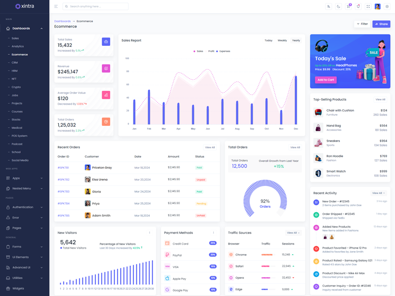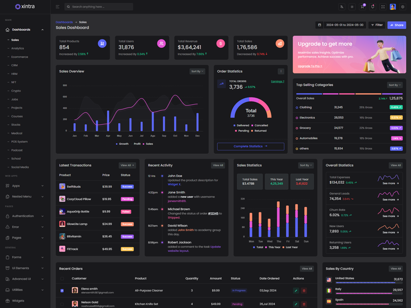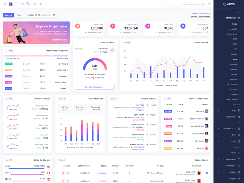 Xintra: Create stunning dashboards effortlessly with this admin template. Avoid the hassle of extensive coding in HTML, SCSS, CSS, and JS. Customize your dashboard quickly and easily with Xintra. Impress your target users with professional and well-structured designs in no time.