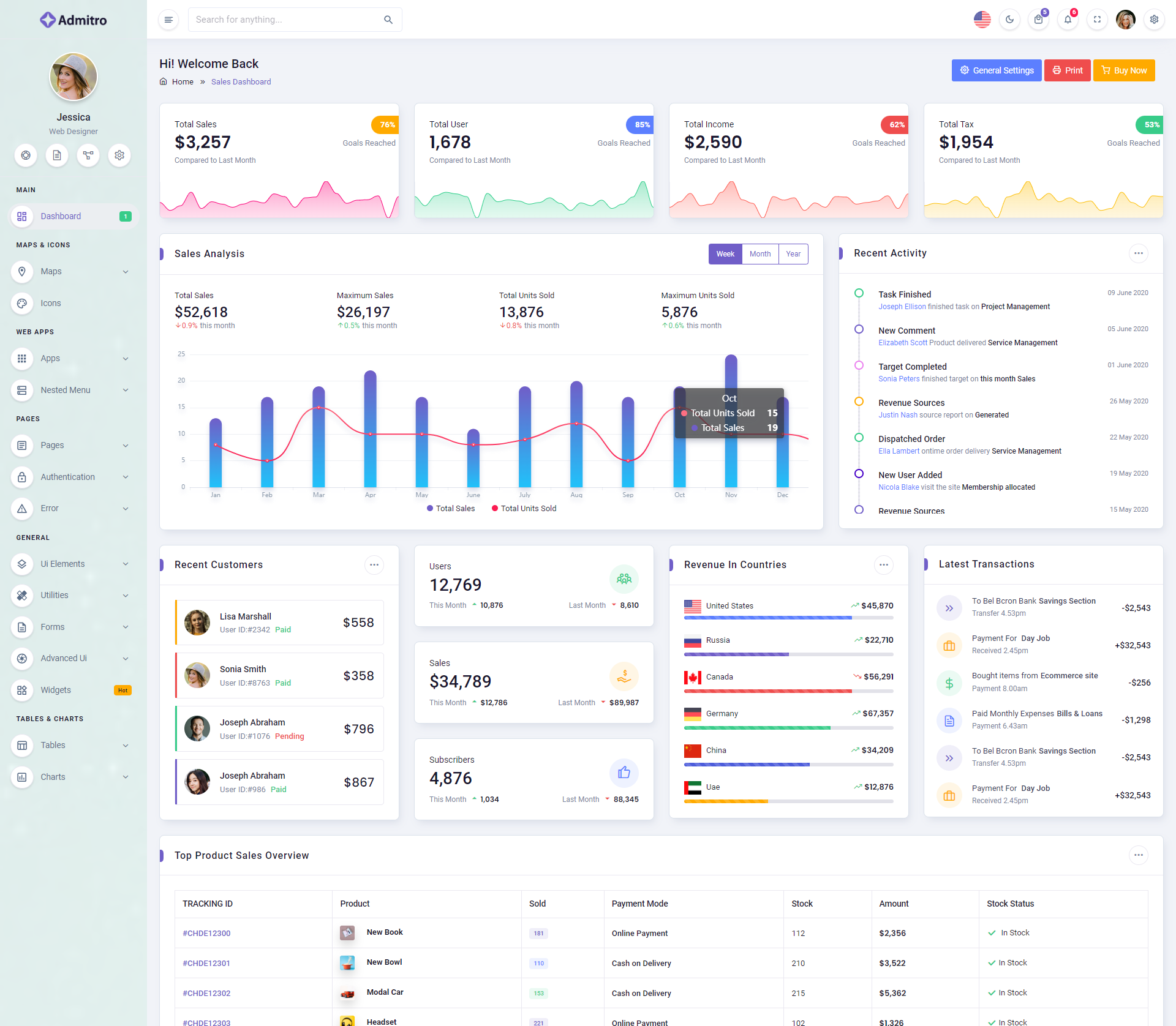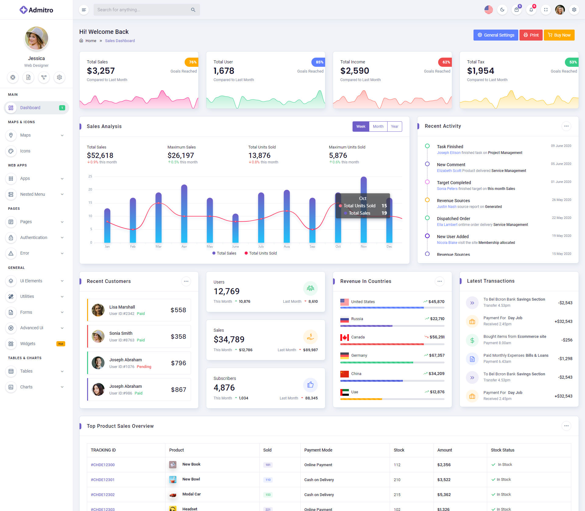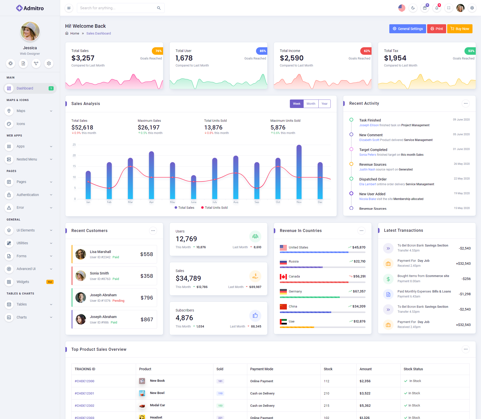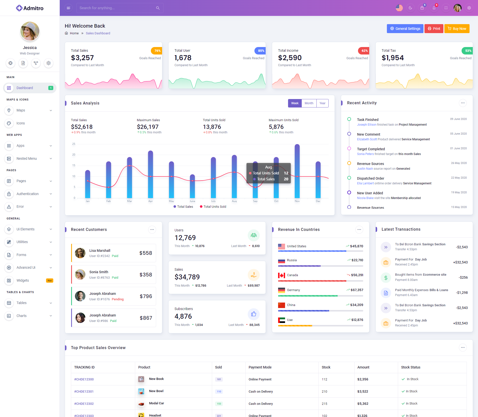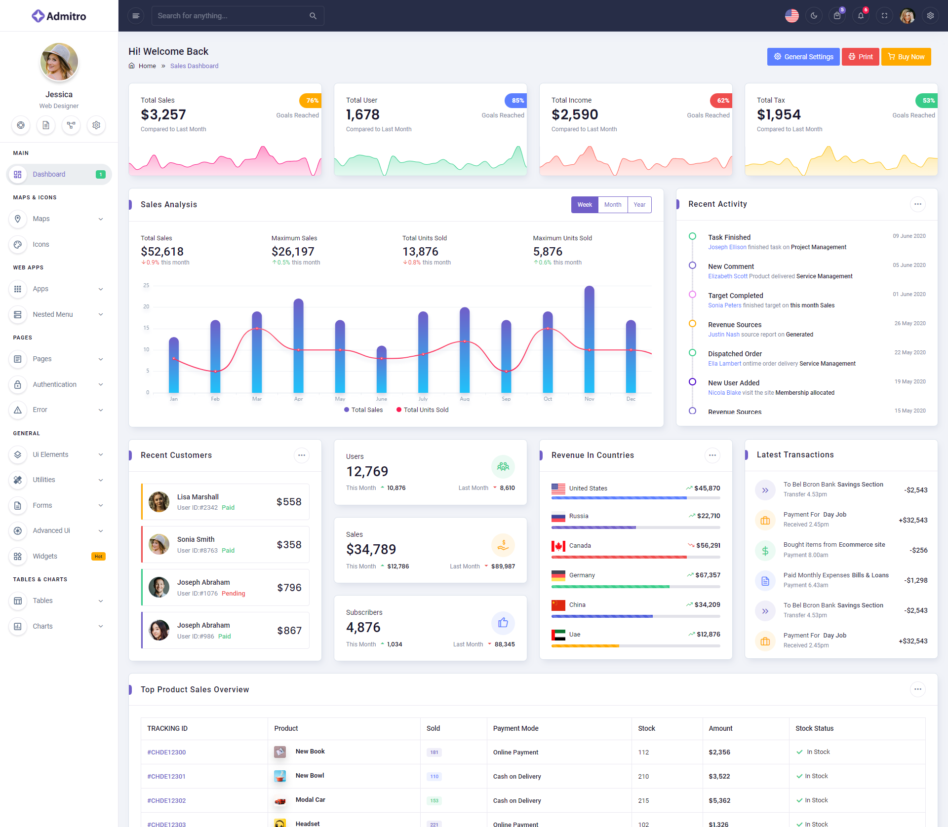 The Admitro Dashboard Template comes with a wealth of ready-to-use features, saving developers significant time with its array of pre-built functionalities.