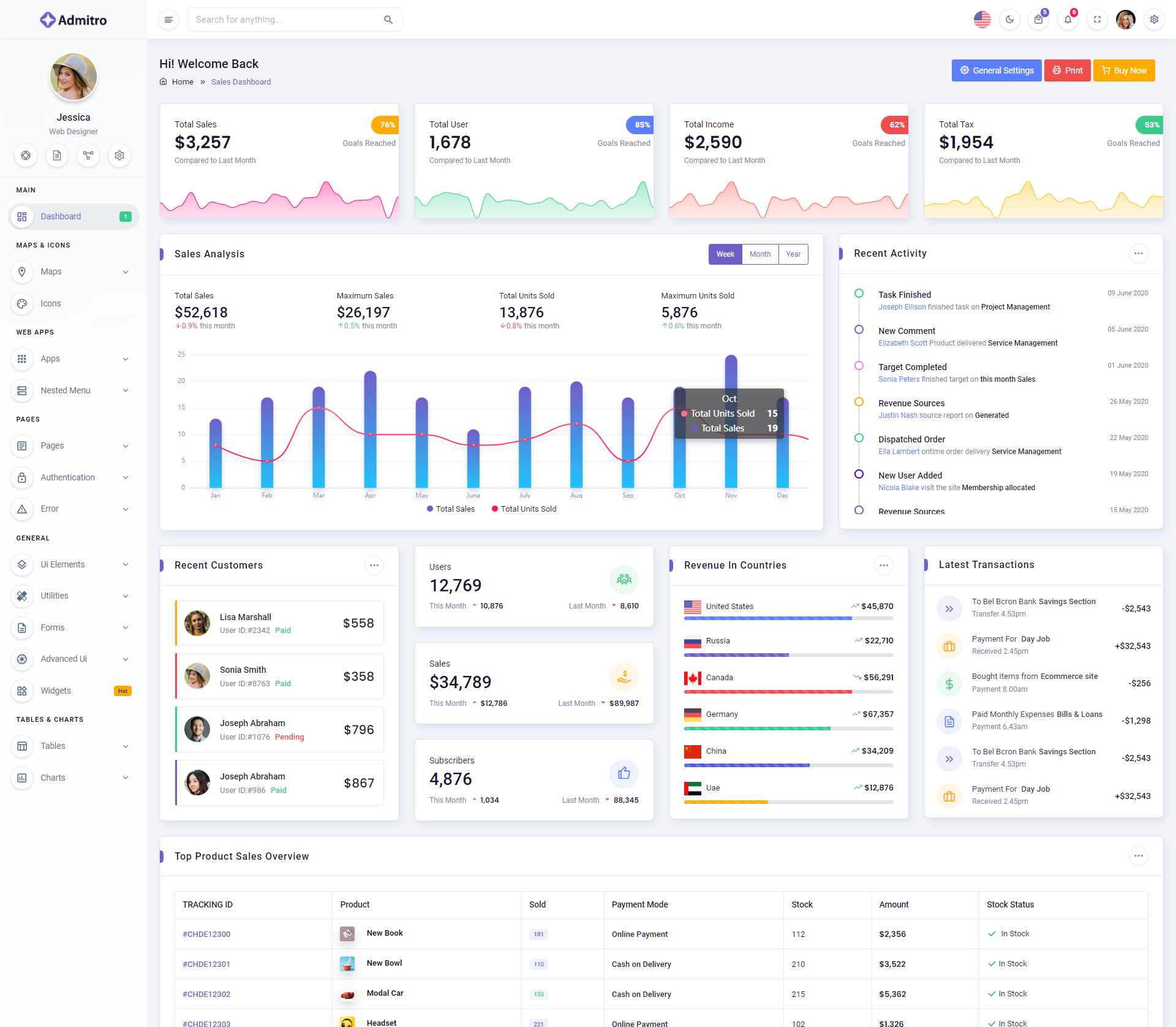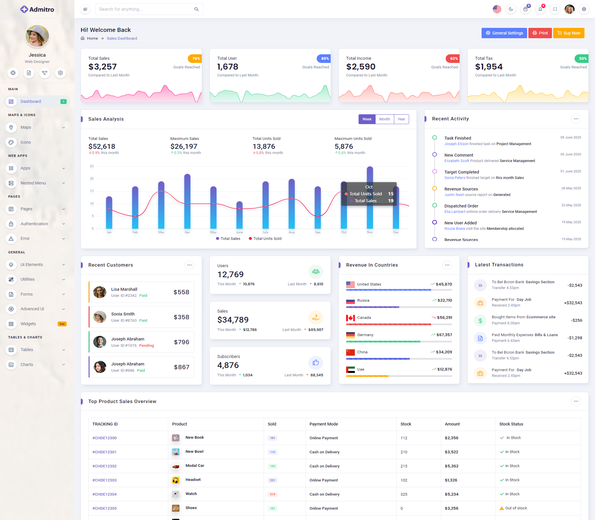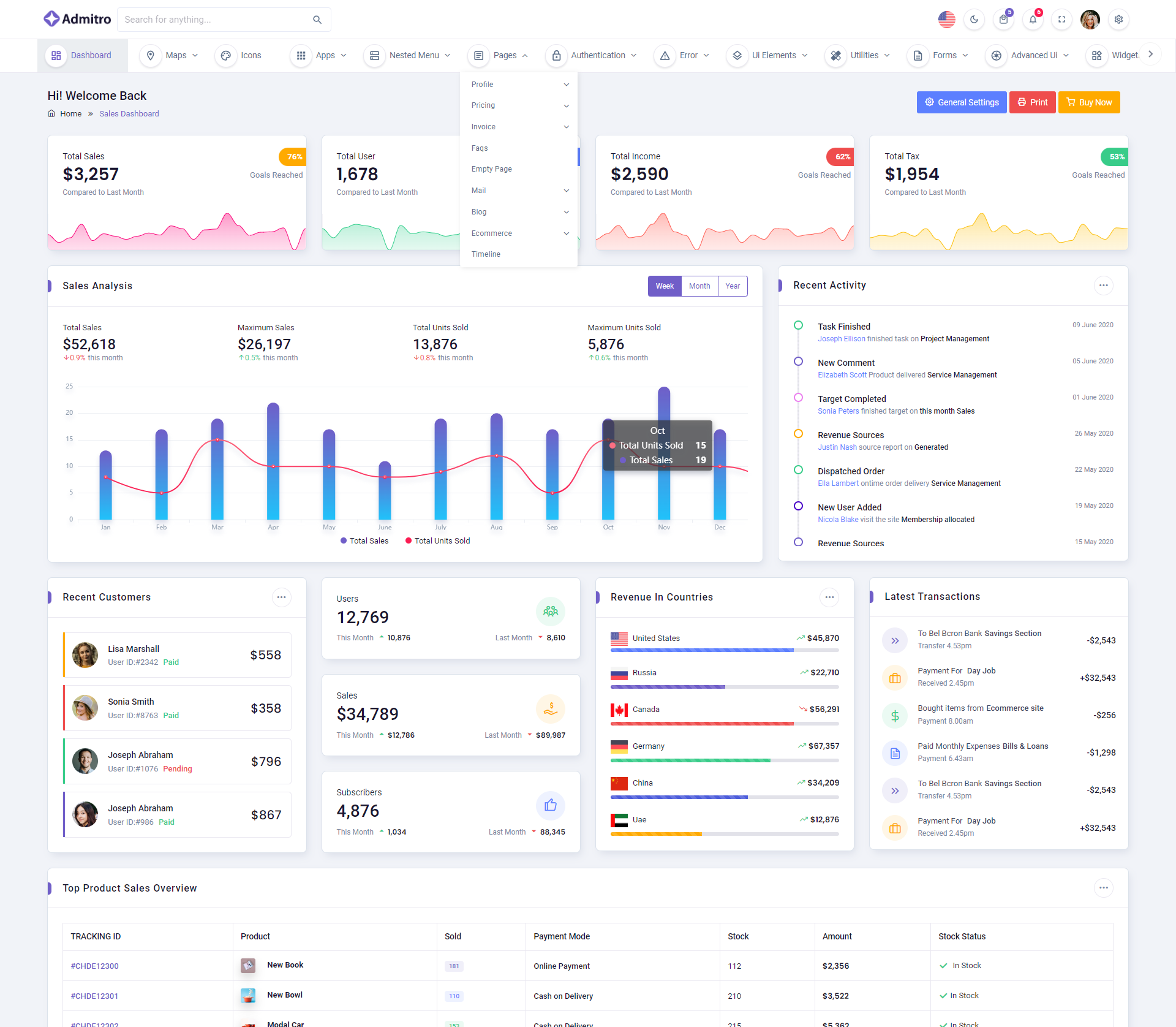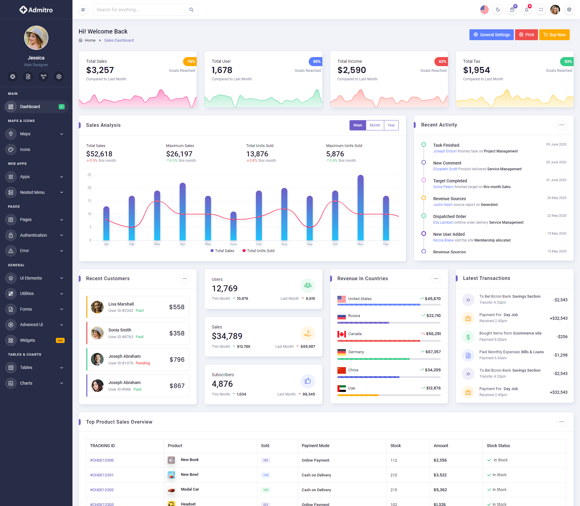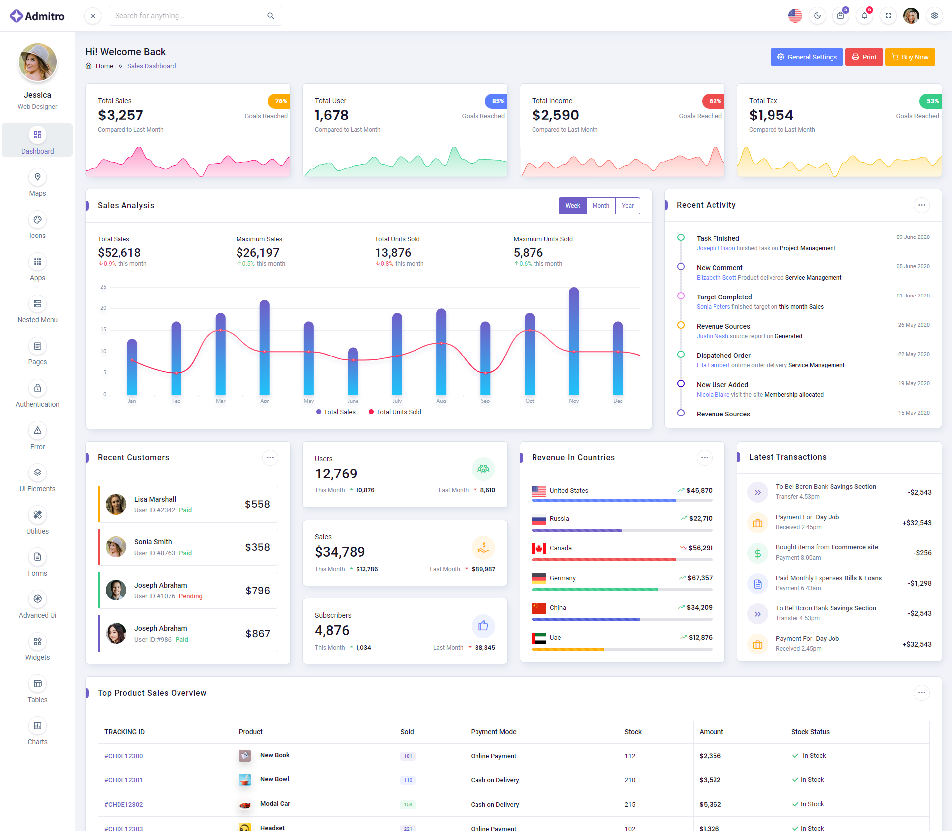 The Admitro Dashboard Template comes with a wealth of ready-to-use features, saving developers significant time with its array of pre-built functionalities.