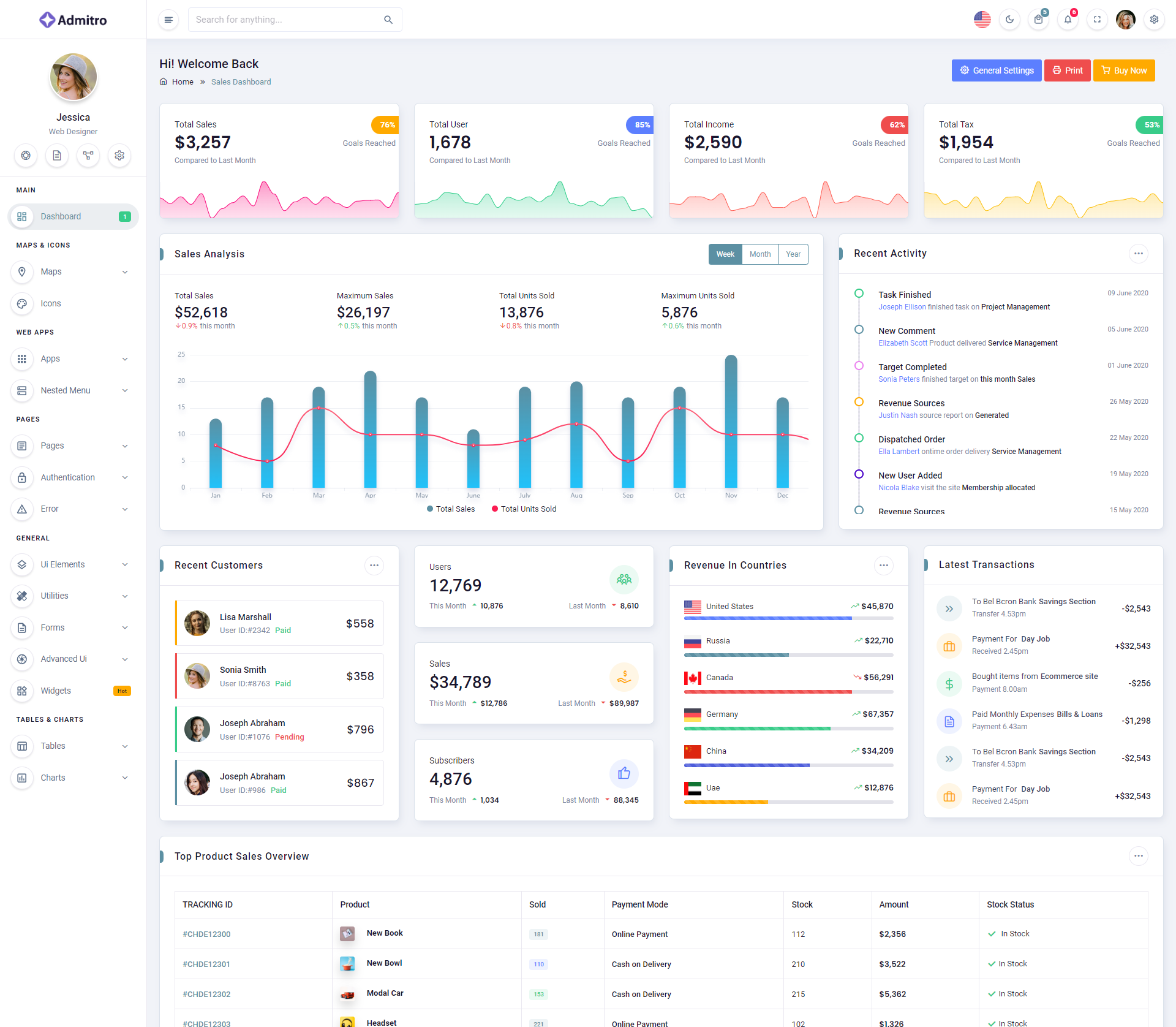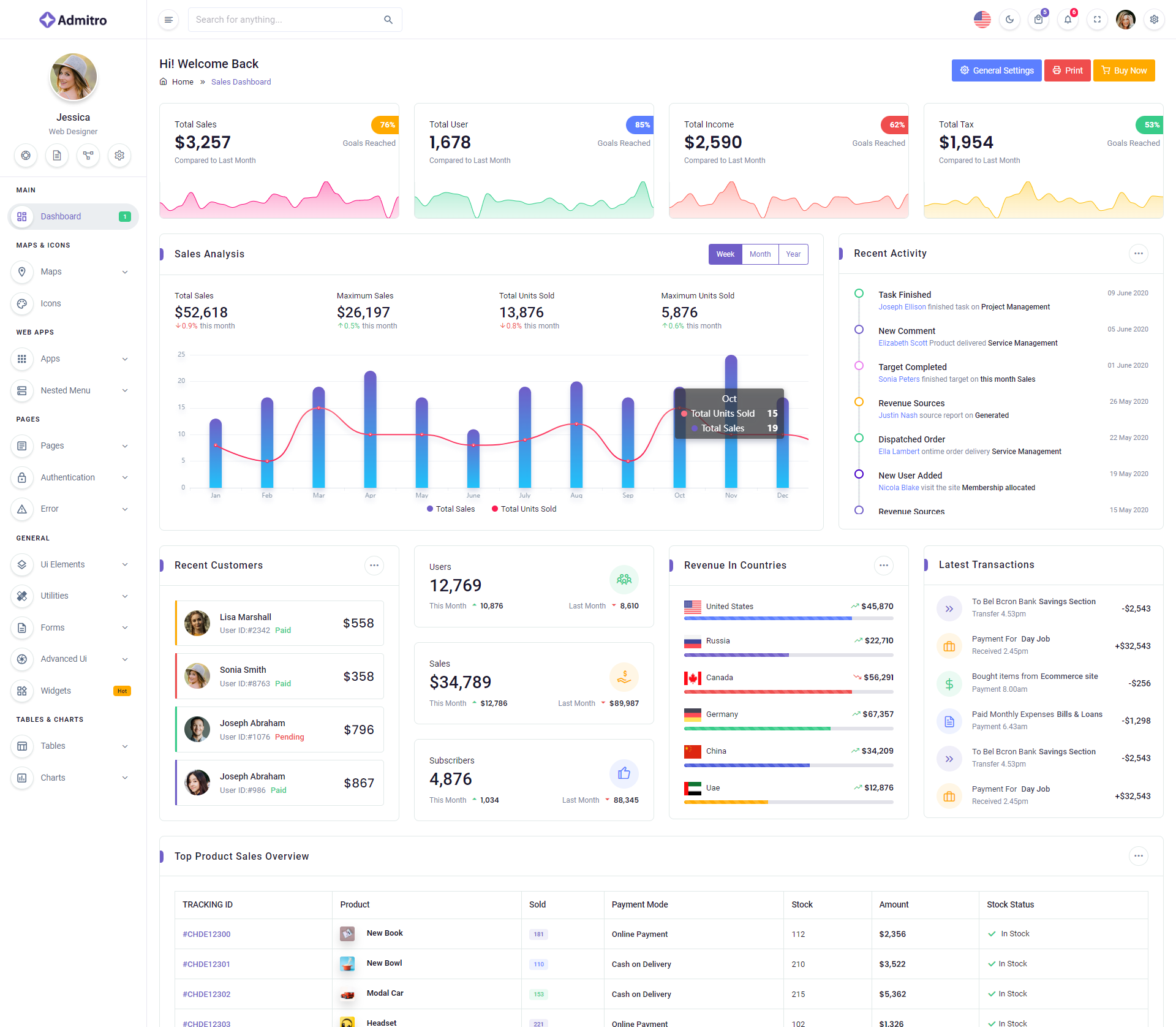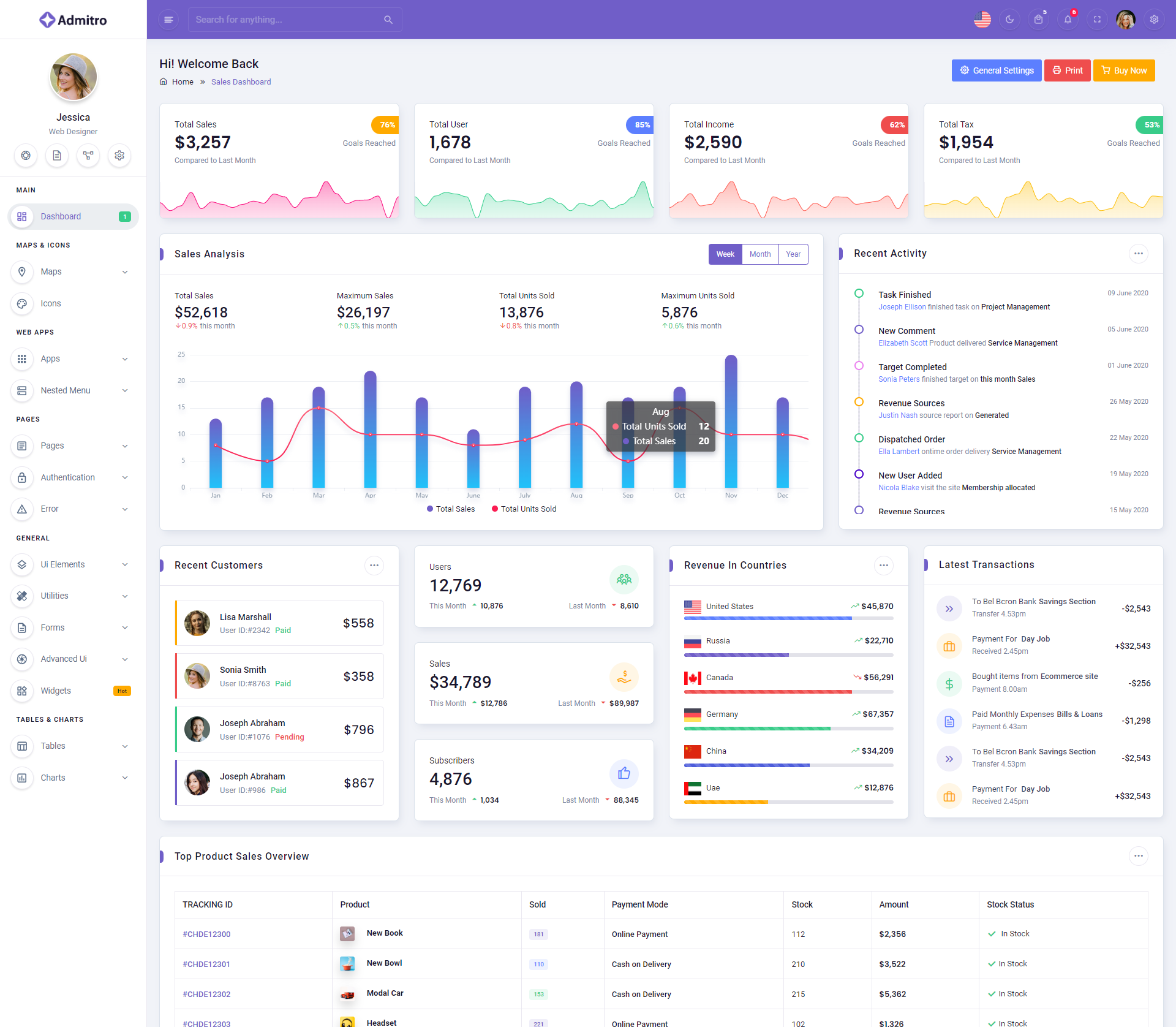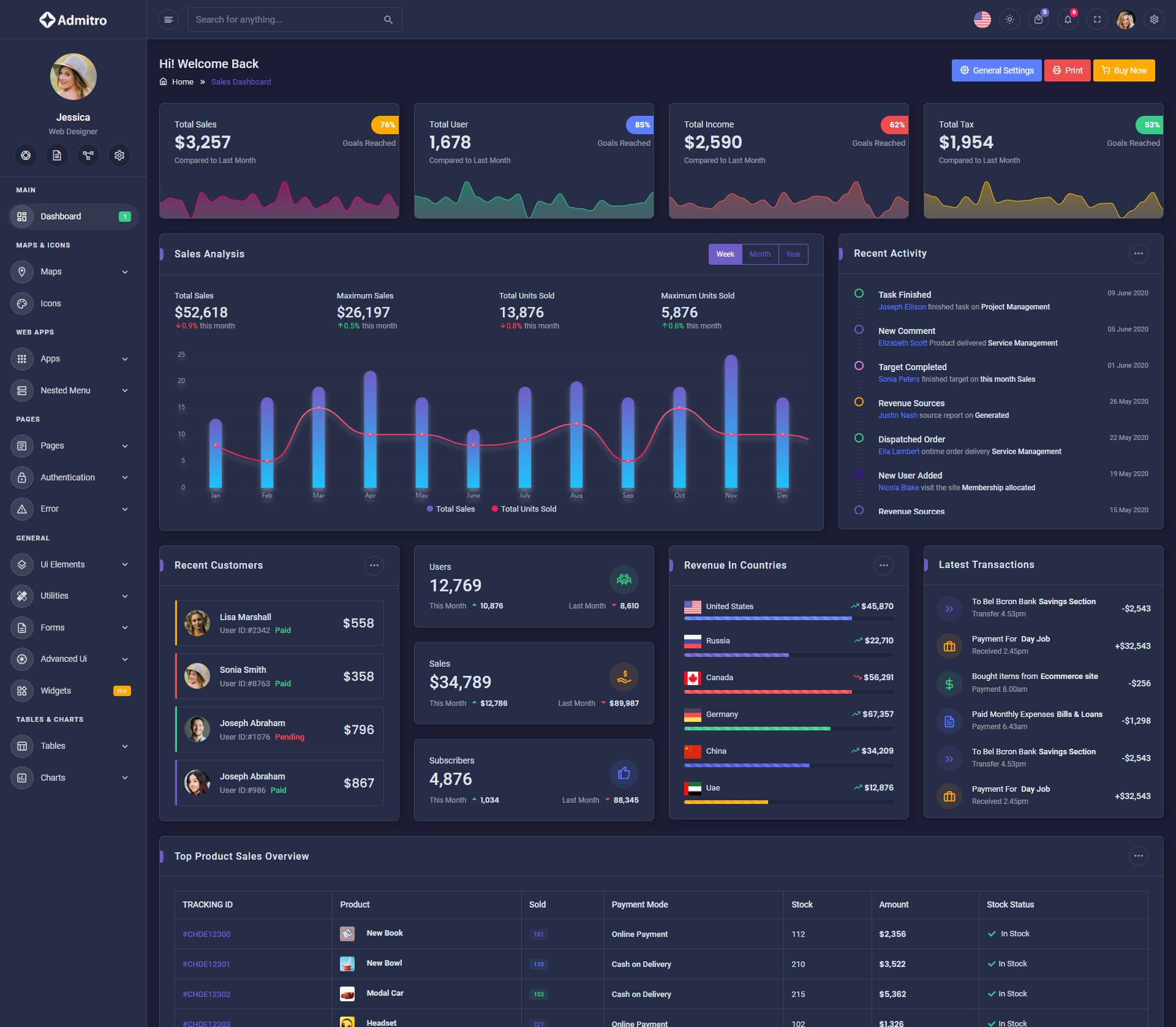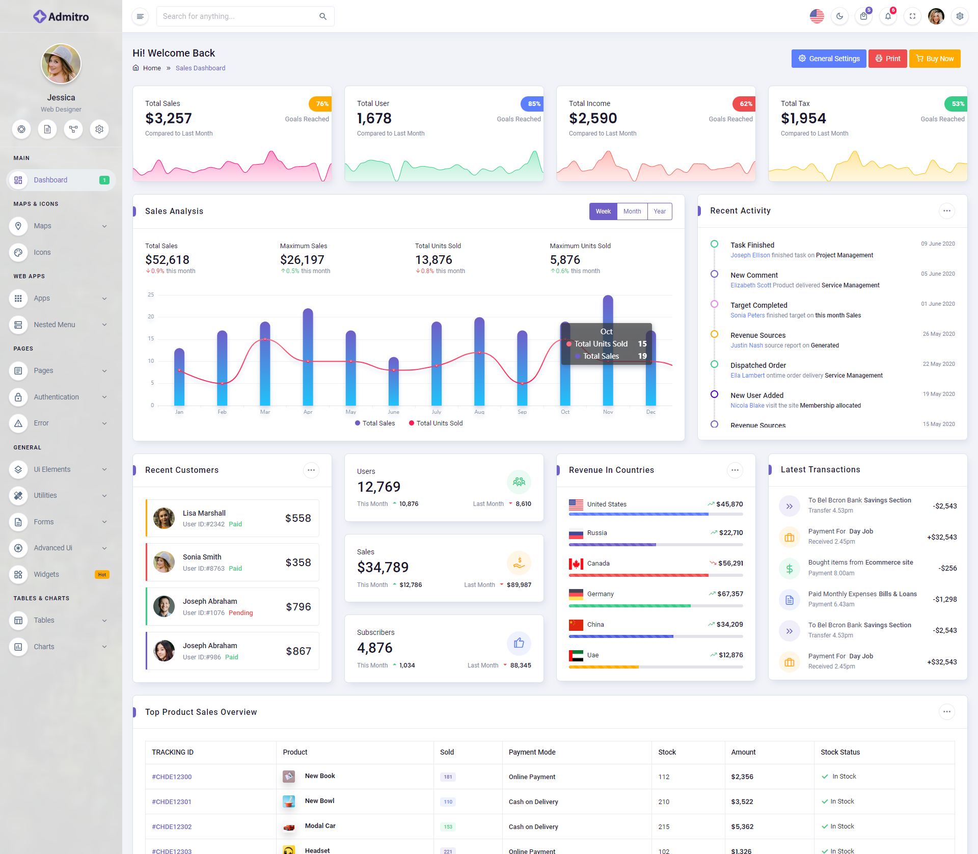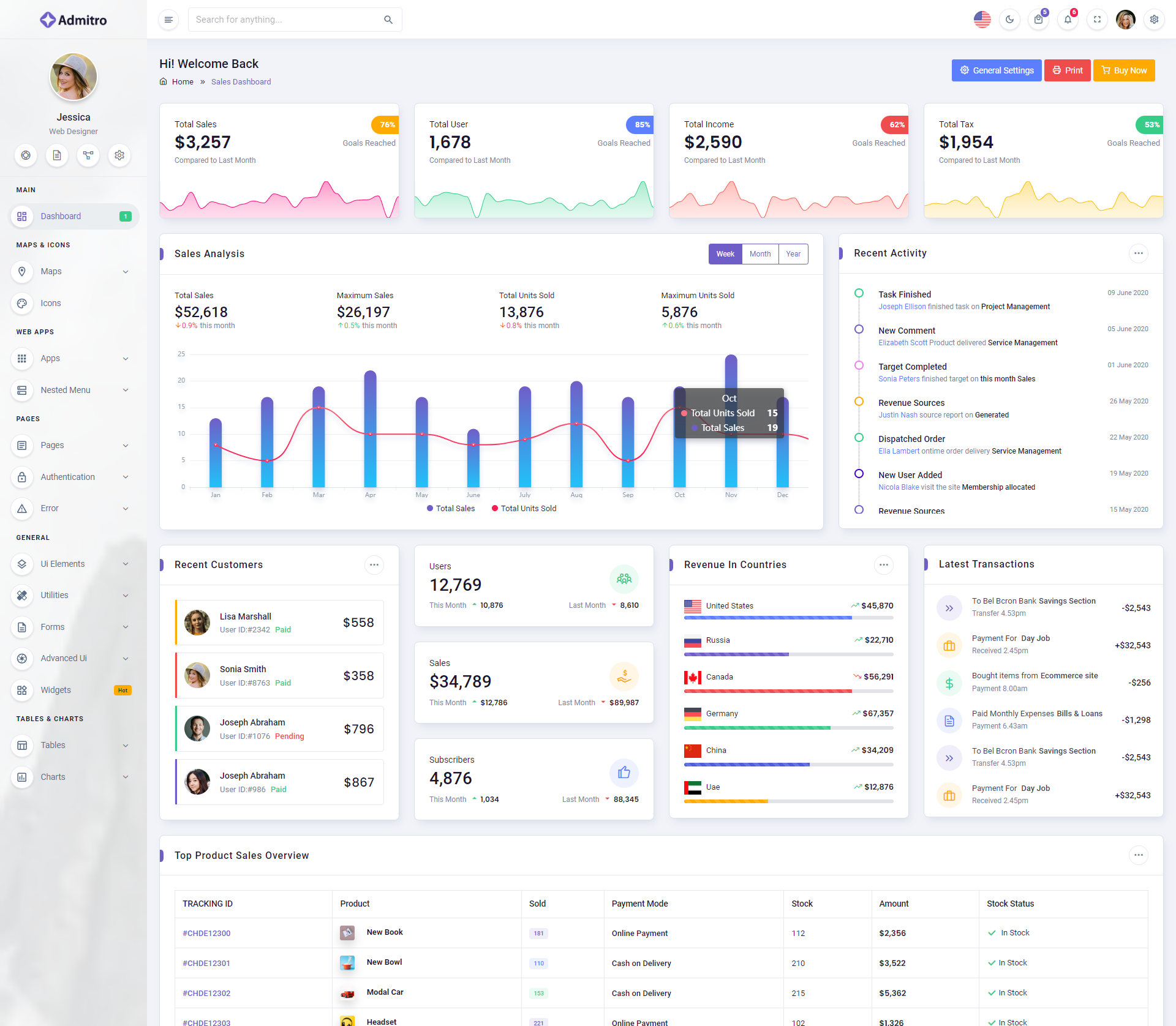 The Admitro Dashboard Template comes with a wealth of ready-to-use features, saving developers significant time with its array of pre-built functionalities.