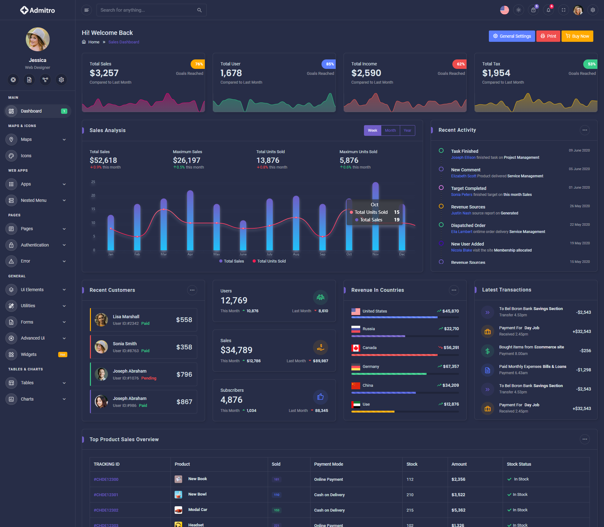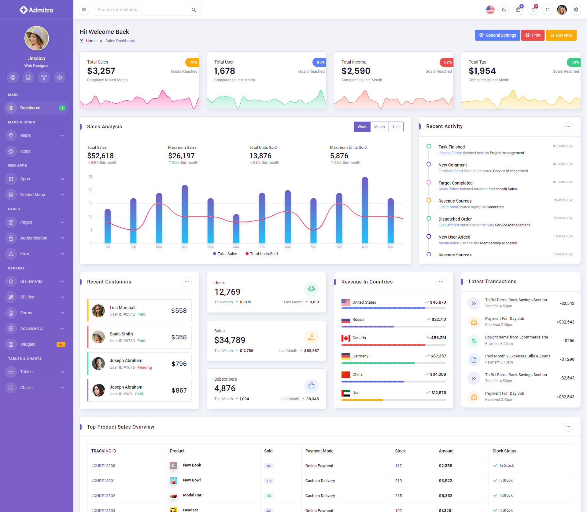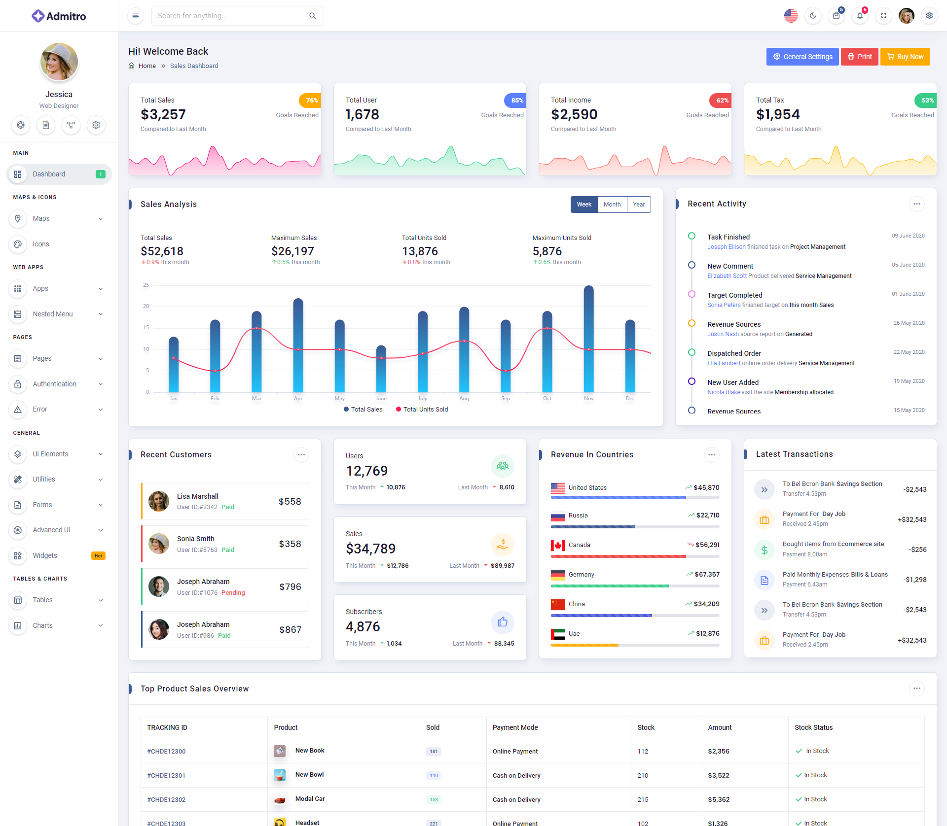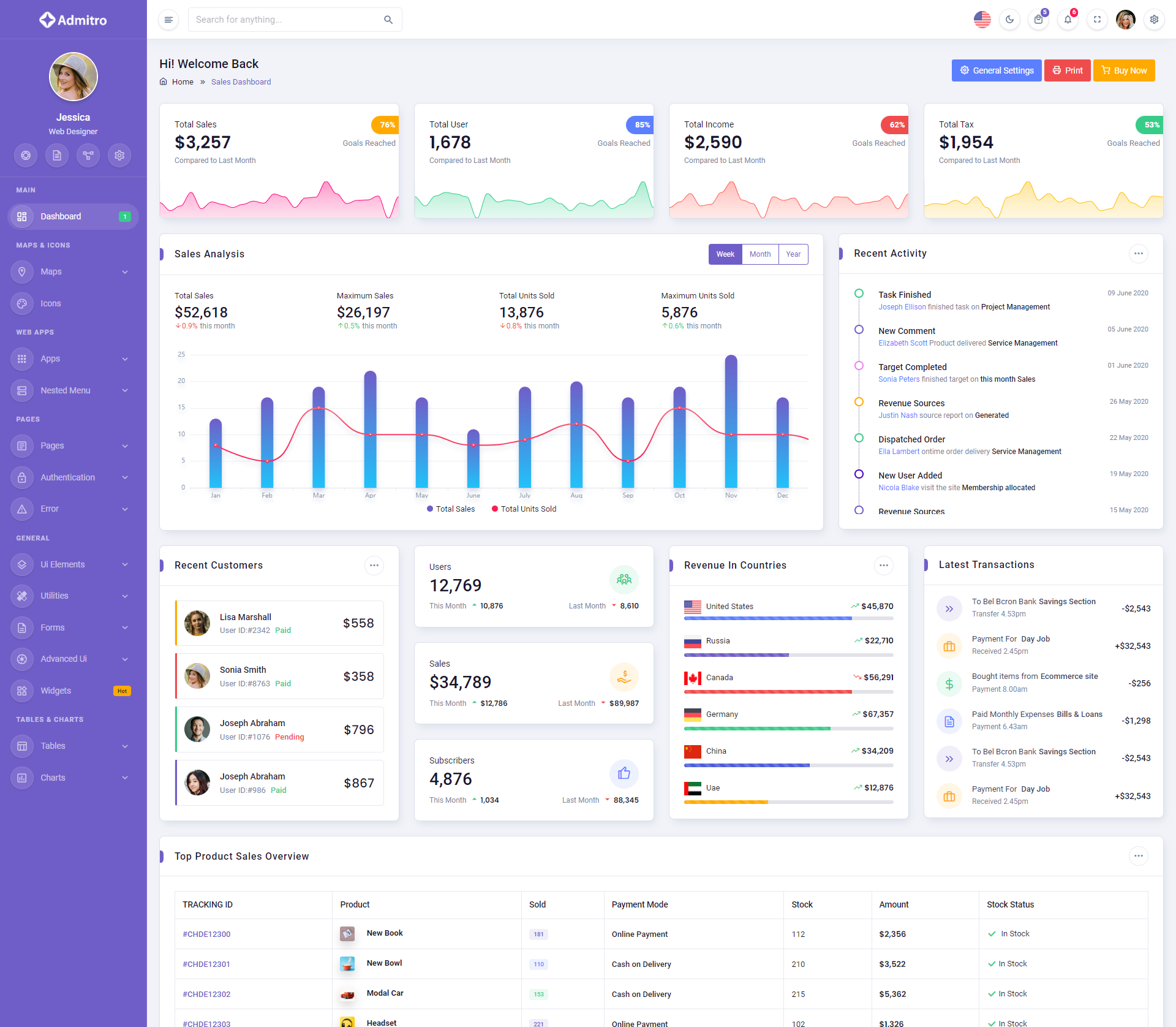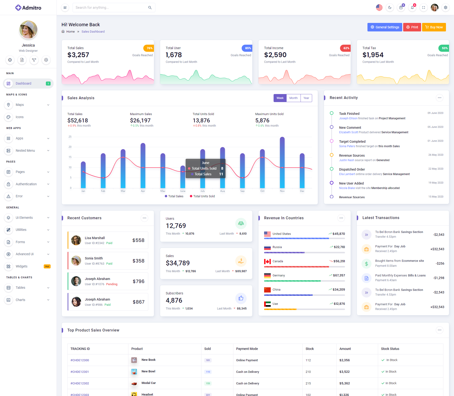 The Admitro Dashboard Template comes with a wealth of ready-to-use features, saving developers significant time with its array of pre-built functionalities.