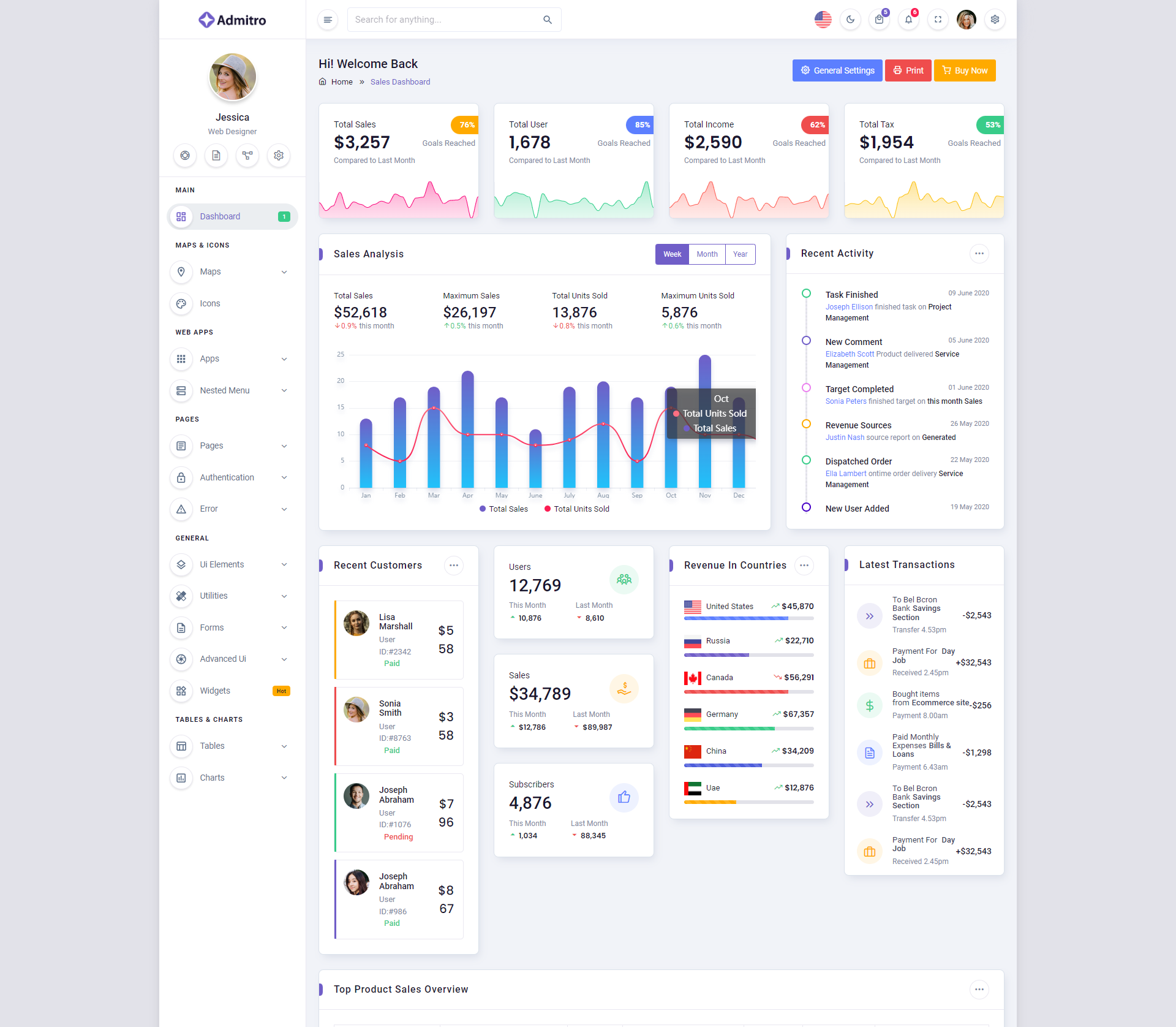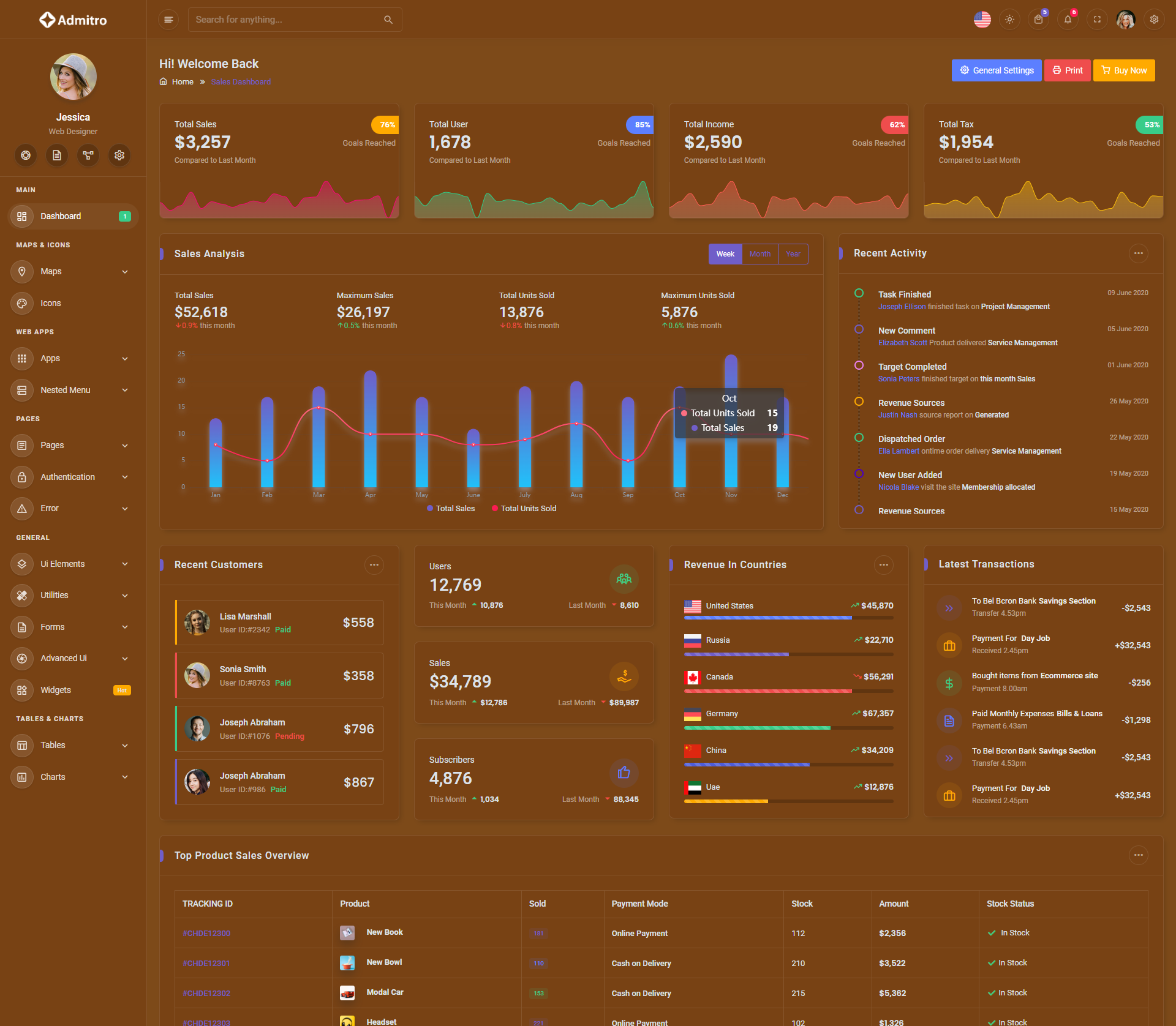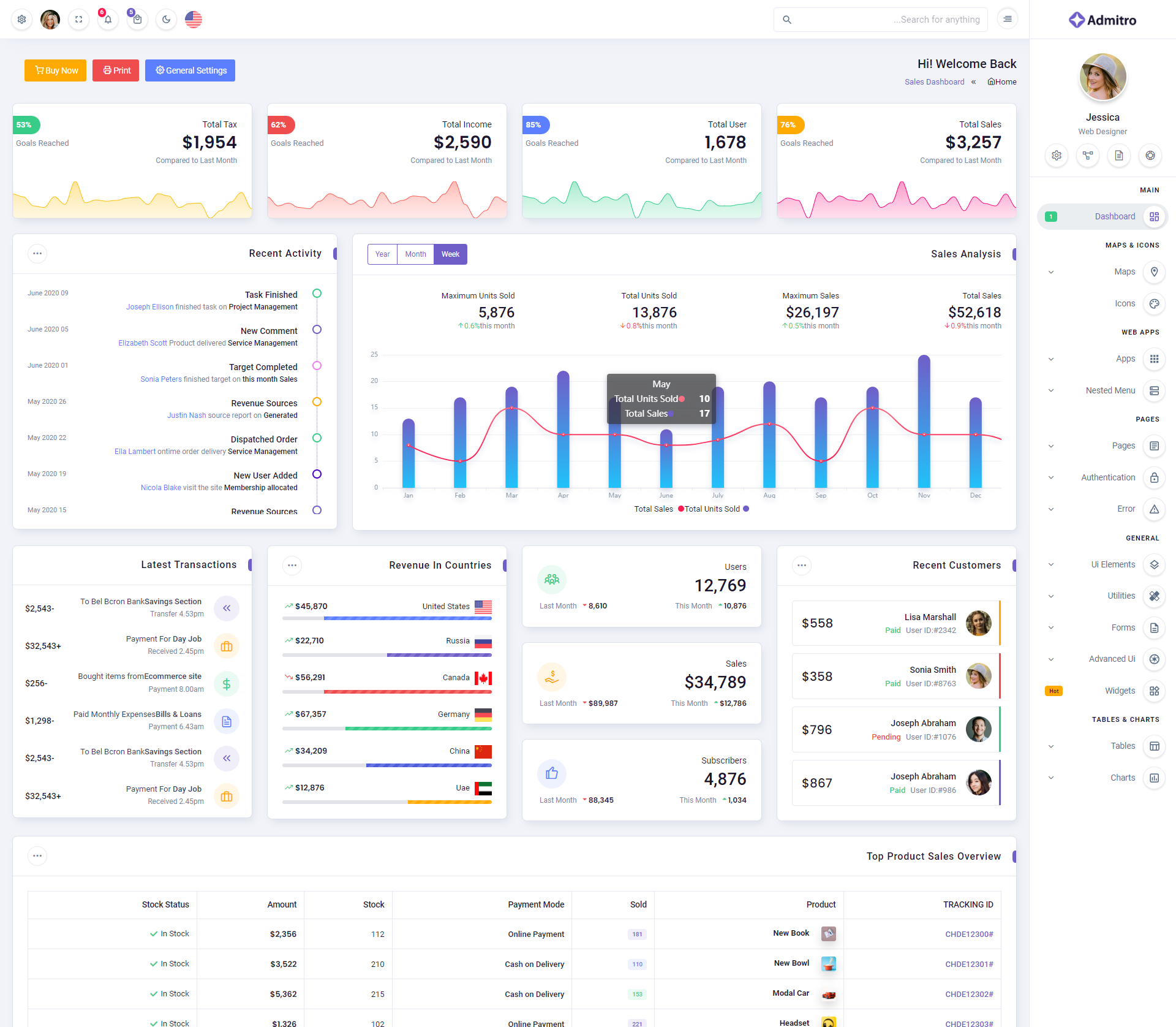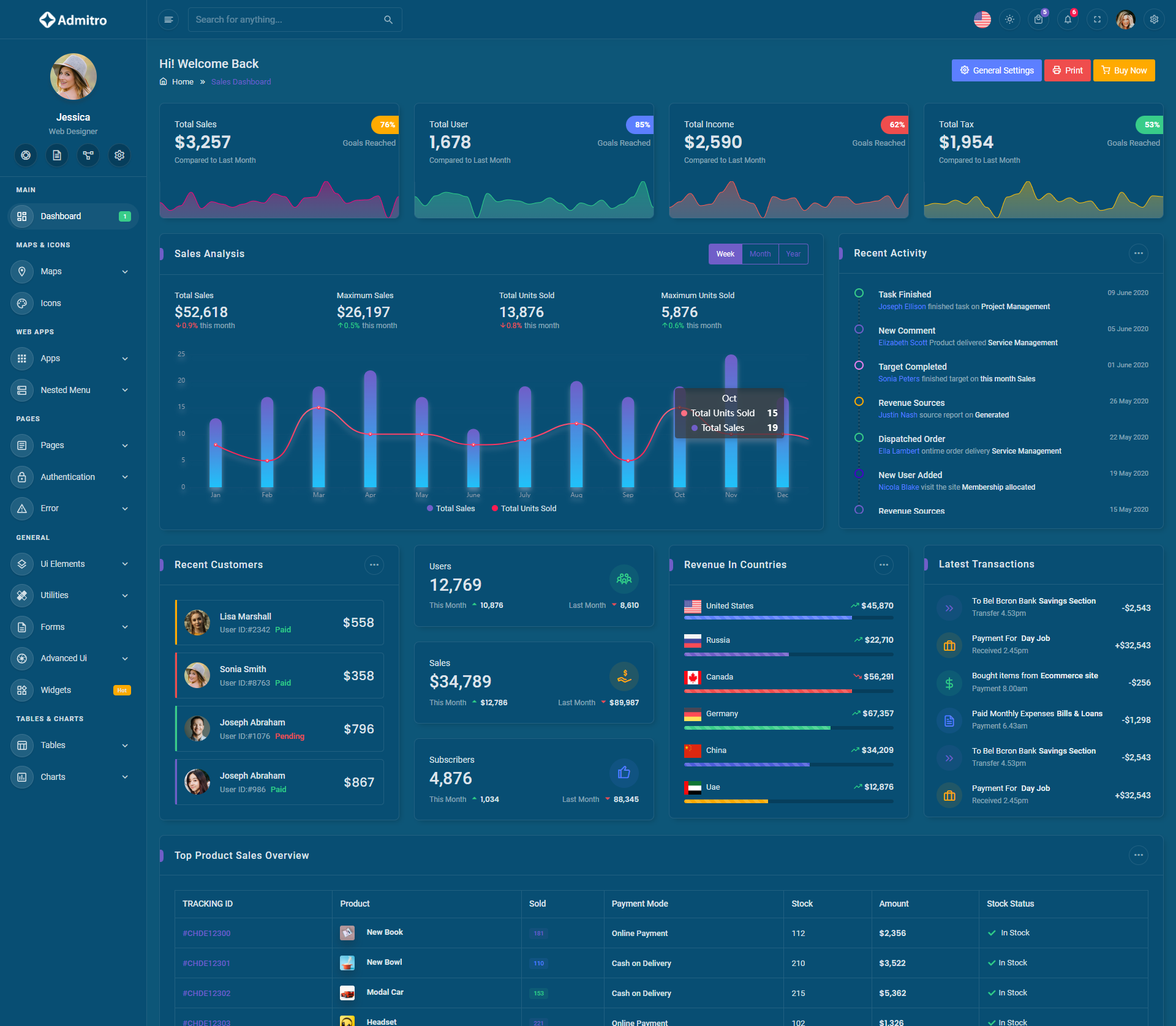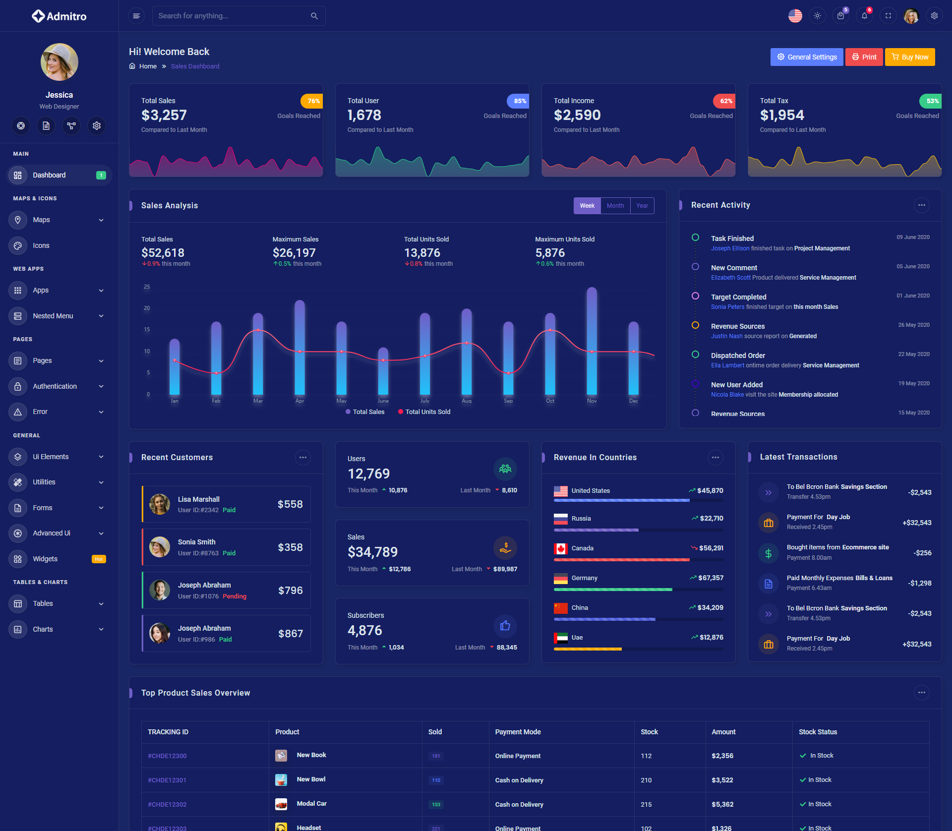 The Admitro Dashboard Template comes with a wealth of ready-to-use features, saving developers significant time with its array of pre-built functionalities.