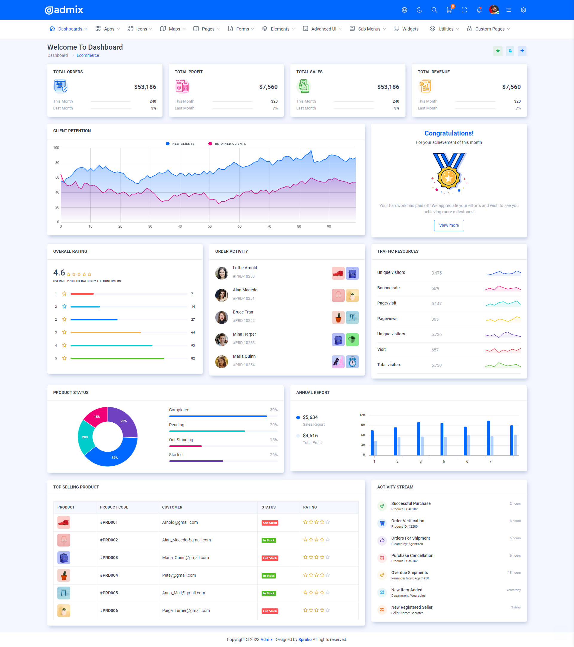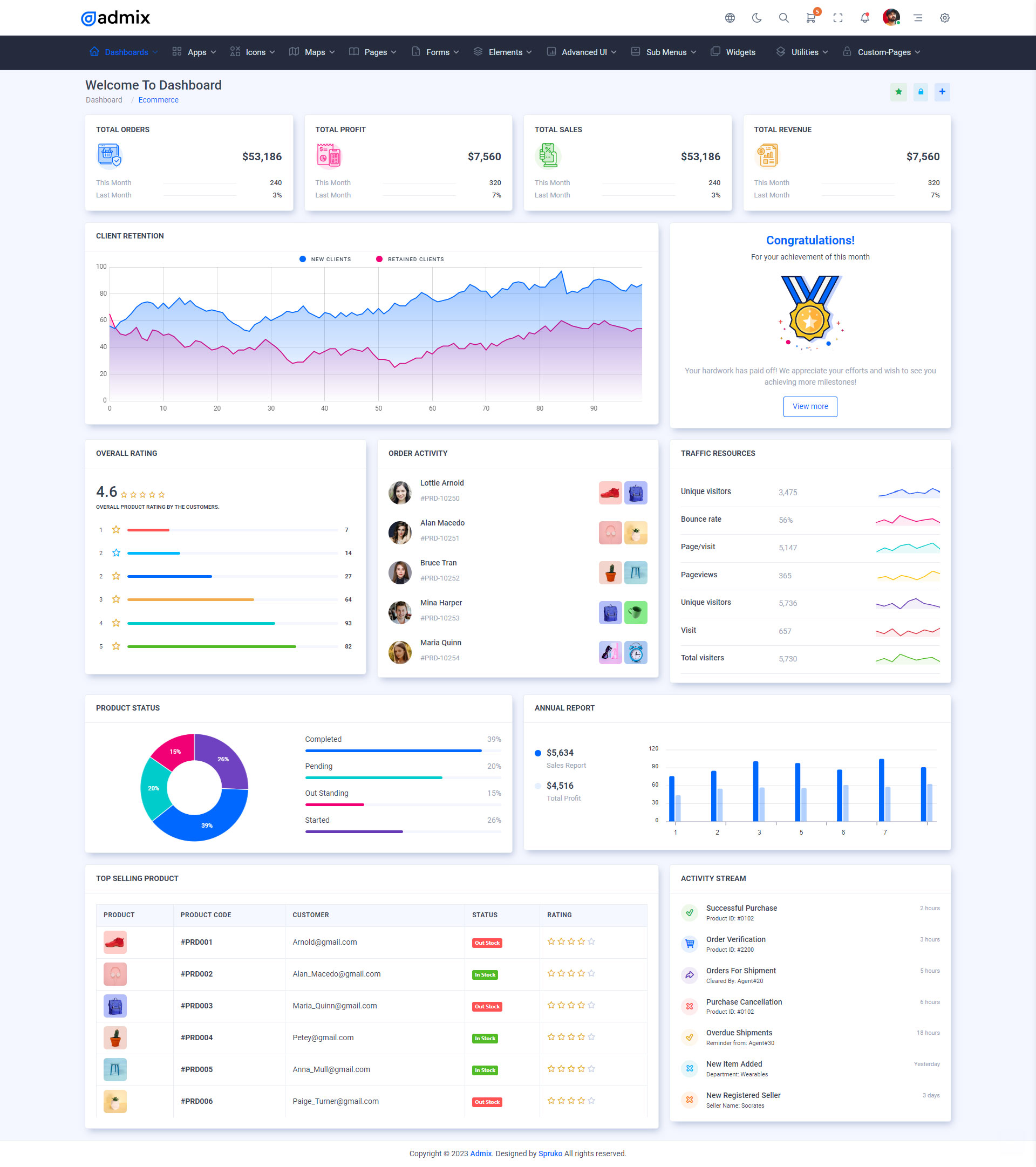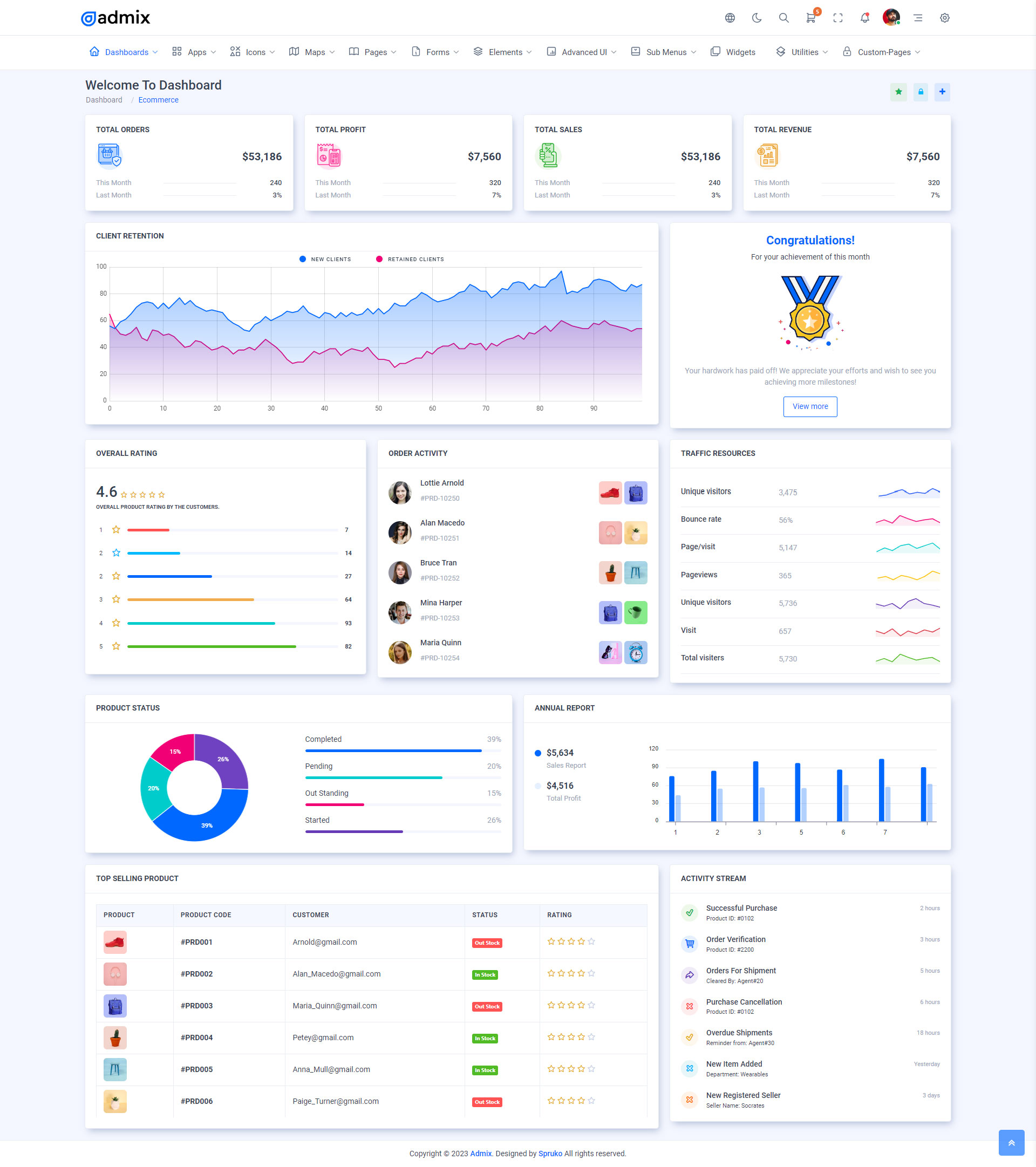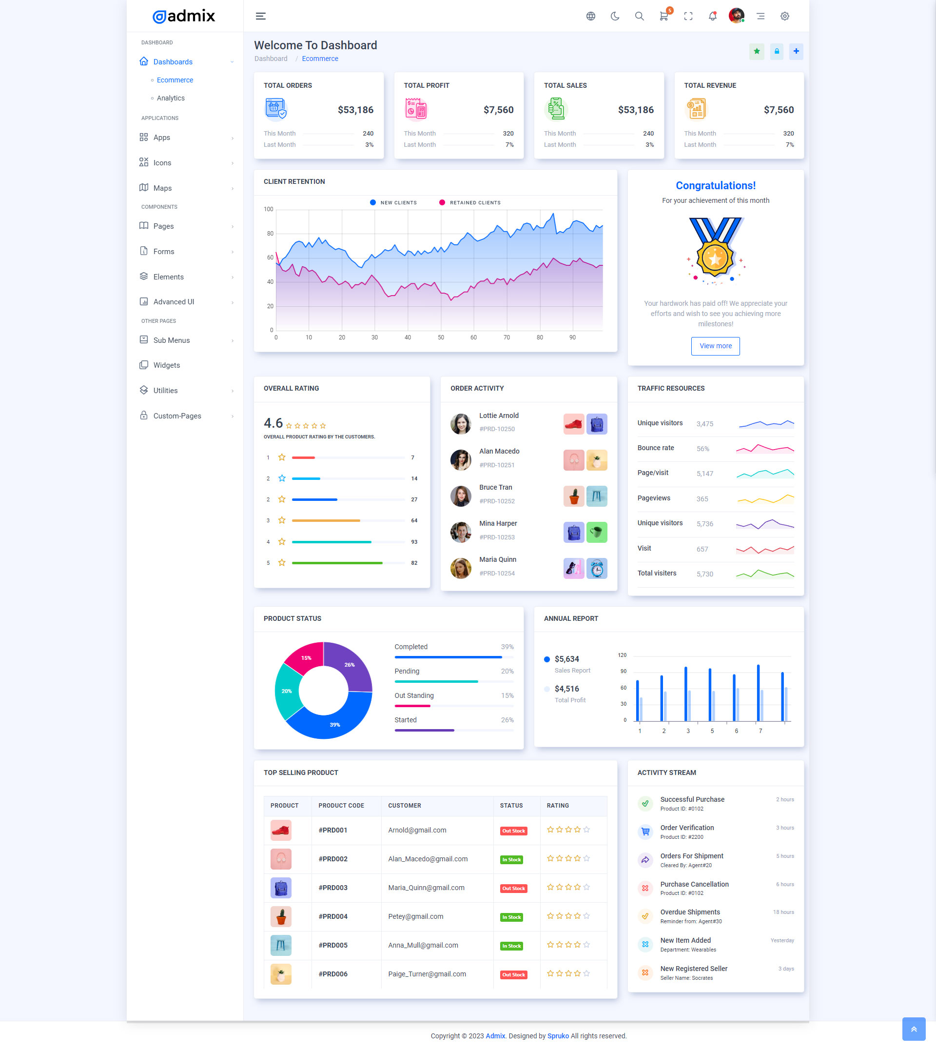 Explore the latest trending features incorporated into the Admix Admin template, showcasing how we have enhanced and designed our template. When it comes to design, we always keep a close watch on the most trending features.