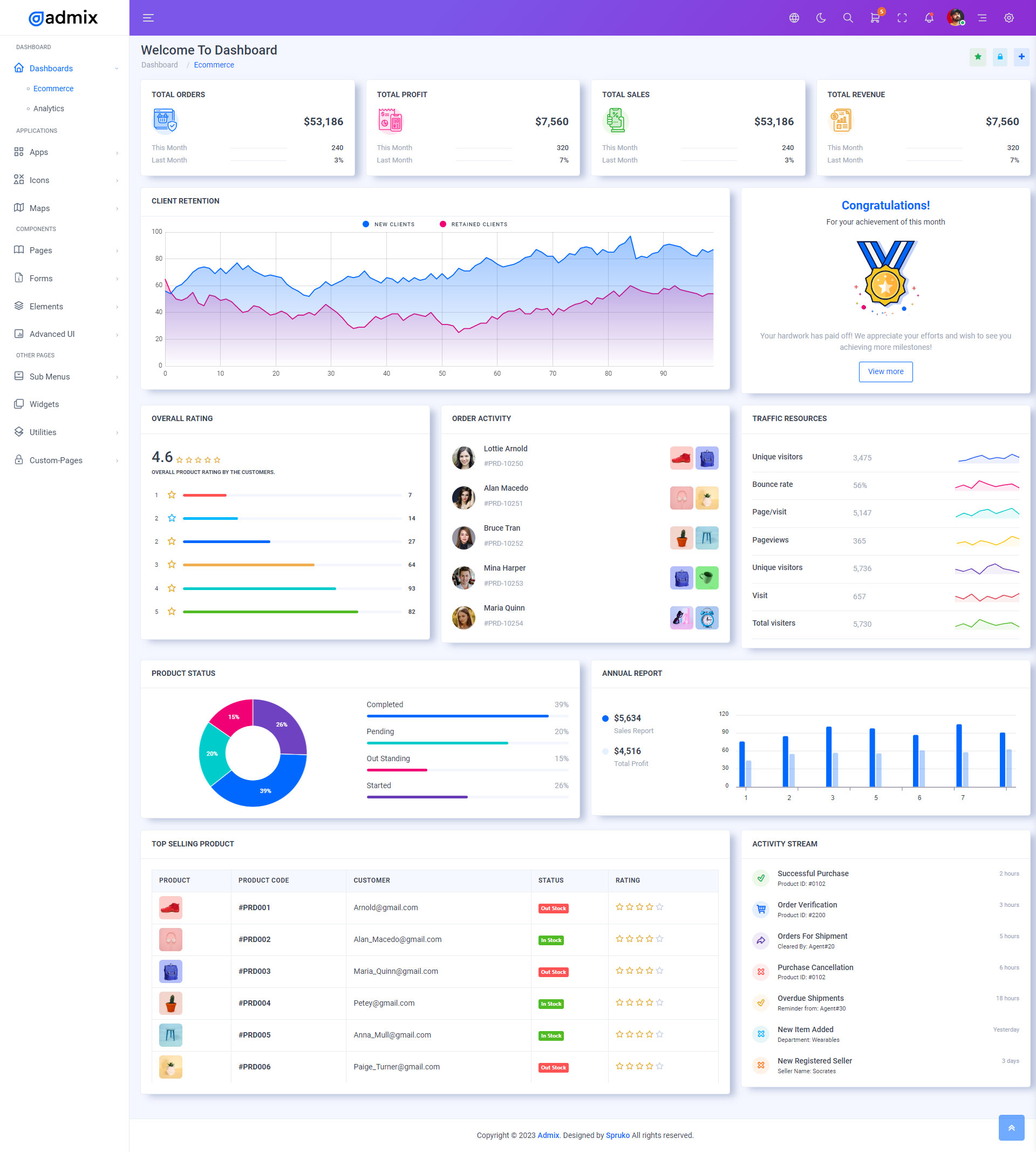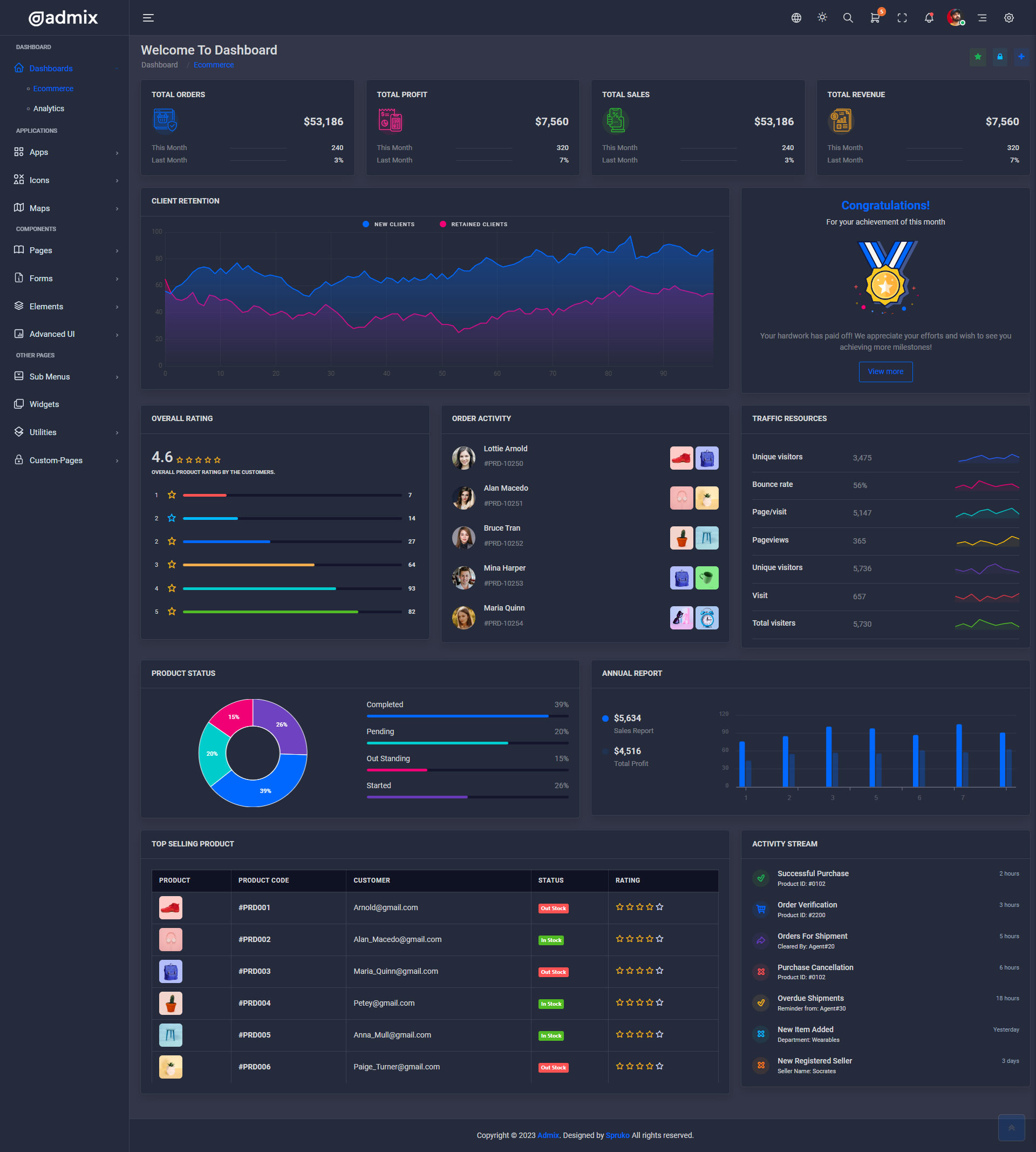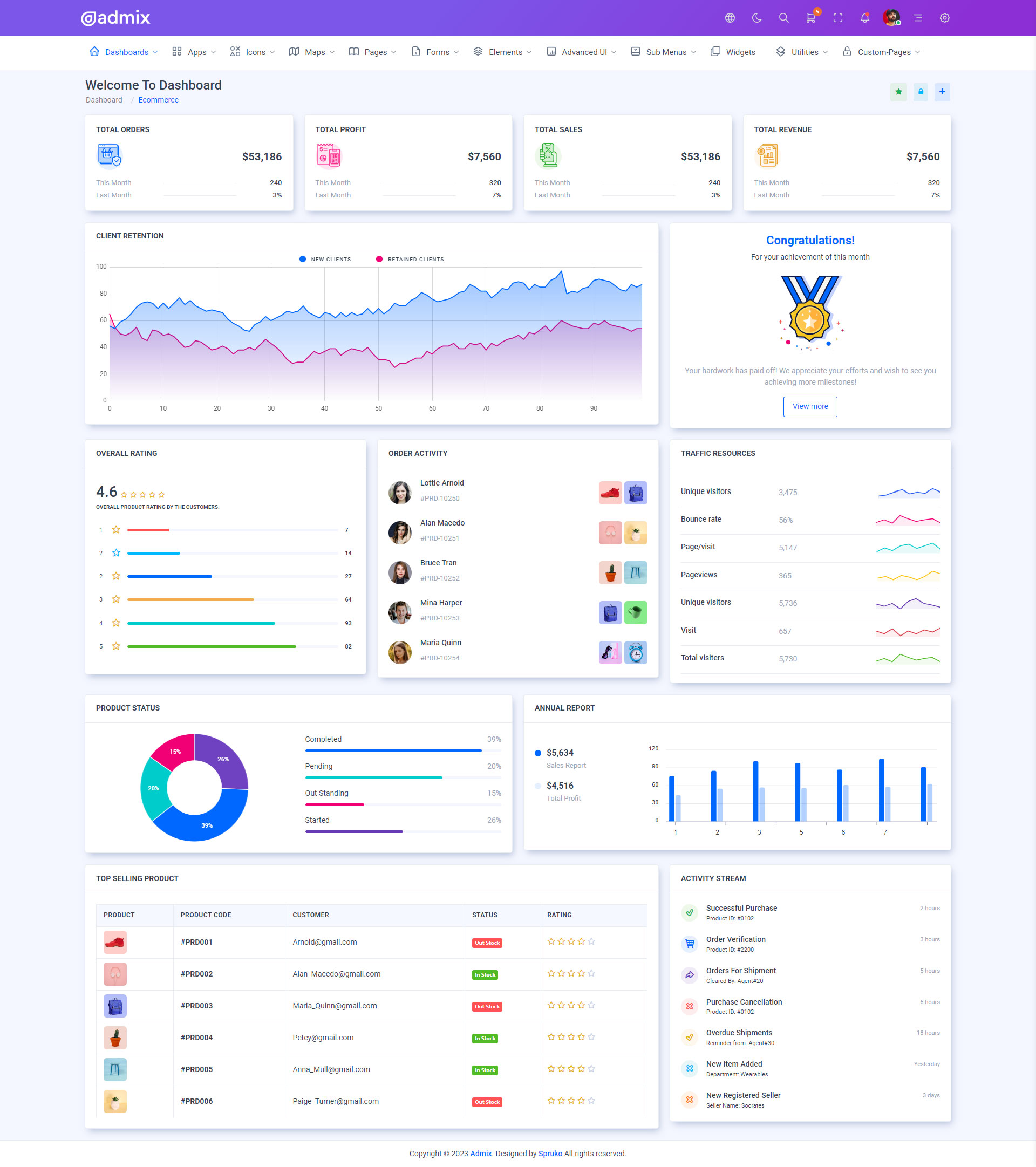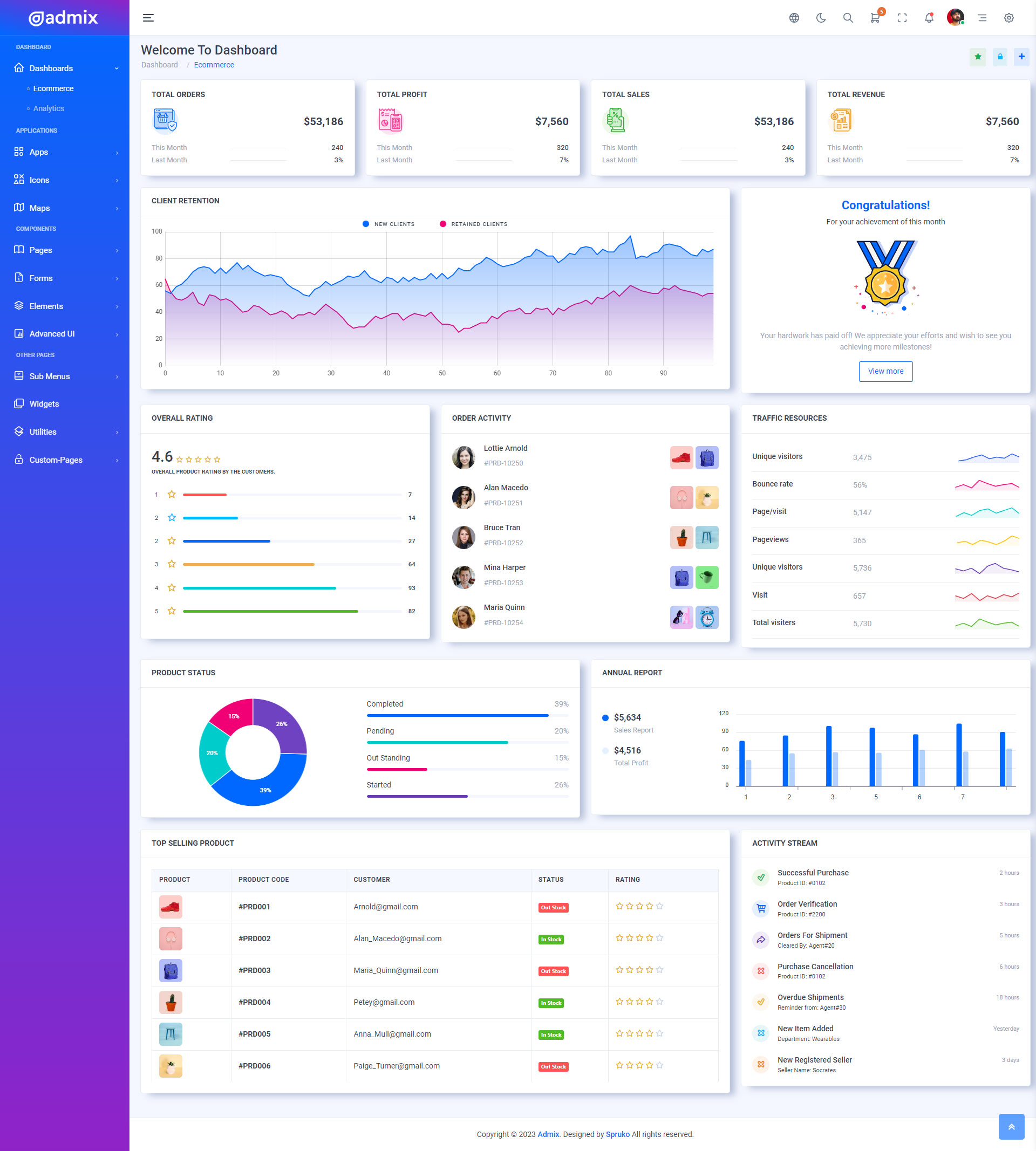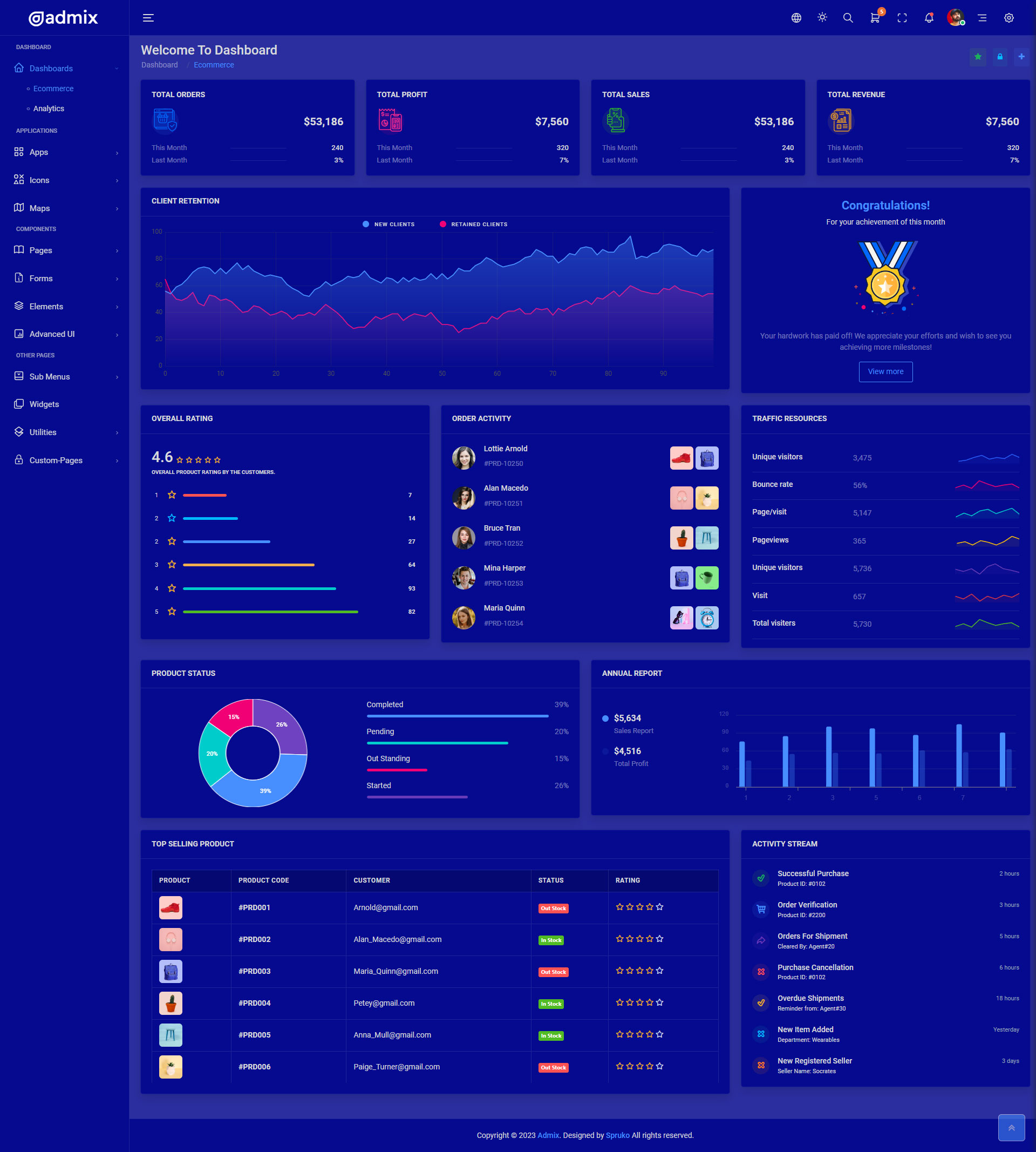 Explore the latest trending features incorporated into the Admix Admin template, showcasing how we have enhanced and designed our template. When it comes to design, we always keep a close watch on the most trending features.
