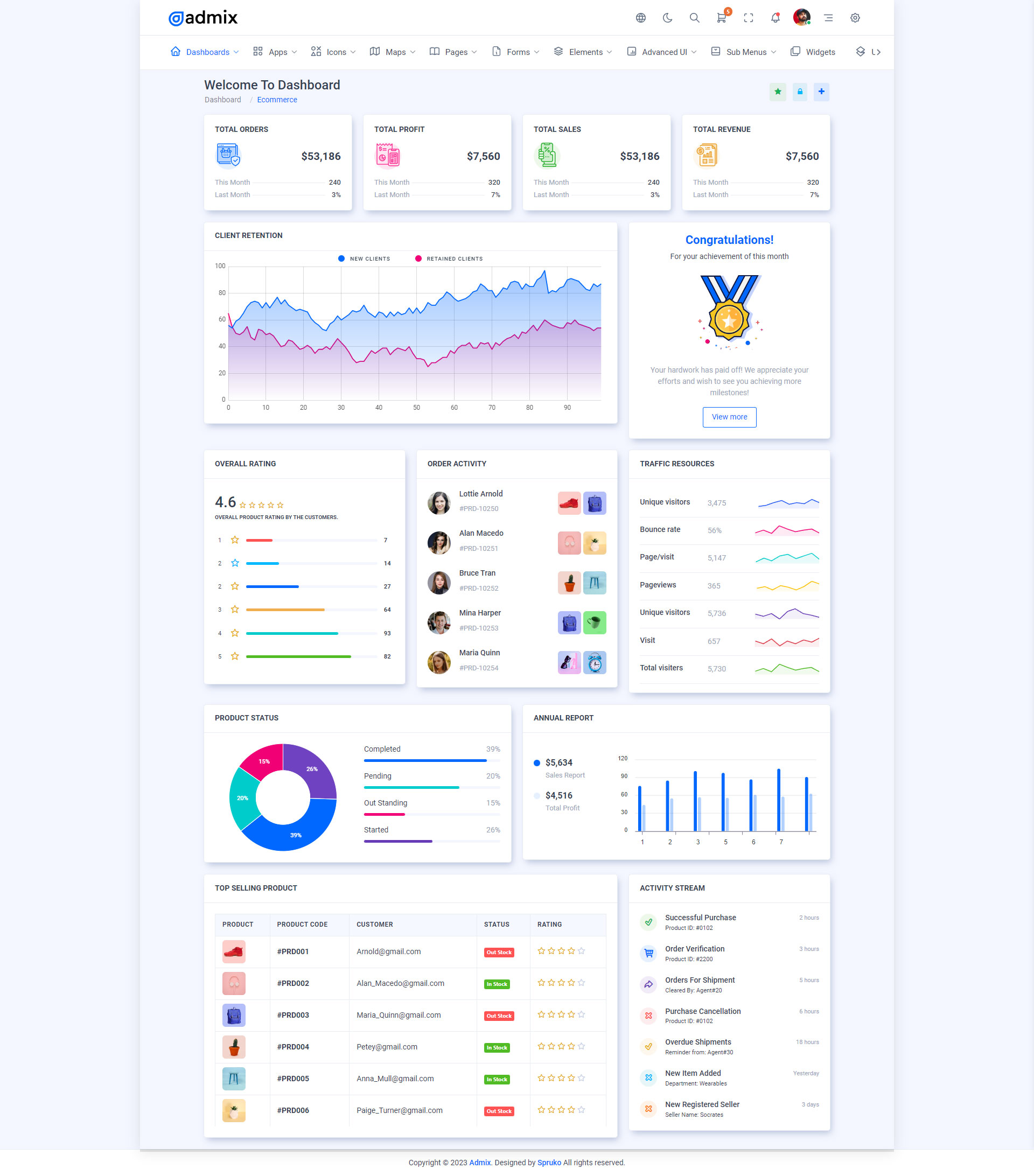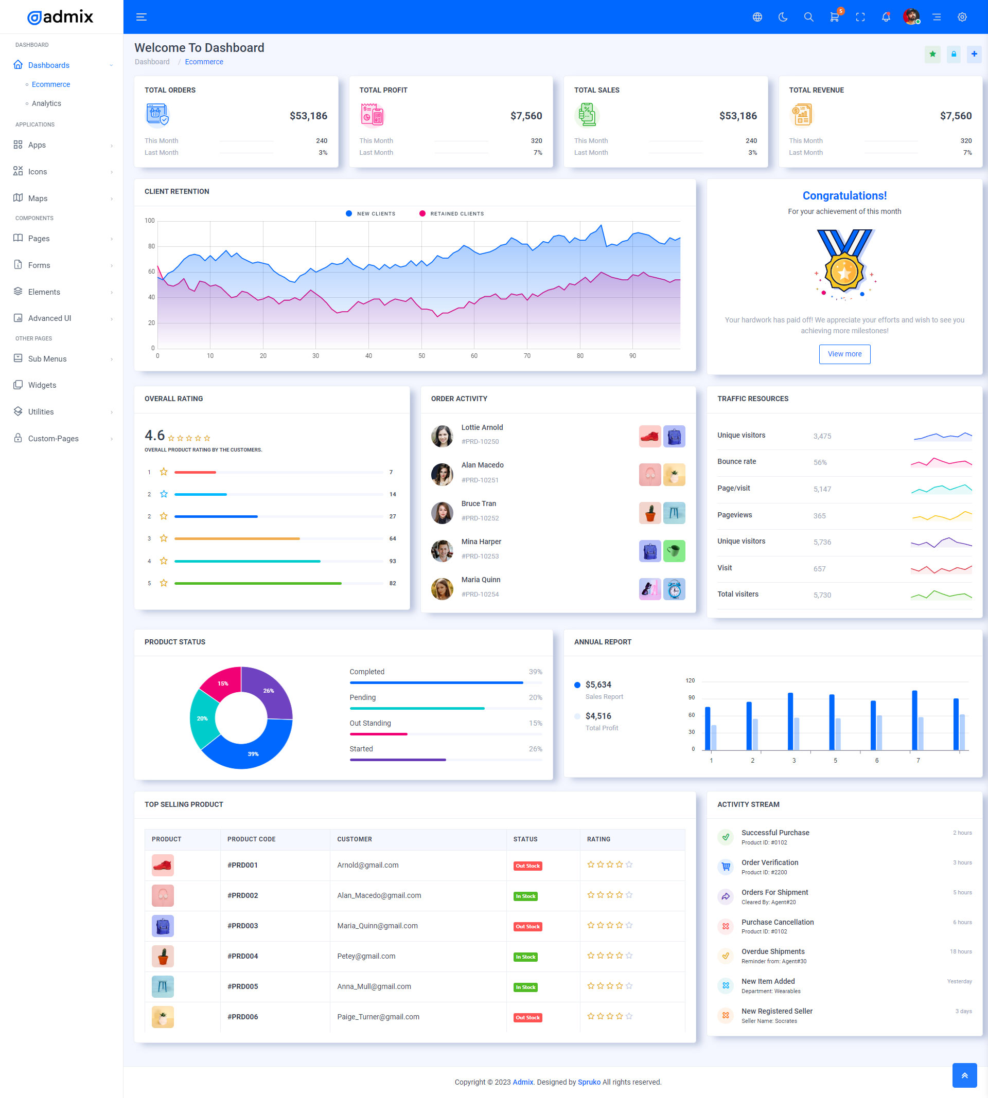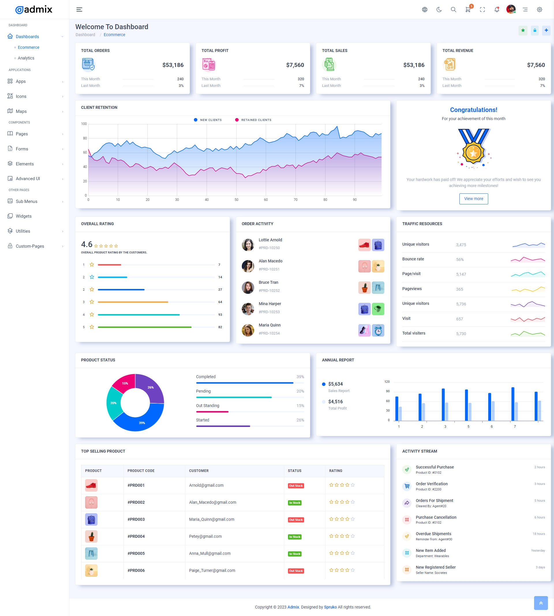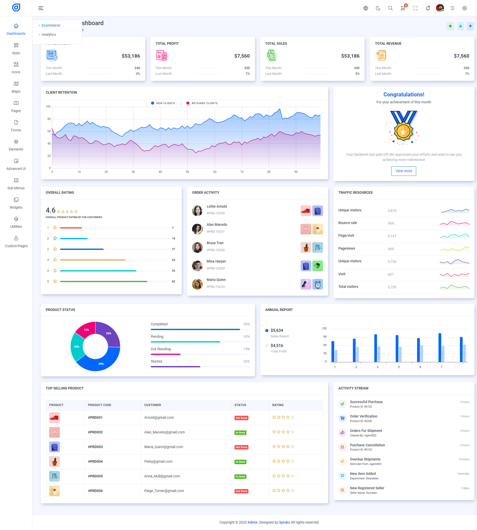 Explore the latest trending features incorporated into the Admix Admin template, showcasing how we have enhanced and designed our template. When it comes to design, we always keep a close watch on the most trending features.