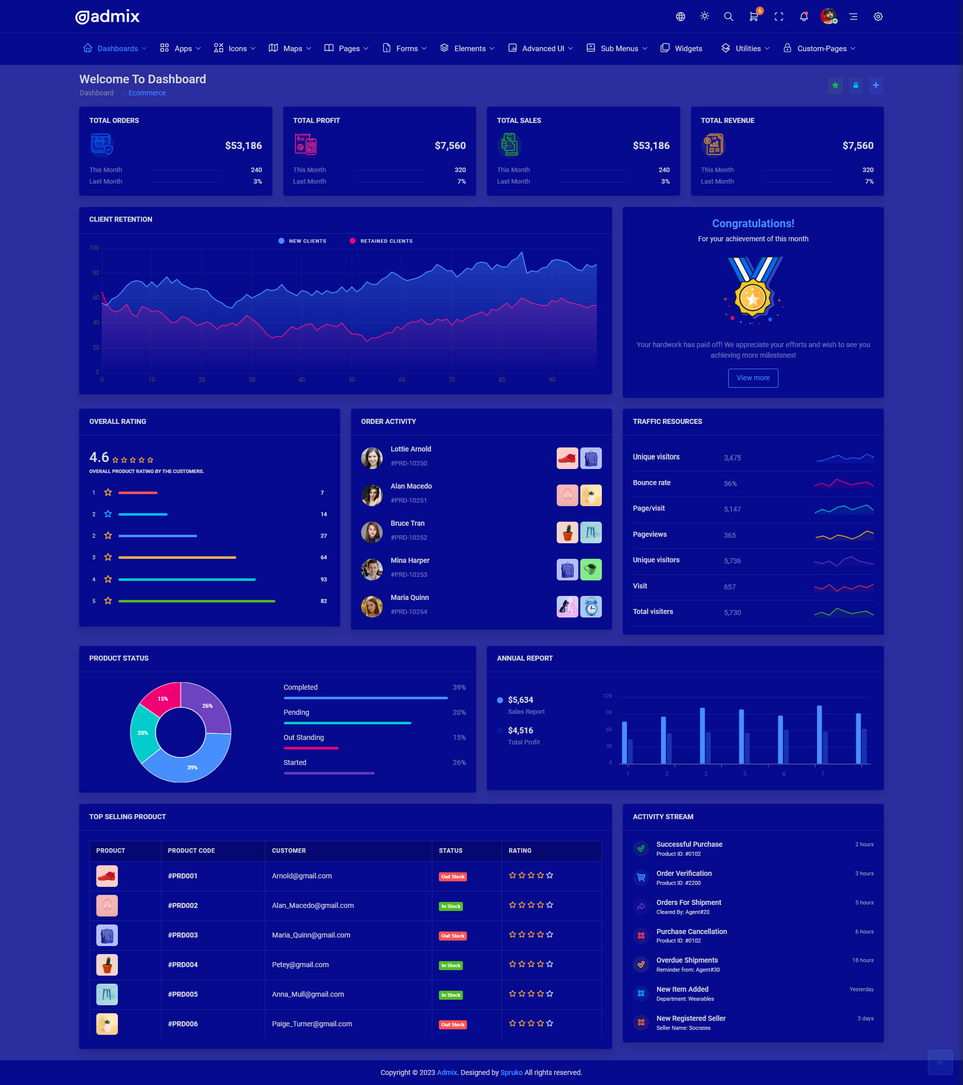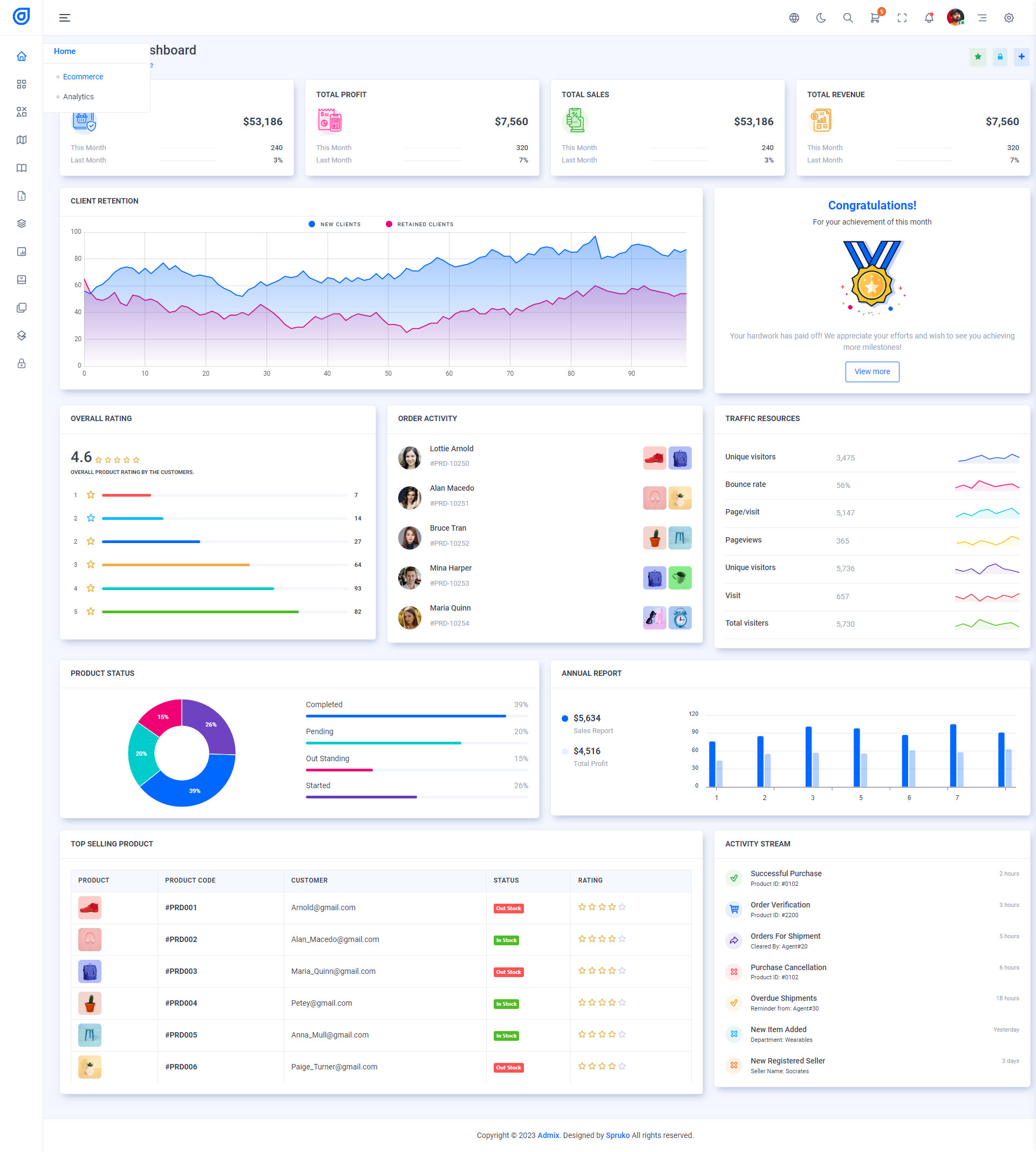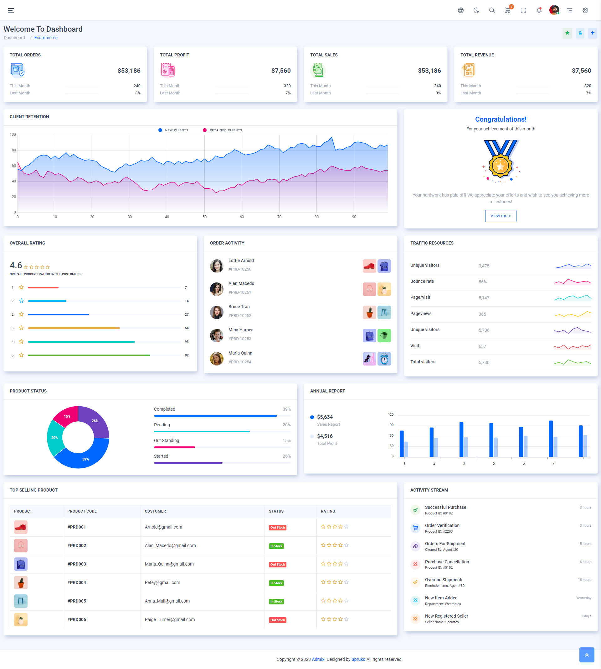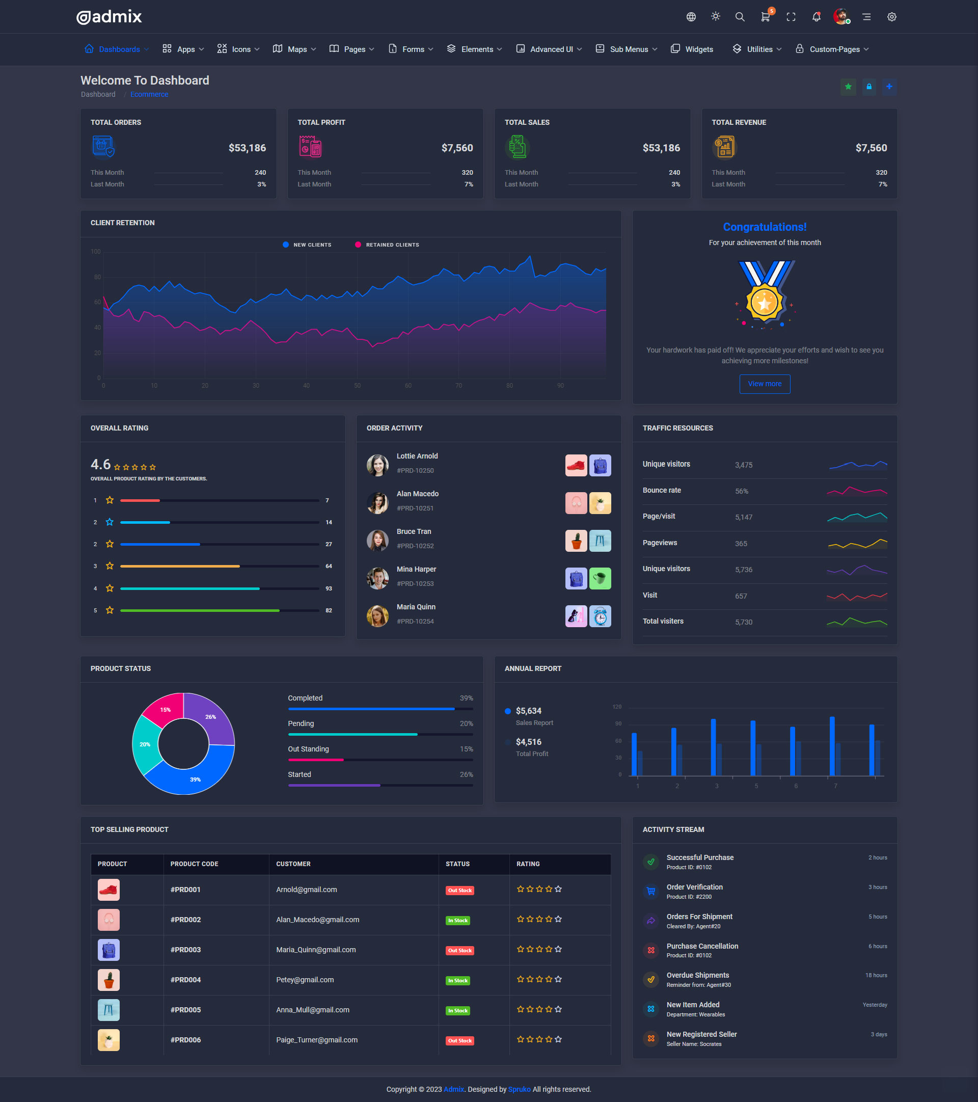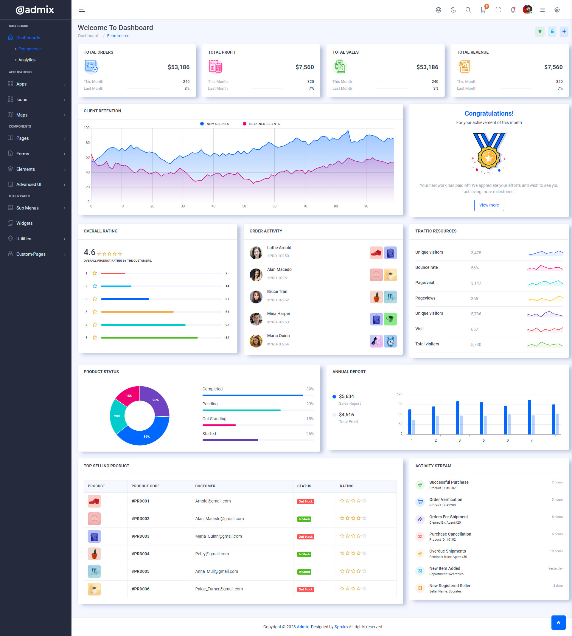 Explore the latest trending features incorporated into the Admix Admin template, showcasing how we have enhanced and designed our template. When it comes to design, we always keep a close watch on the most trending features.