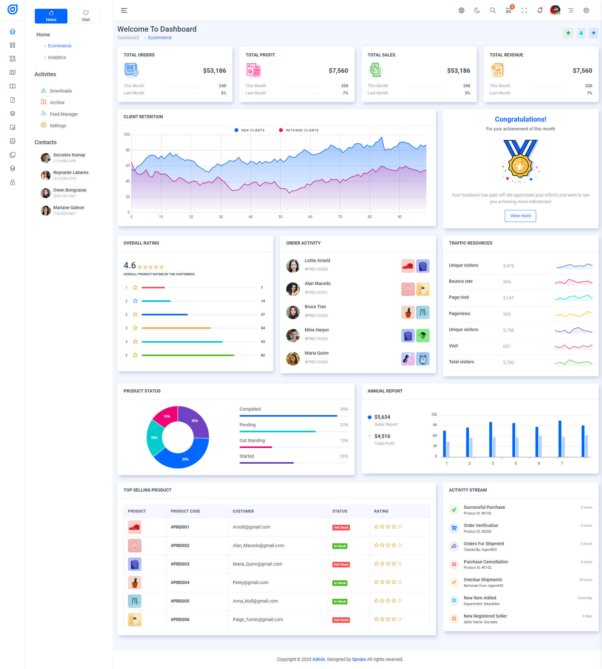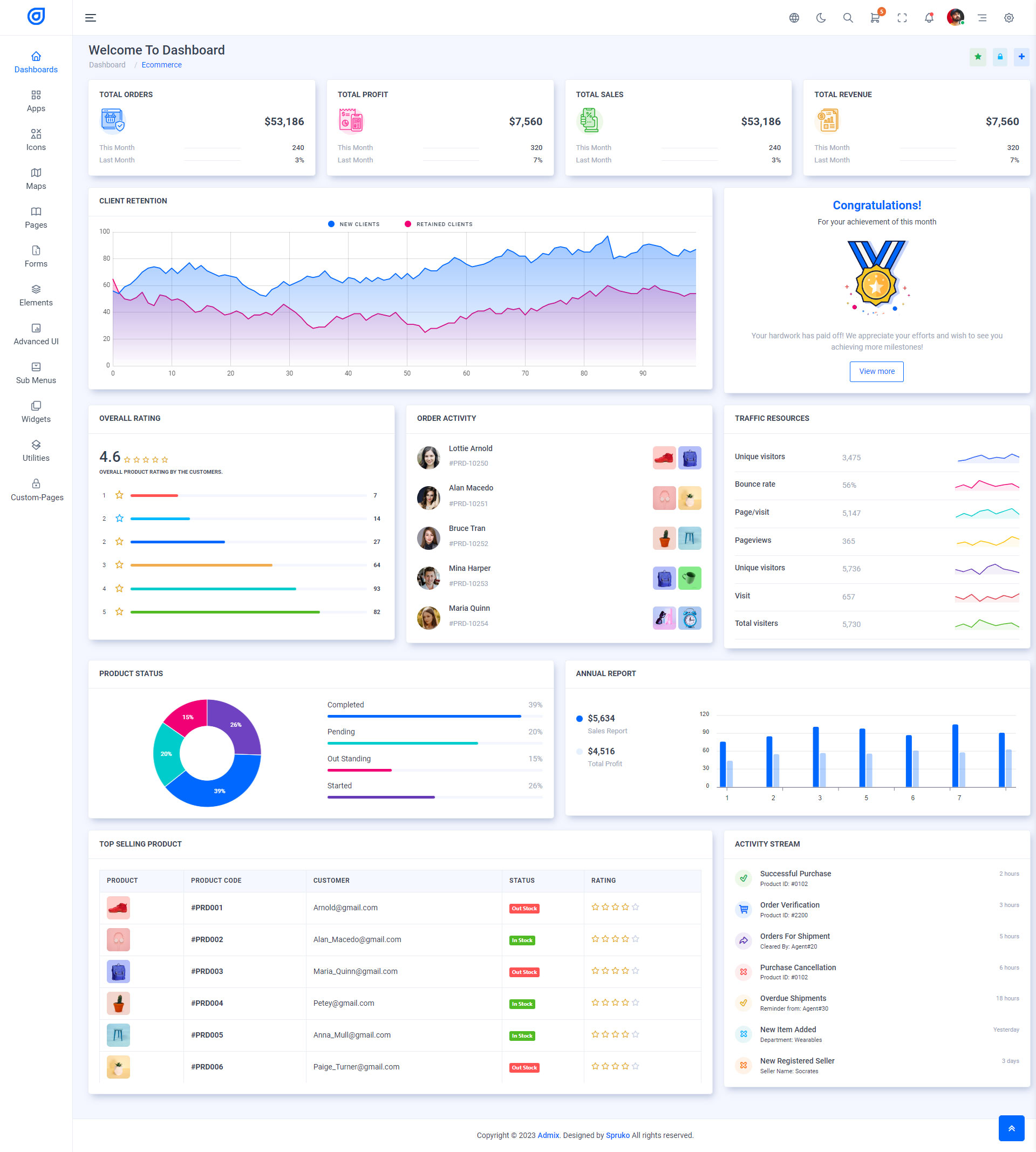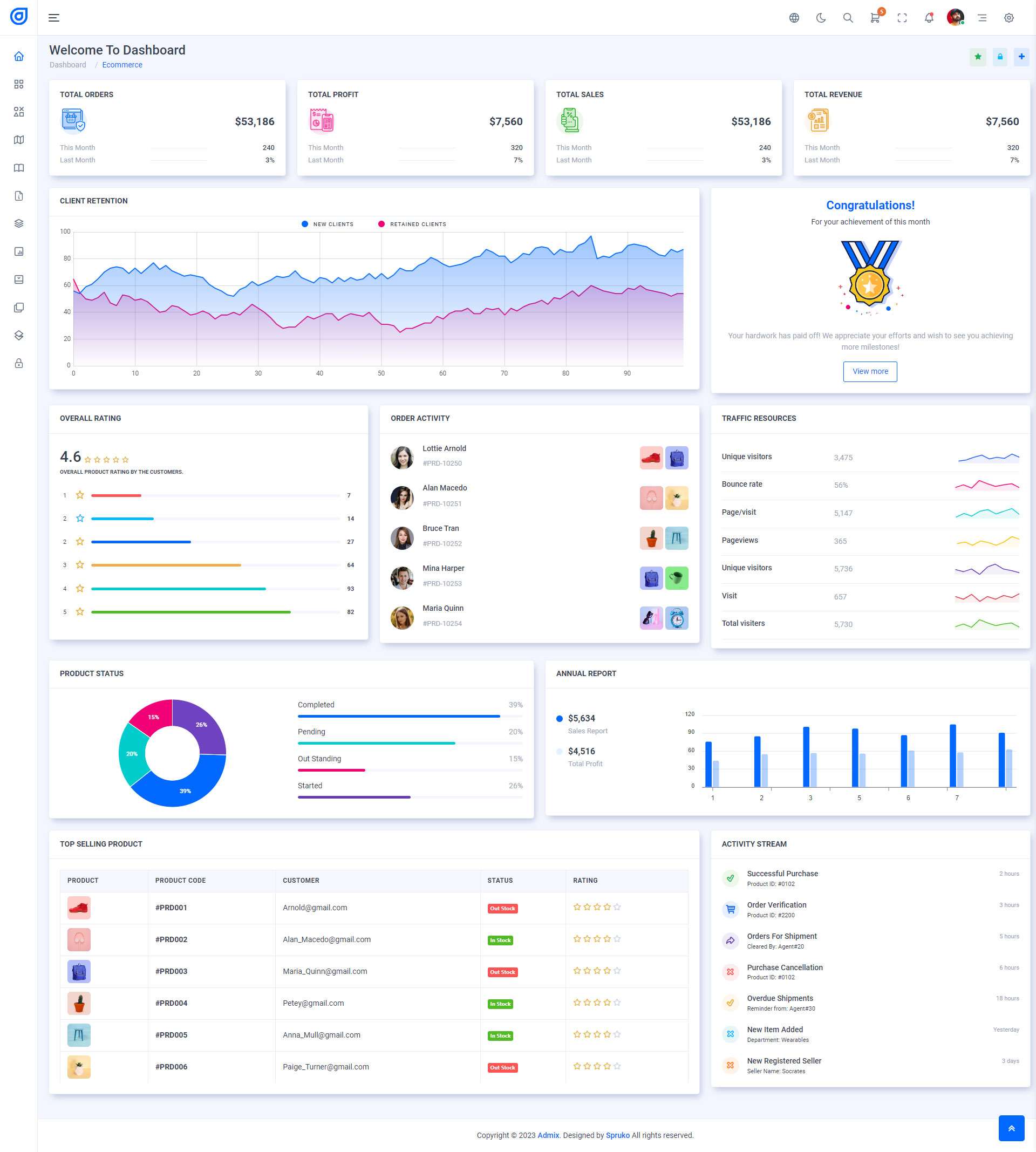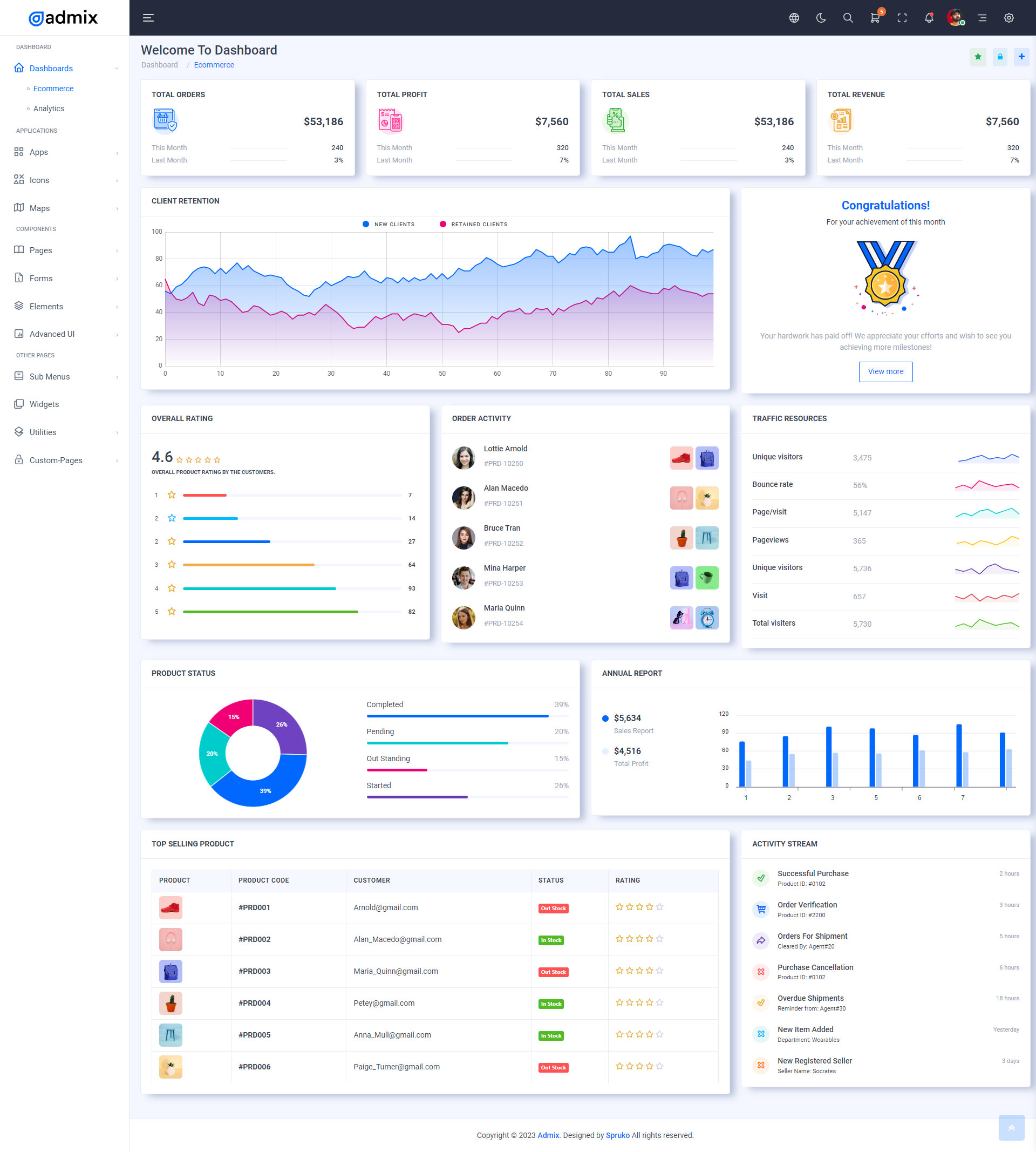 Explore the latest trending features incorporated into the Admix Admin template, showcasing how we have enhanced and designed our template. When it comes to design, we always keep a close watch on the most trending features.
