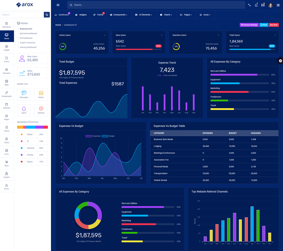 Arox admin template comes with of ready to use feature. It has lots of premade functionality which completely ready for any projects.