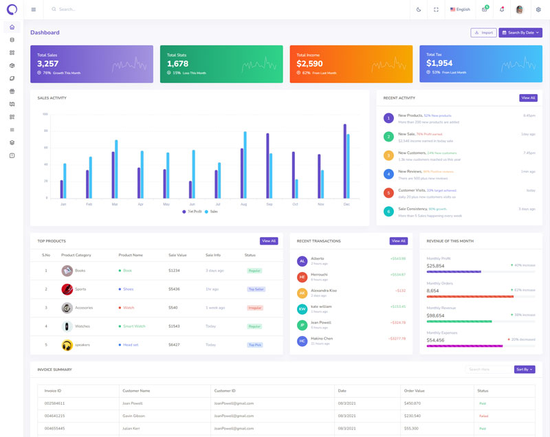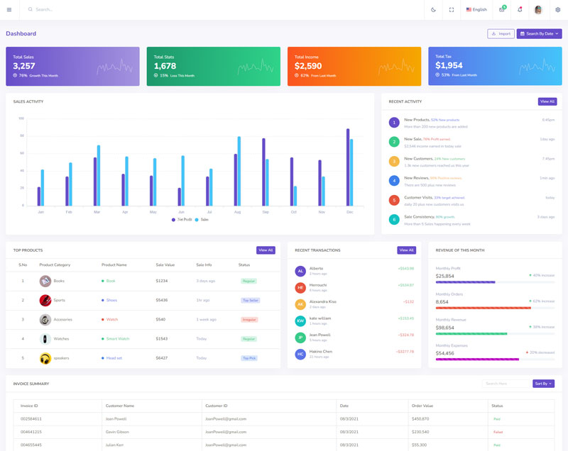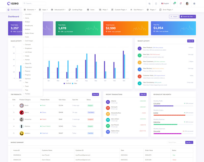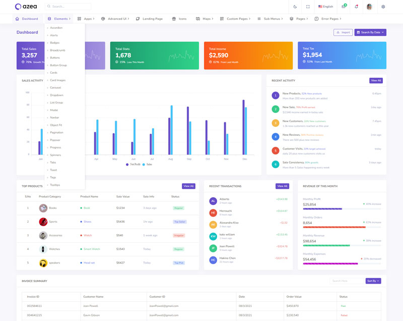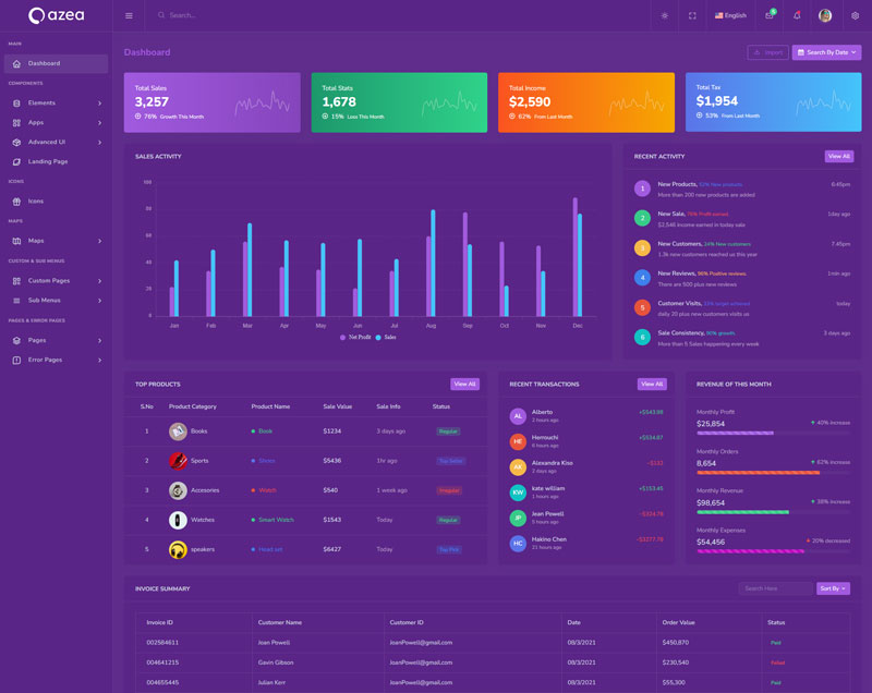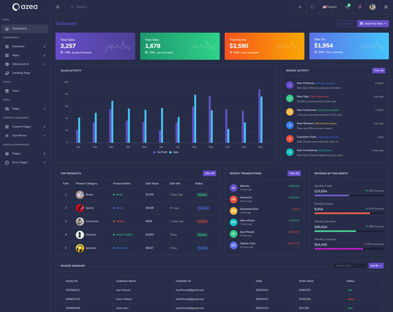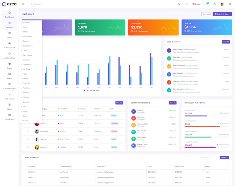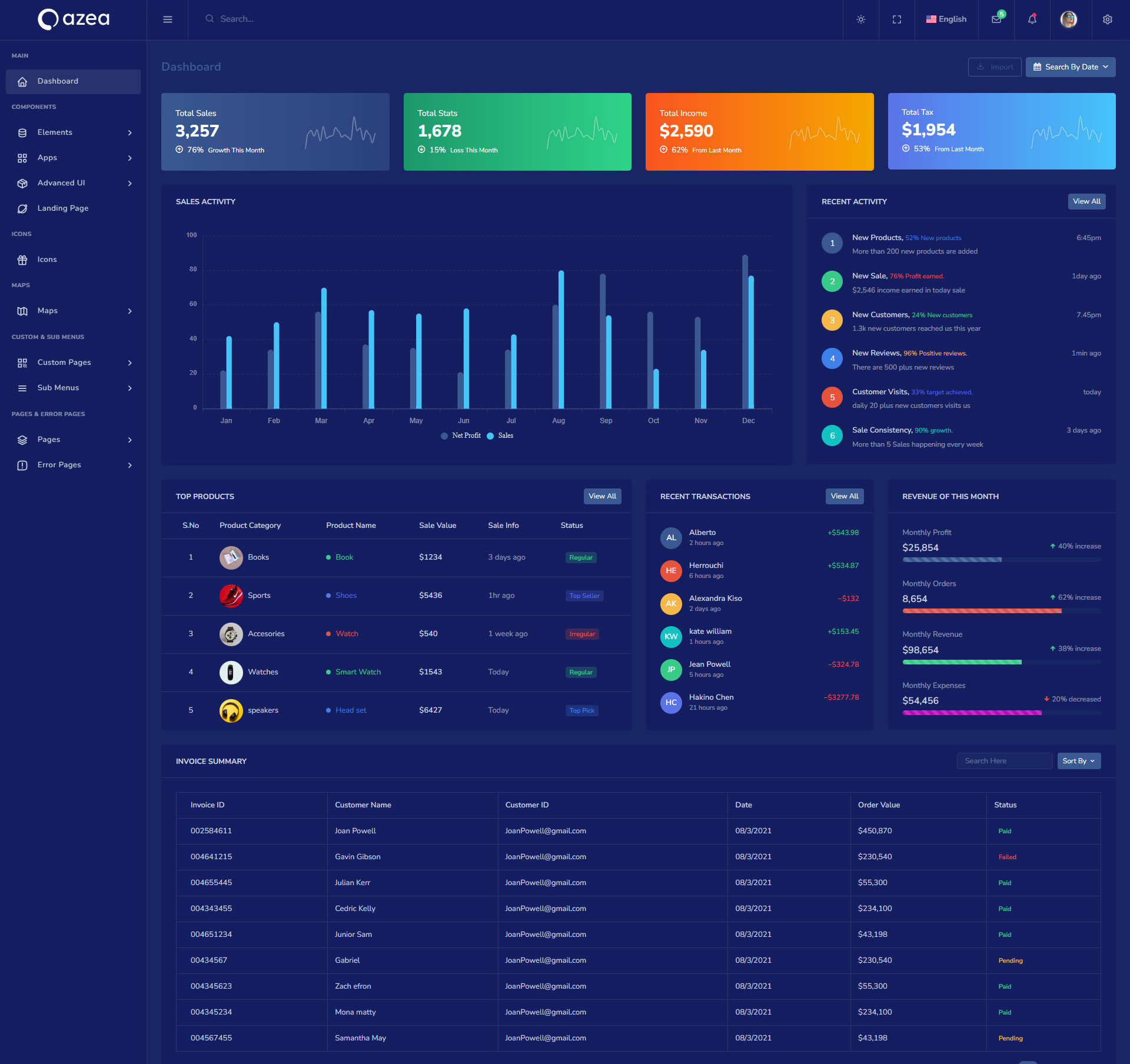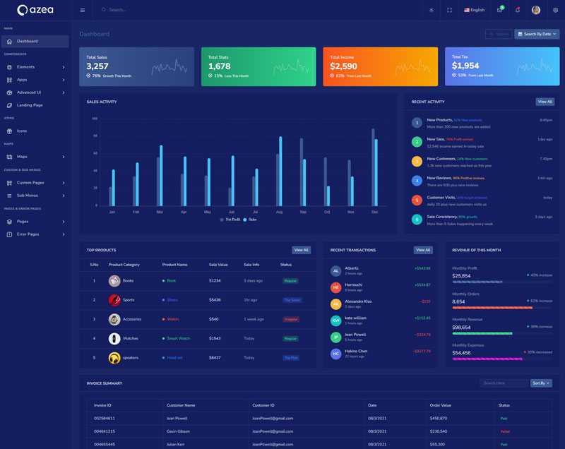 Explore the latest trending features incorporated into the Azea Admin template, showcasing how we have enhanced and designed our template. When it comes to design, we always keep a close watch on the most trending features.