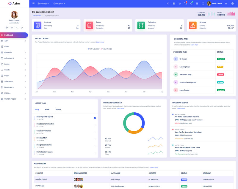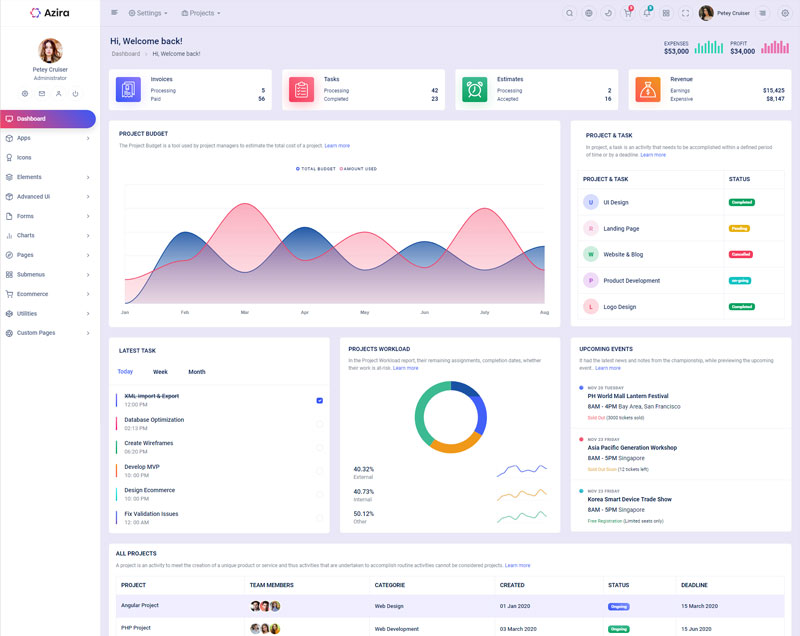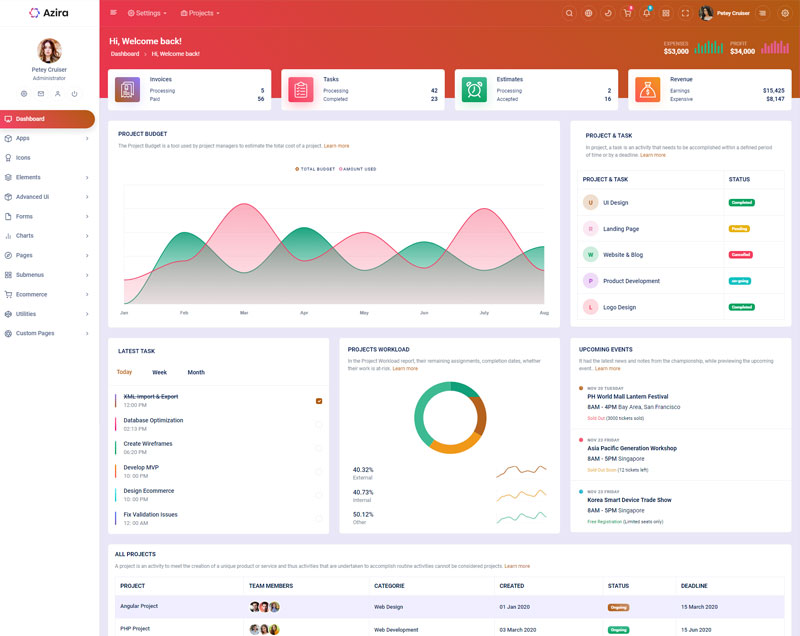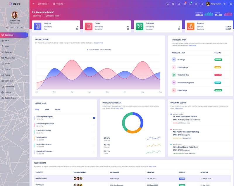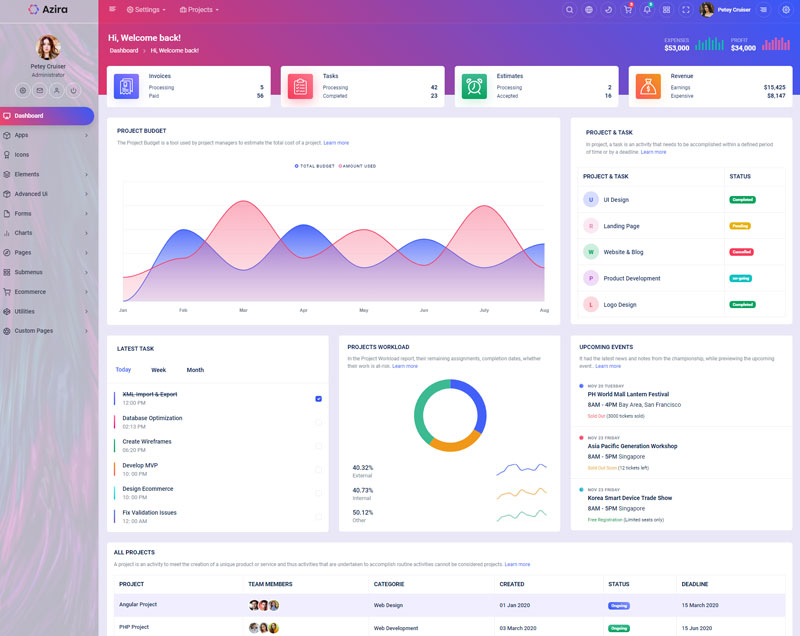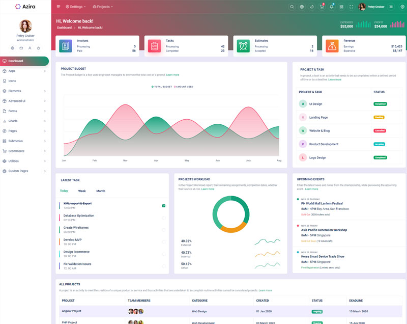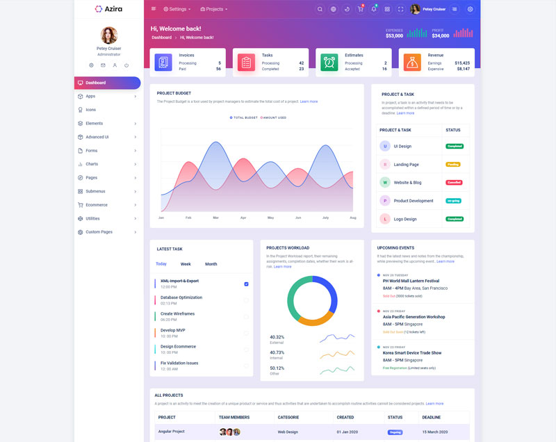 Explore the latest trending features incorporated into the Azira Admin template, showcasing how we have enhanced and designed our template. When it comes to design, we always keep a close watch on the most trending features.
