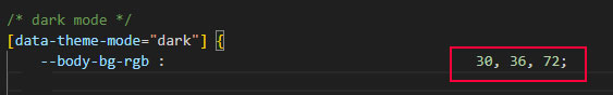 Also Change the following variable colors to the desired theme background accordingly in [data-theme-mode="dark"]