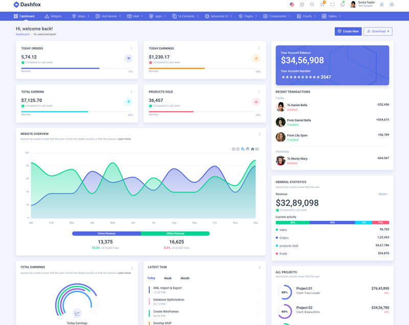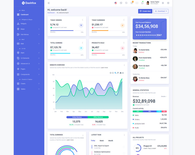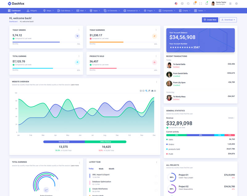 Dashfox admin template comes with ready to use features. It has lots of ready-made features saves more time for developers.