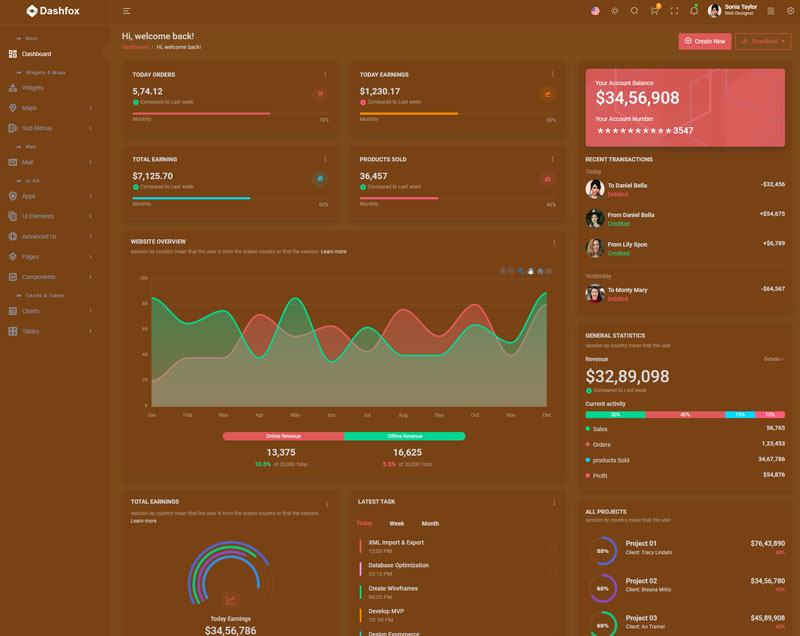 Have a look at the numerous versions we integrated in Dashfox bootstrap-5 premium admin and dashboard template,where you can customize theme in unlimited ways.