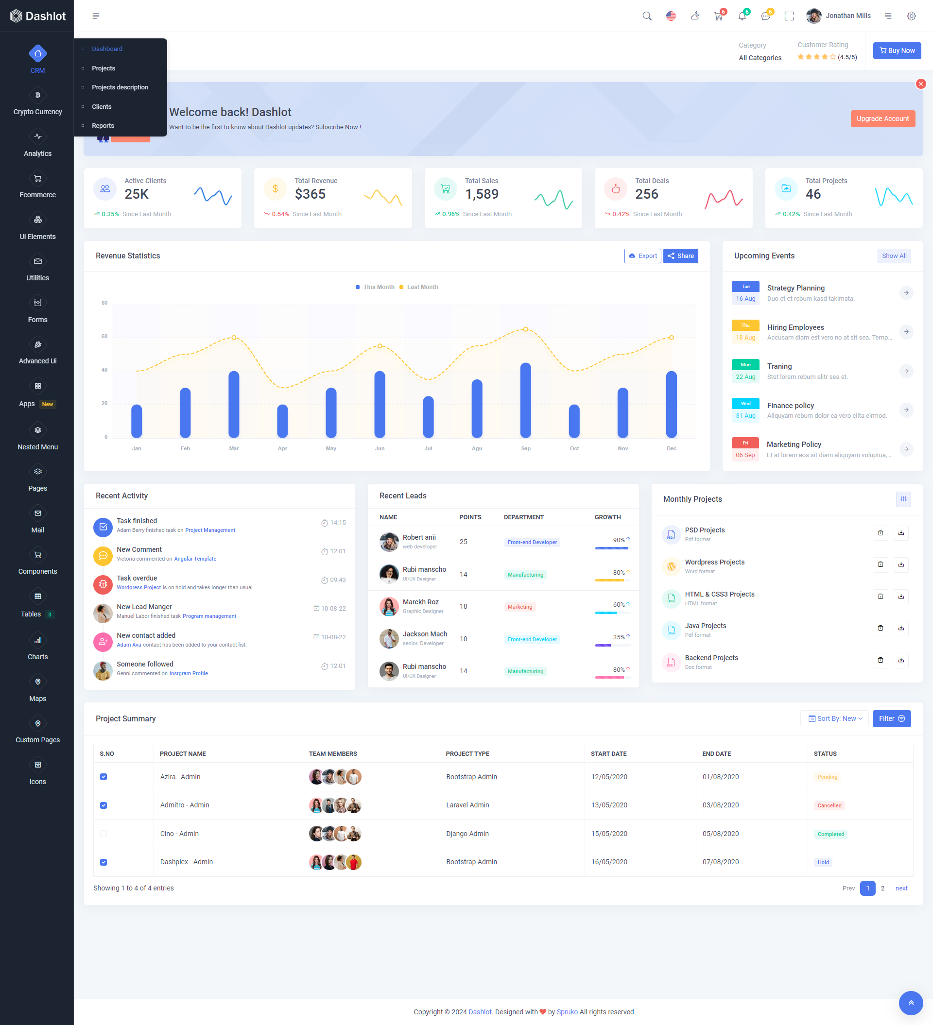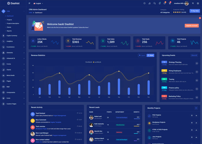 Check out our most attractive dashboard screenshots that are available in the Dashlot admin template.
