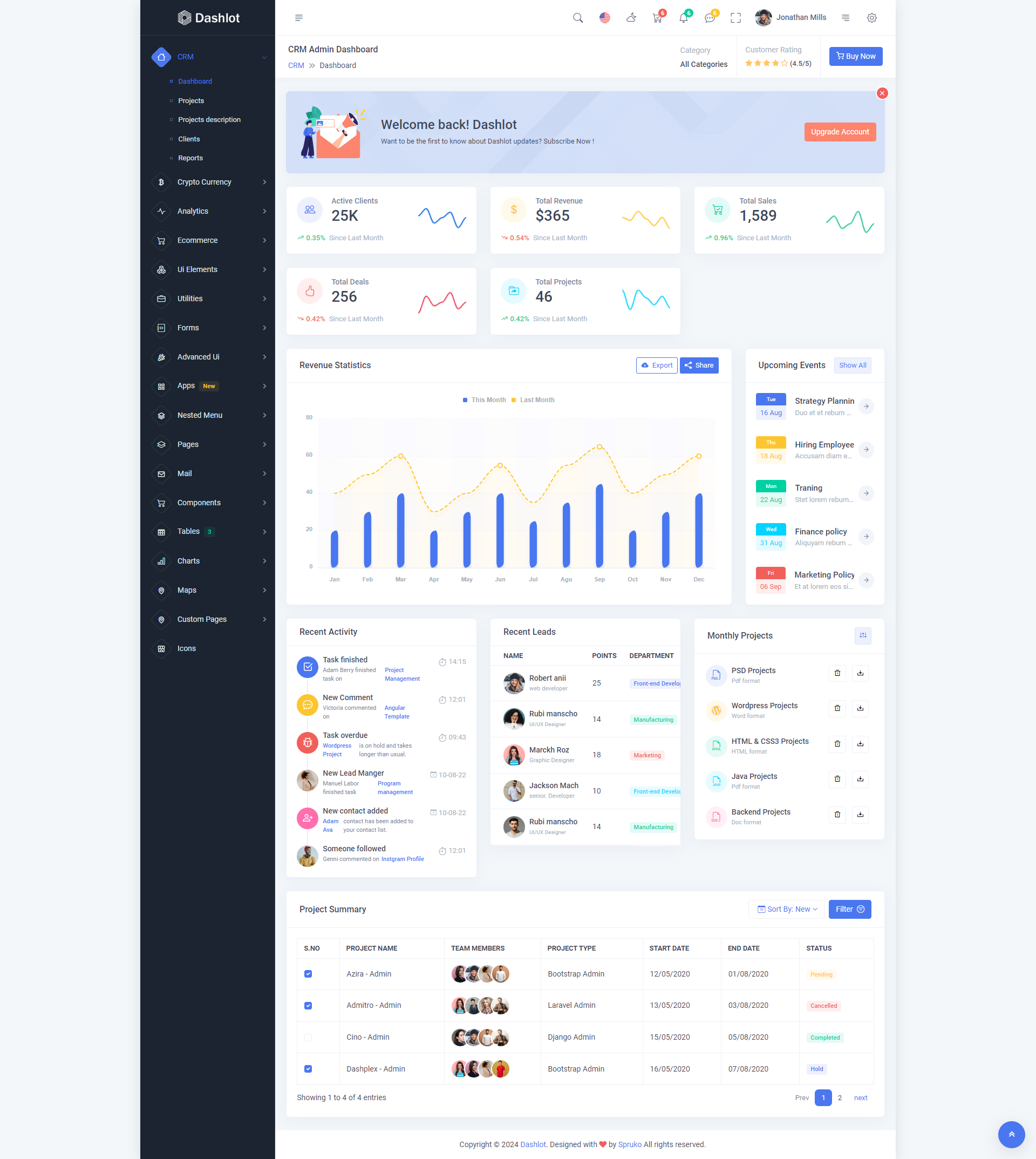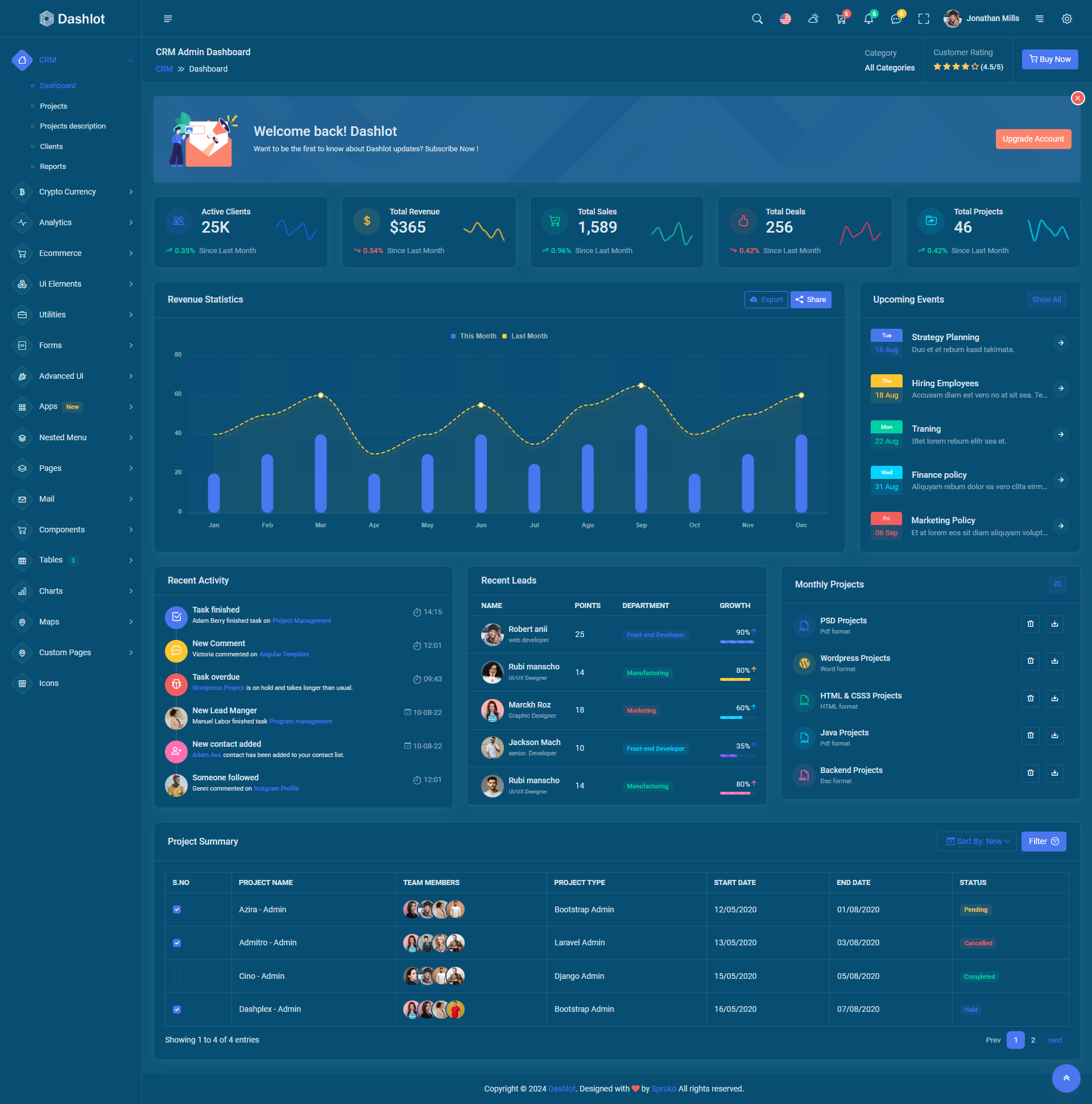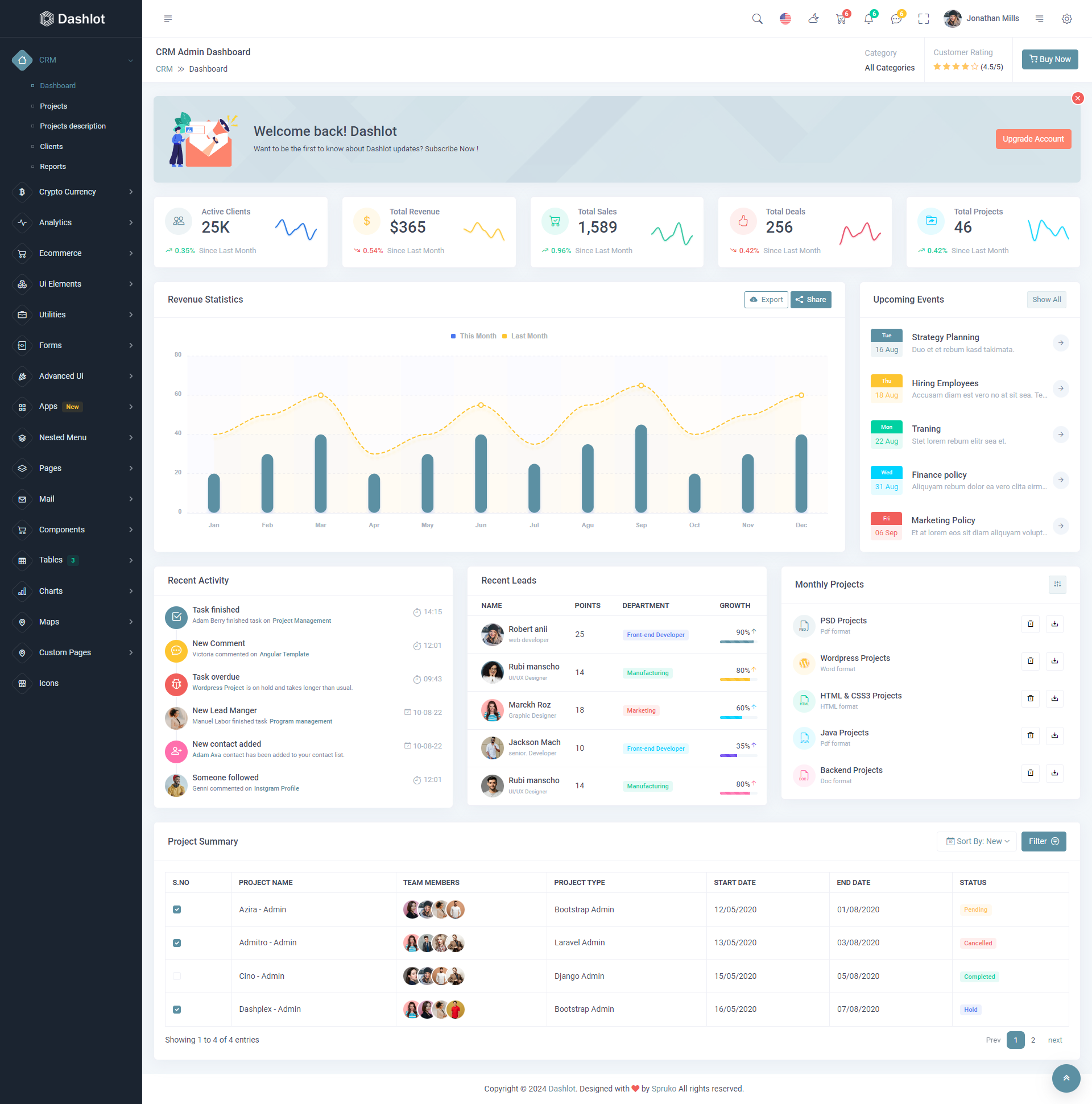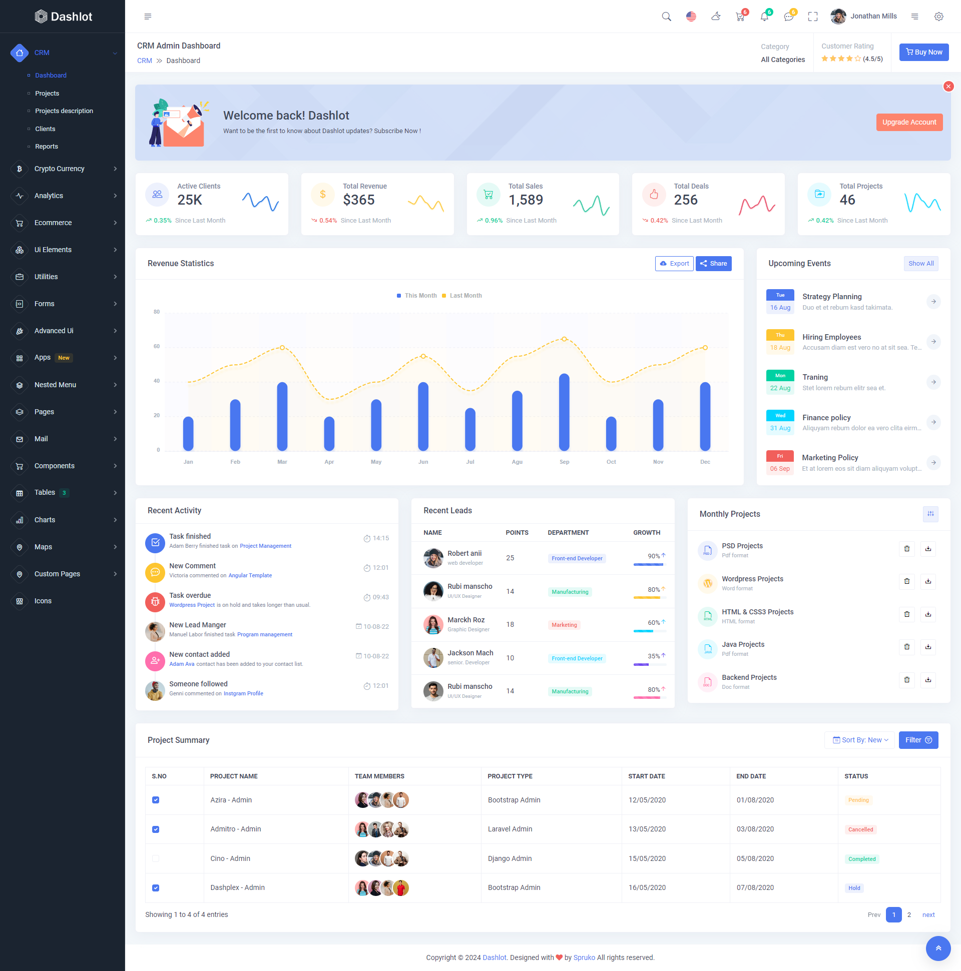 Dashlot admin template comes with ready to use features. It has lots of ready-made features saves more time for developers.