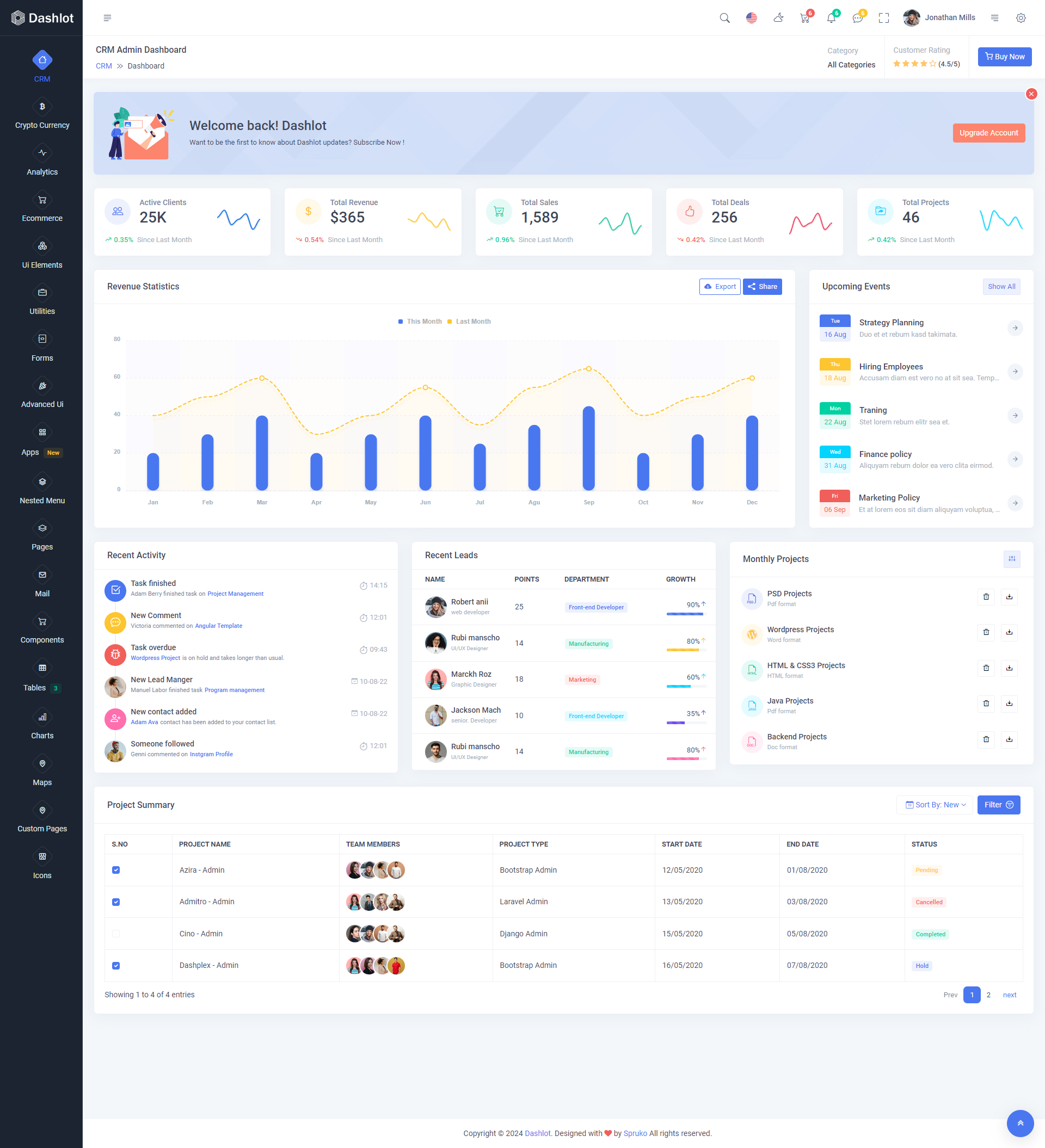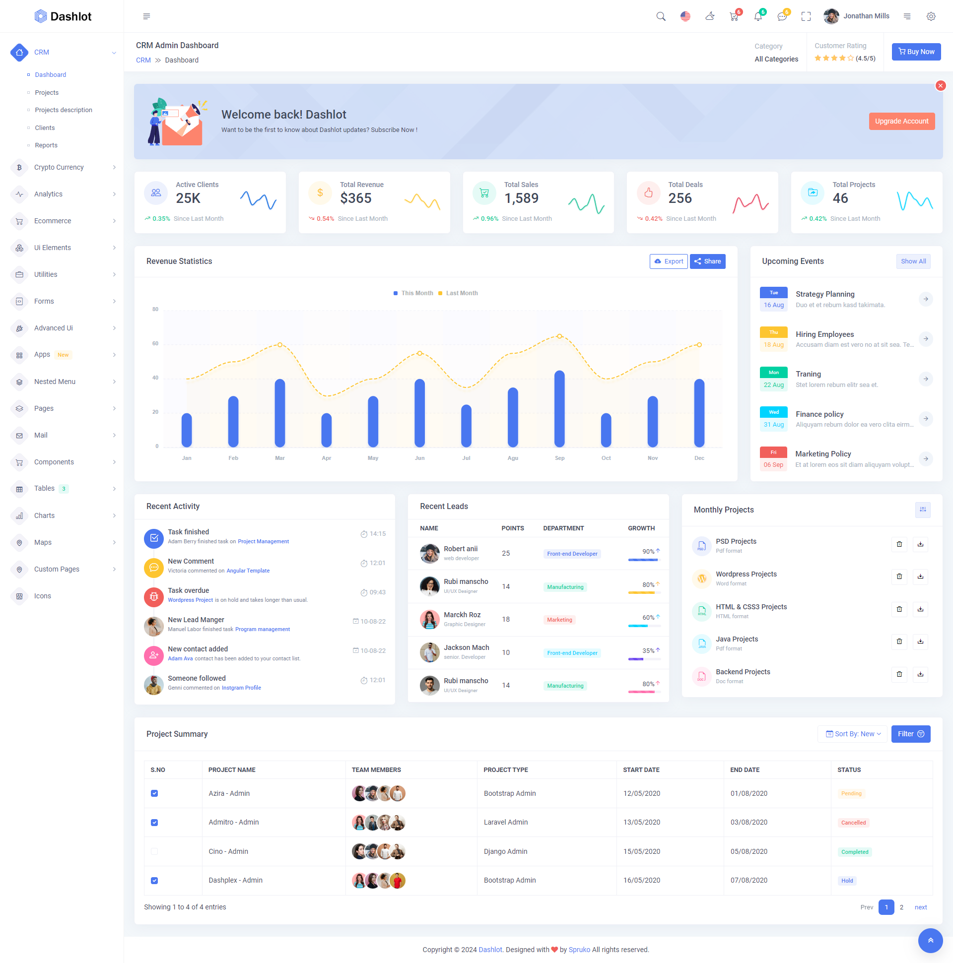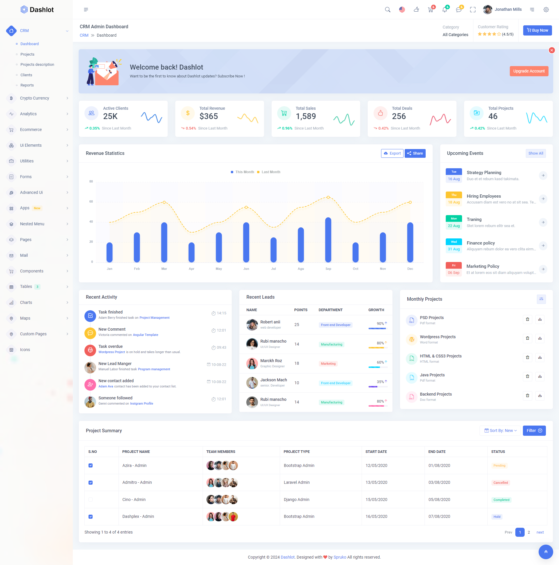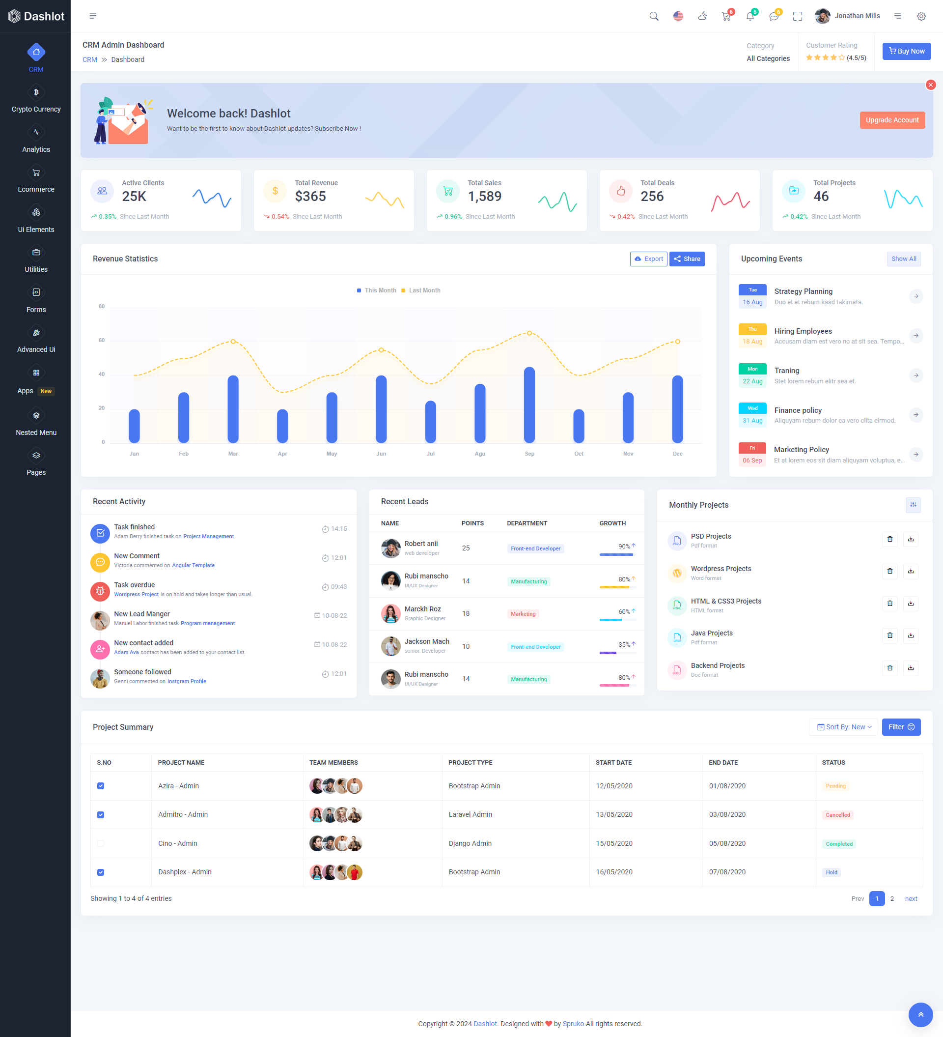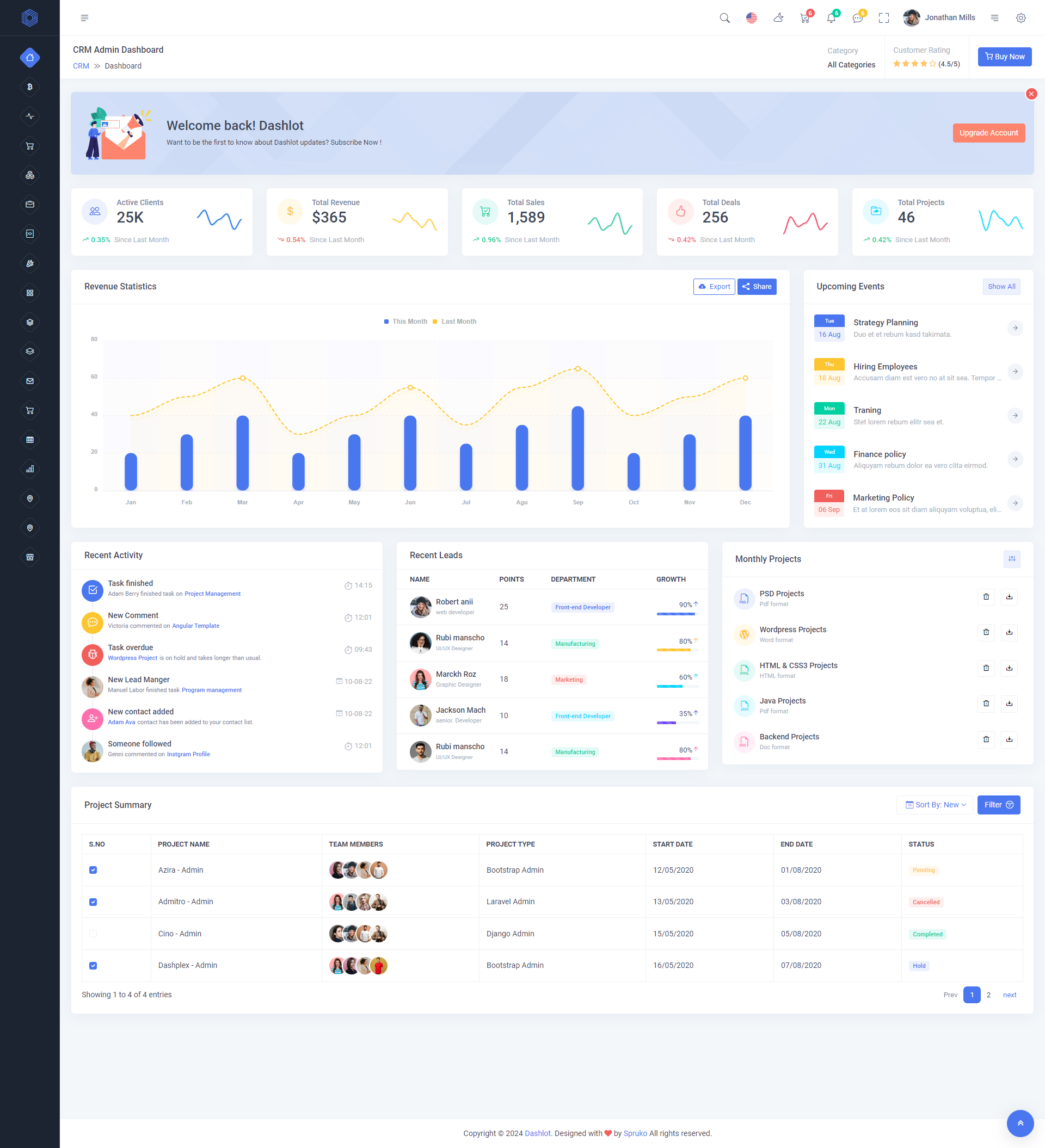 Dashlot admin template comes with ready to use features. It has lots of ready-made features saves more time for developers.