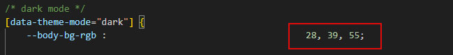 Also Change the following variable colors to the desired theme background accordingly in [data-theme-mode="dark"]