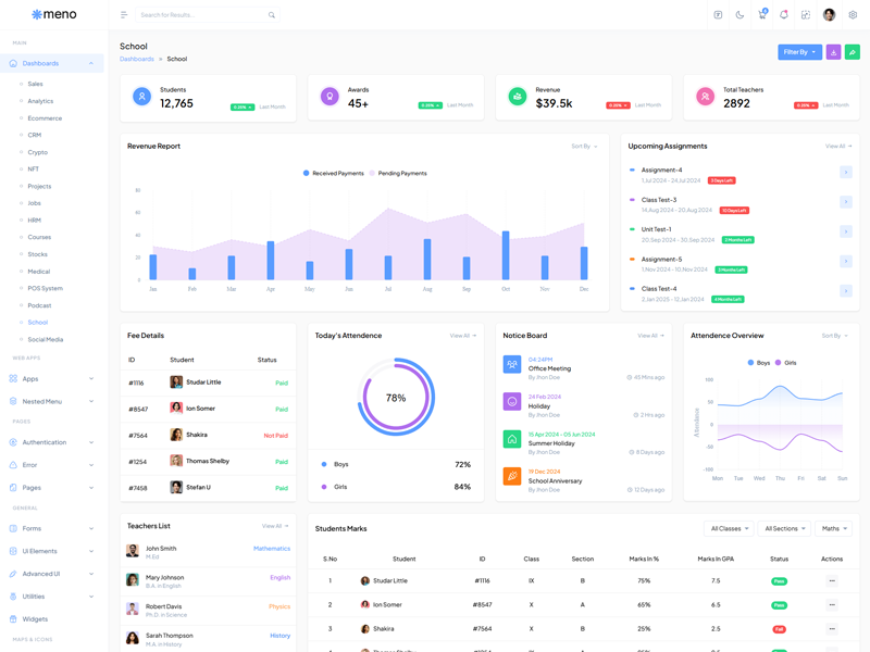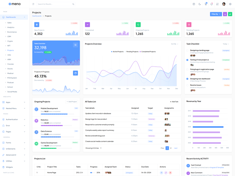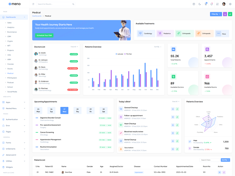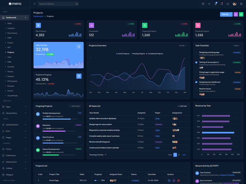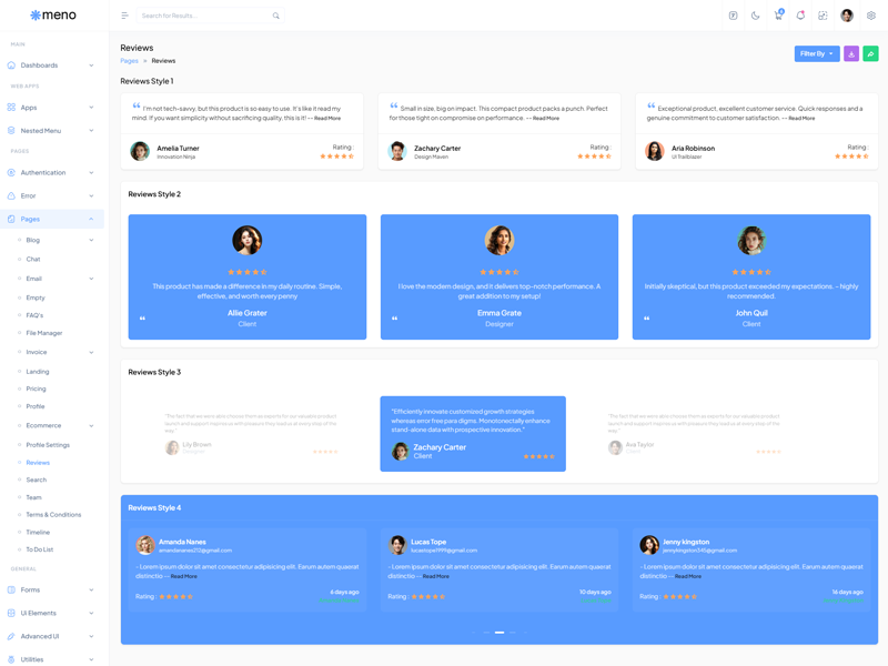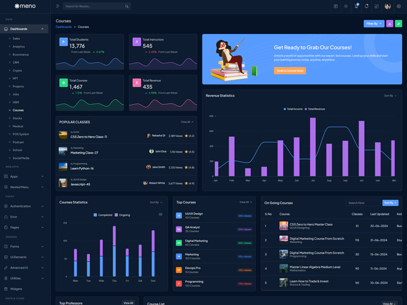 Explore the latest trending features incorporated into the Meno Admin template, showcasing how we have enhanced and designed our template. When it comes to design, we always keep a close watch on the most trending features.