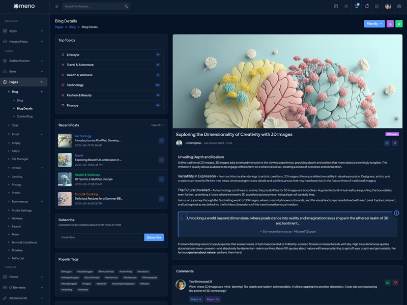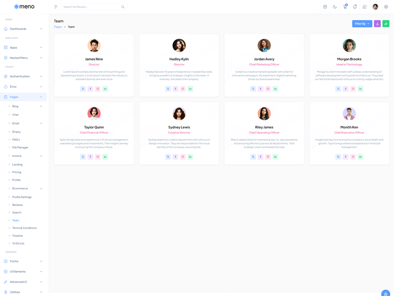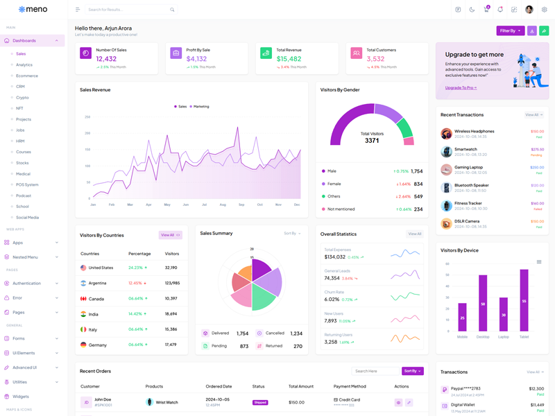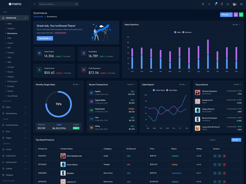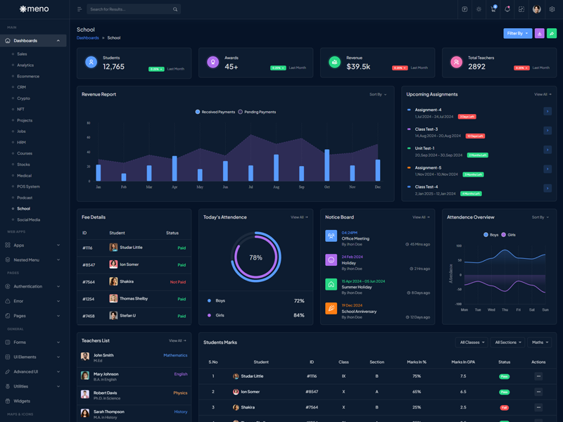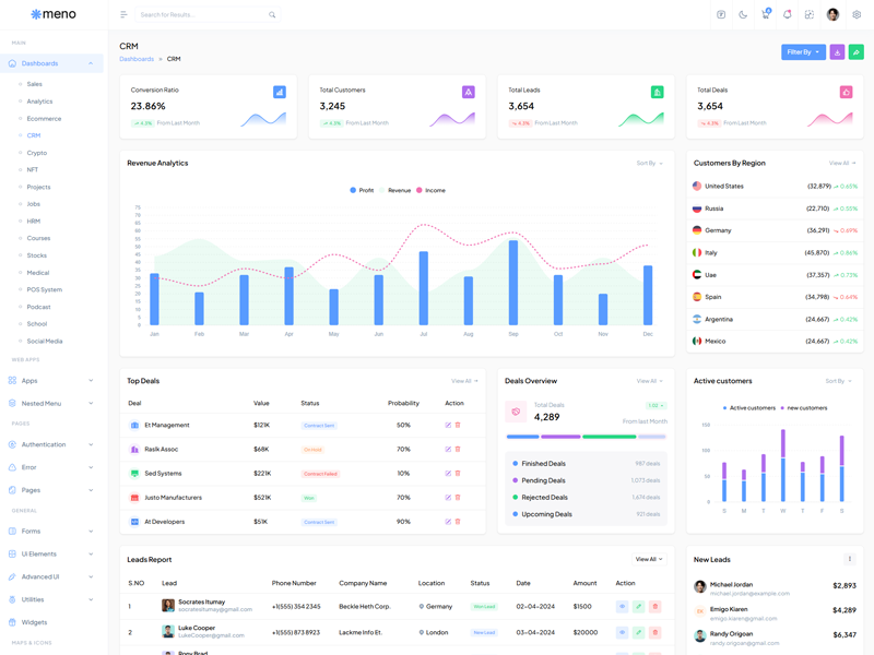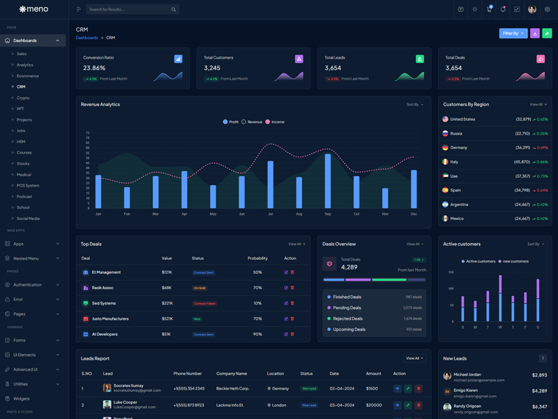 Explore the latest trending features incorporated into the Meno Admin template, showcasing how we have enhanced and designed our template. When it comes to design, we always keep a close watch on the most trending features.