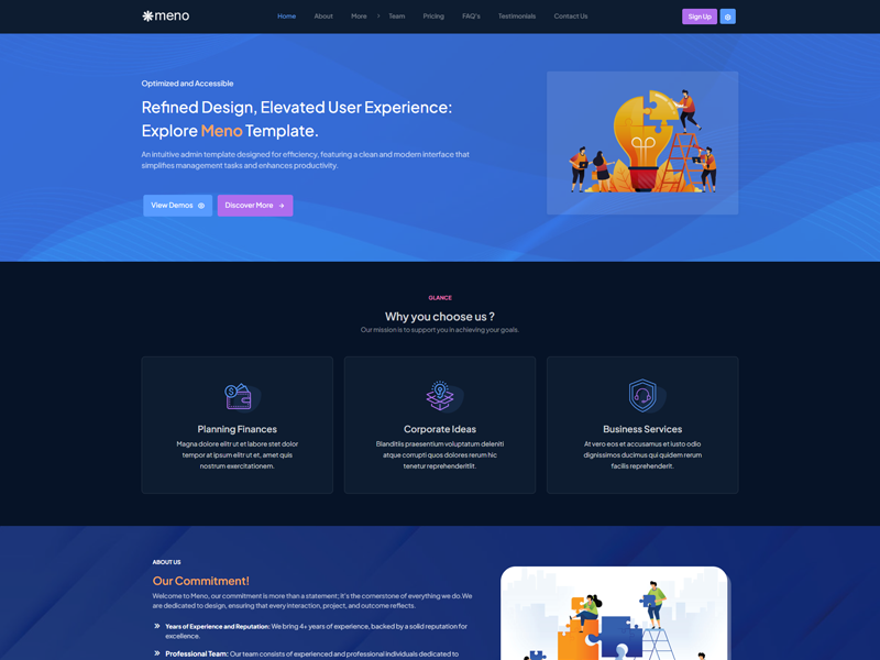 Meno admin template comes with ready to use features. It has lots of ready-made features saves more time for developers.