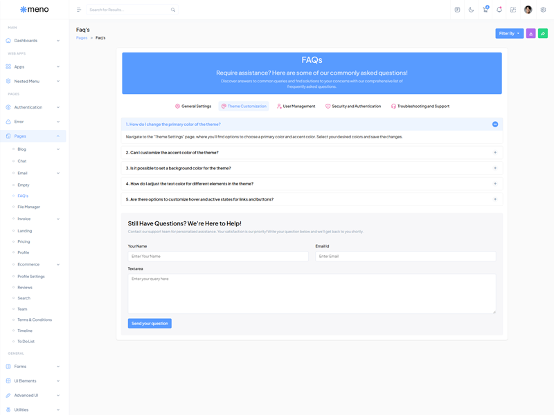 Enjoy lifetime updates for free with your purchase of the Meno Admin Dashboard template. For any questions our support team is always available to assist you.