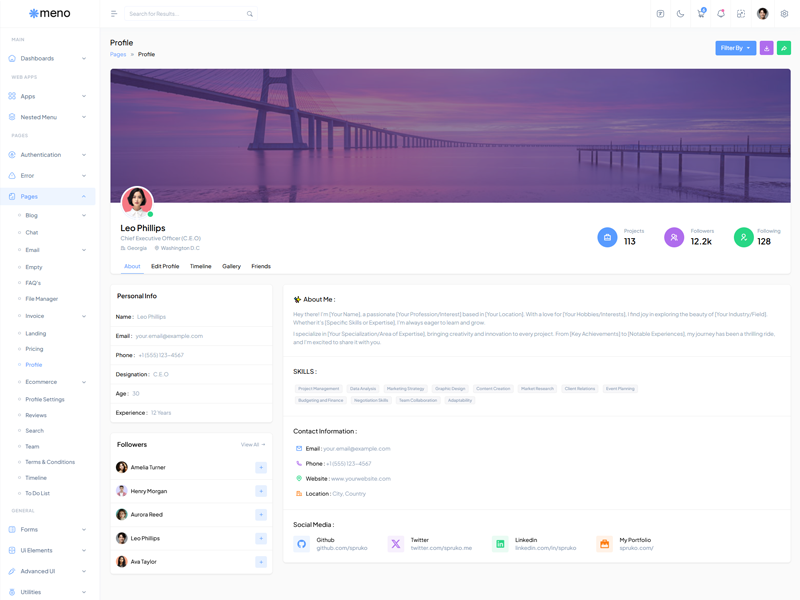 This is the basic information related to “Meno bootstrap-5 Dashboard Template”.