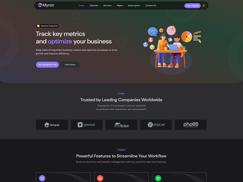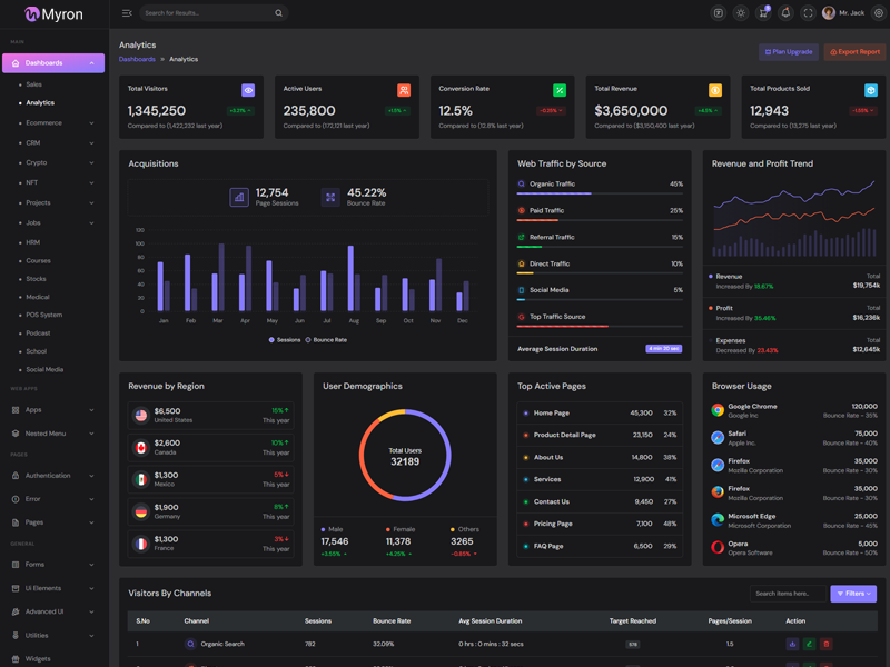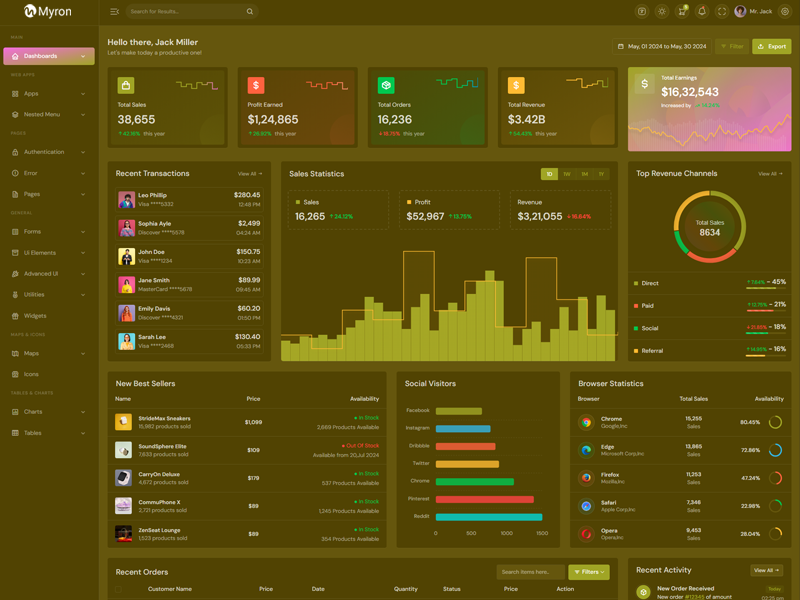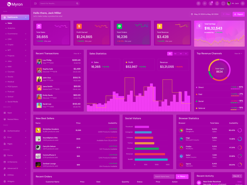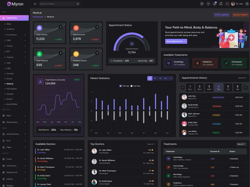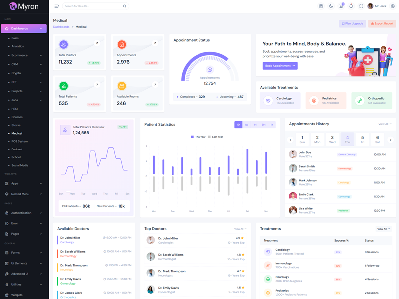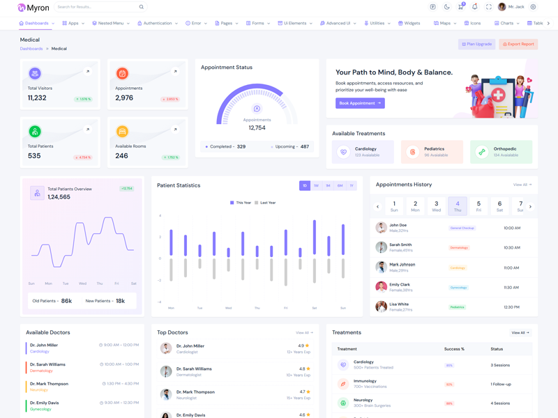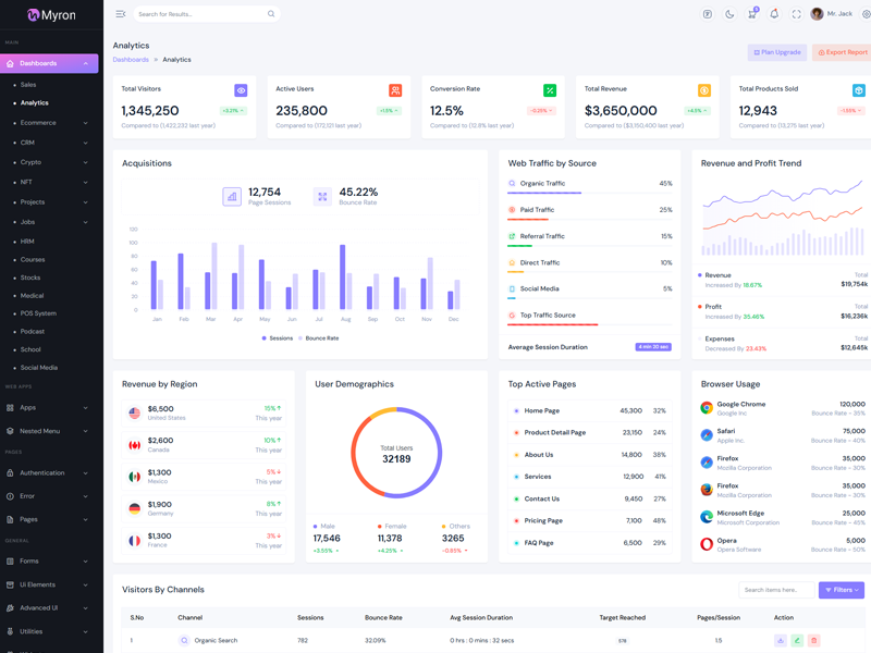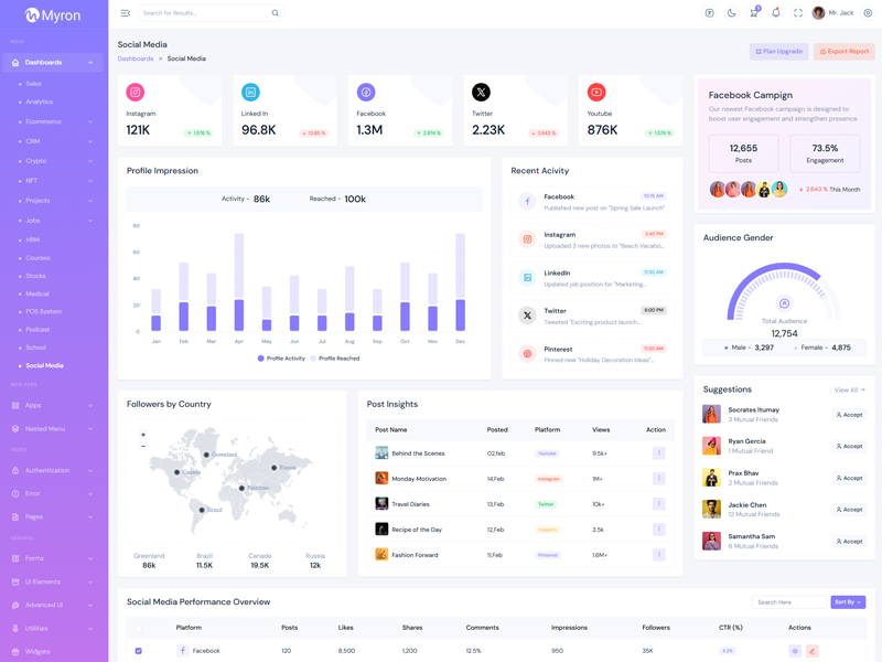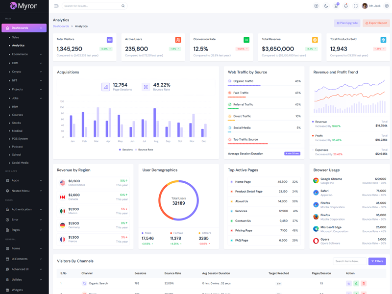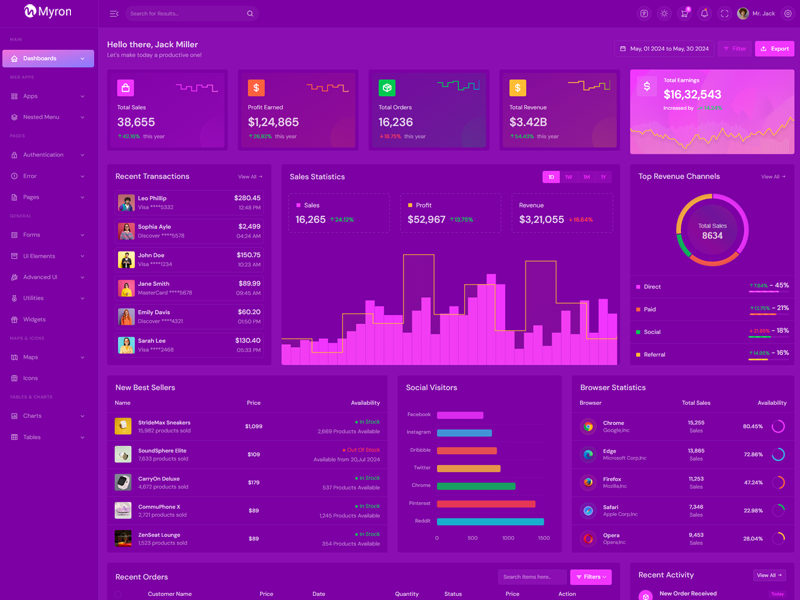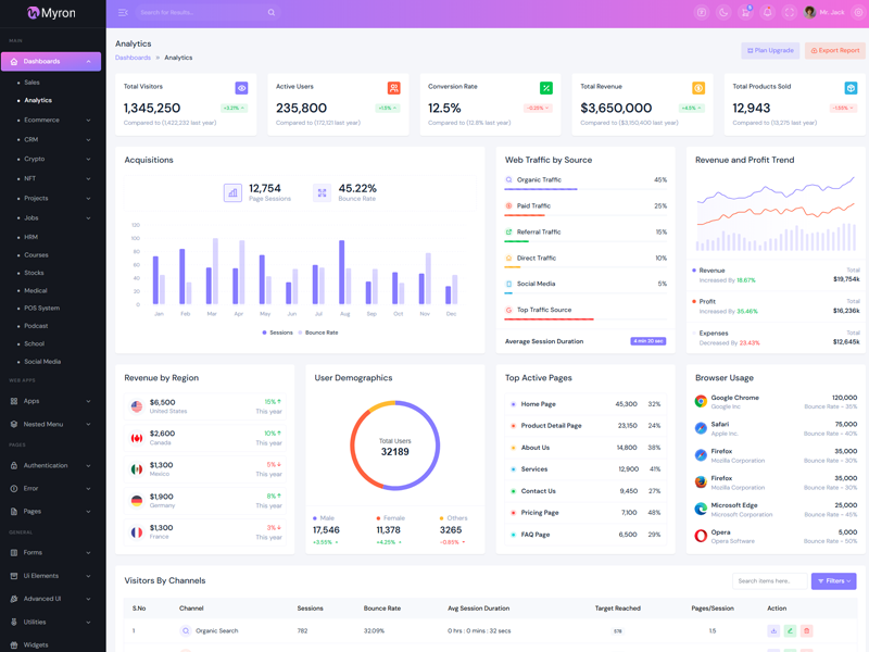 Myron – Innovative Boostrap Admin Dashboard Template offers top-tier design, seamless framework compatibility, full responsiveness, and easy customization. With beginner-friendly docs, dedicated support, and integrated plugins, Myron provides a powerful foundation for modern applications.