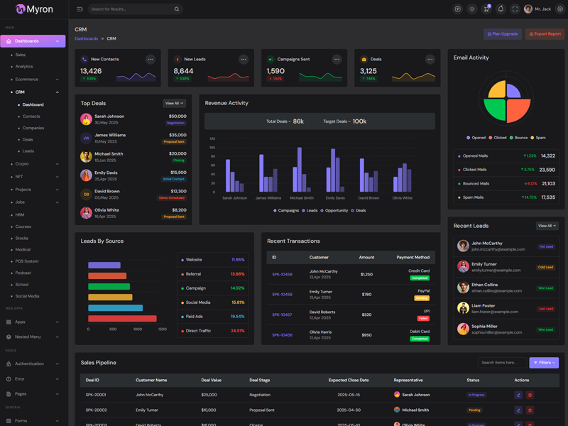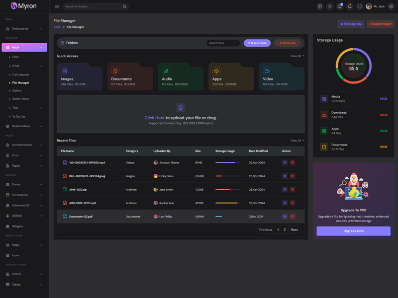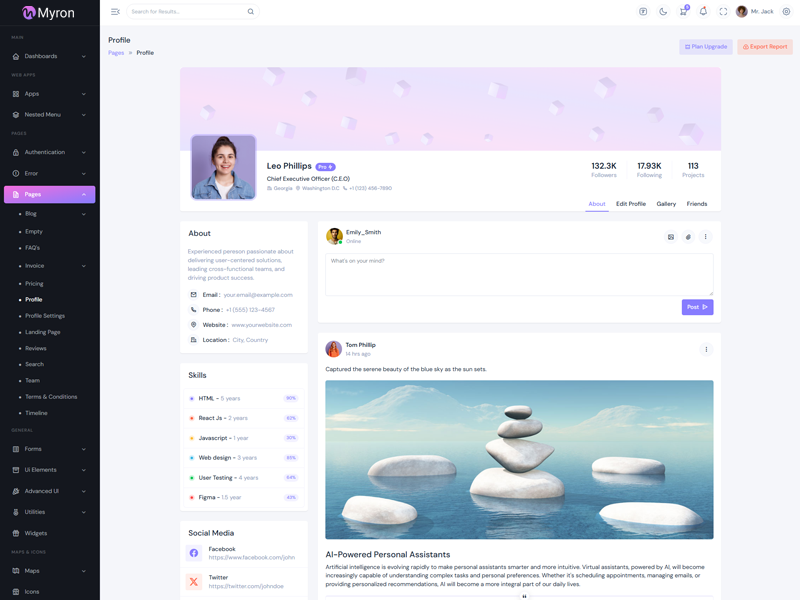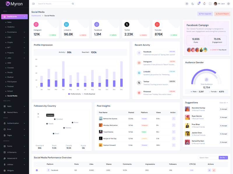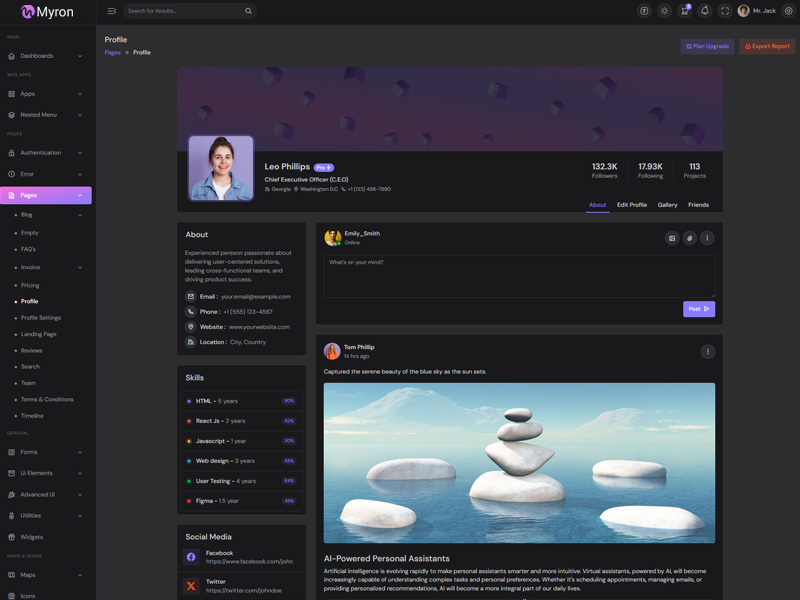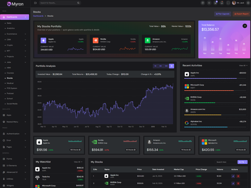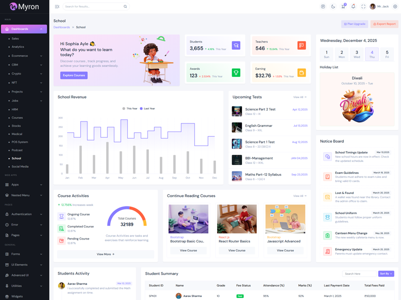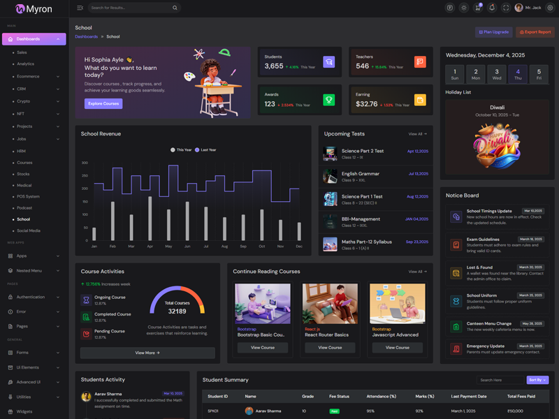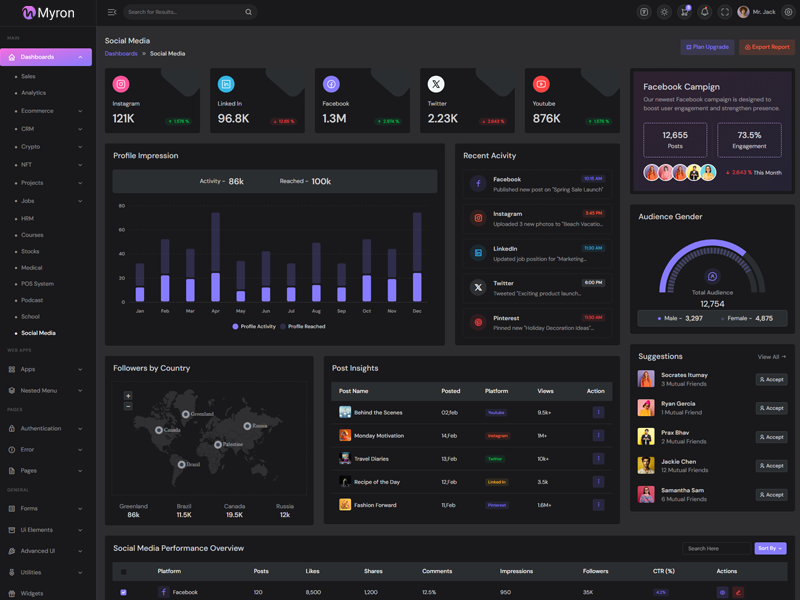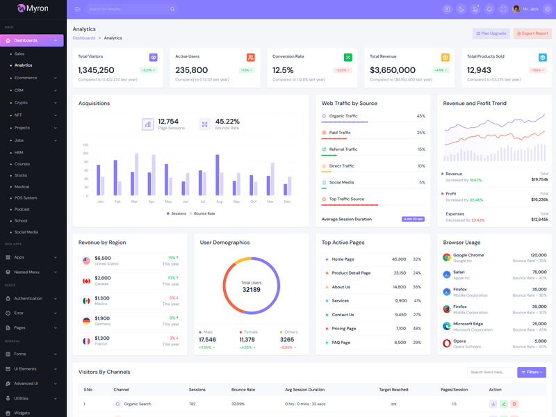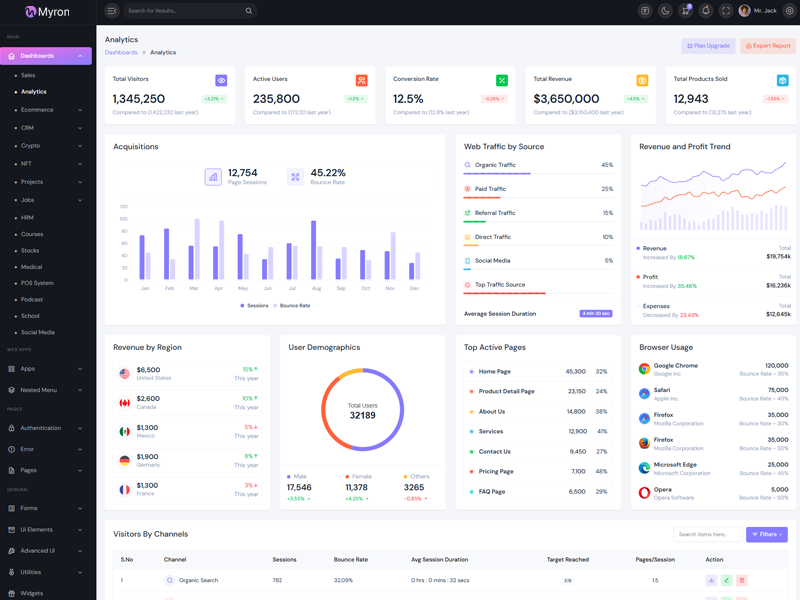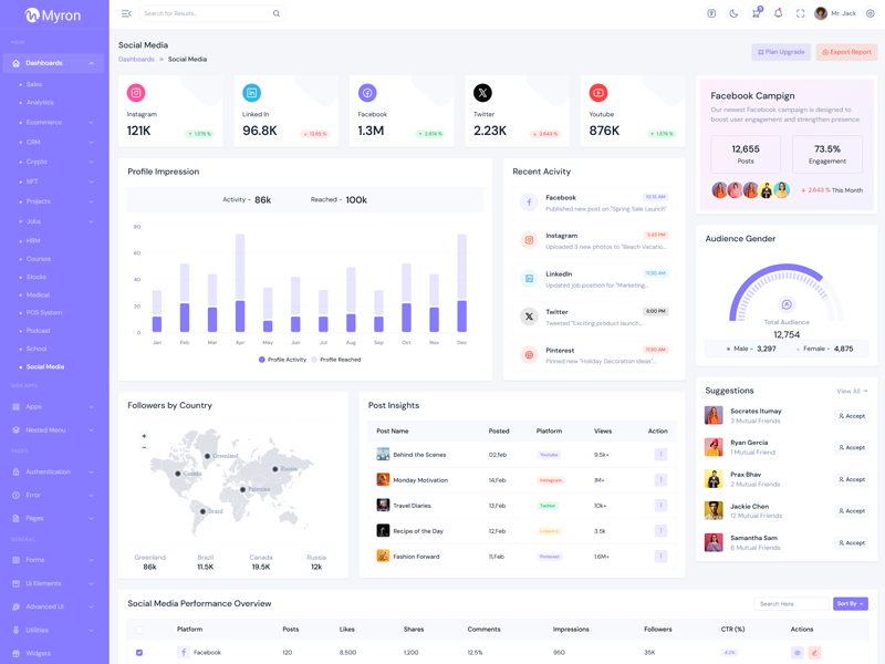 Myron – Innovative Boostrap Admin Dashboard Template offers top-tier design, seamless framework compatibility, full responsiveness, and easy customization. With beginner-friendly docs, dedicated support, and integrated plugins, Myron provides a powerful foundation for modern applications.