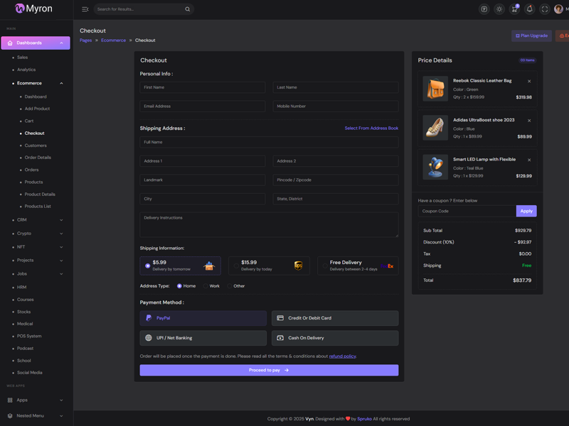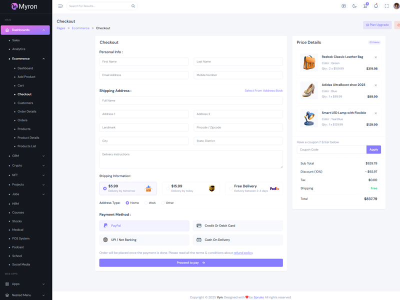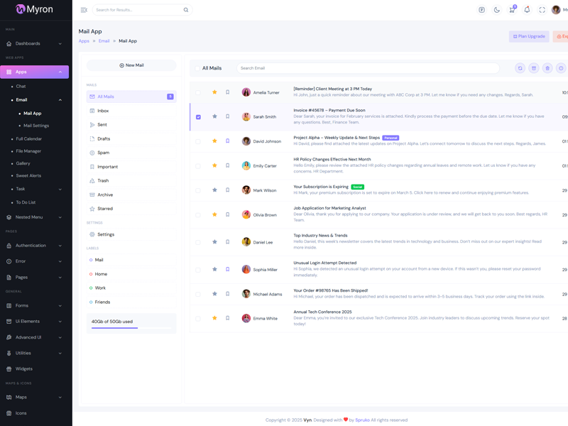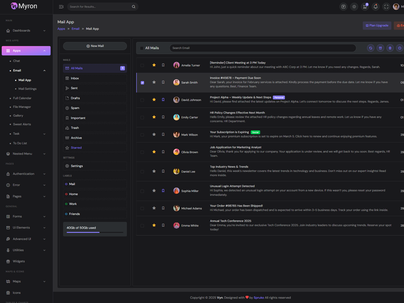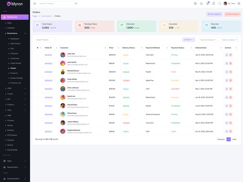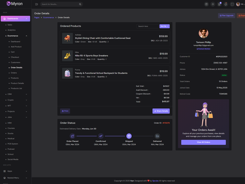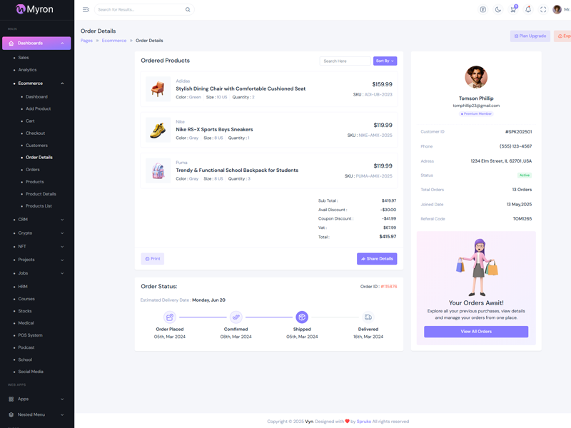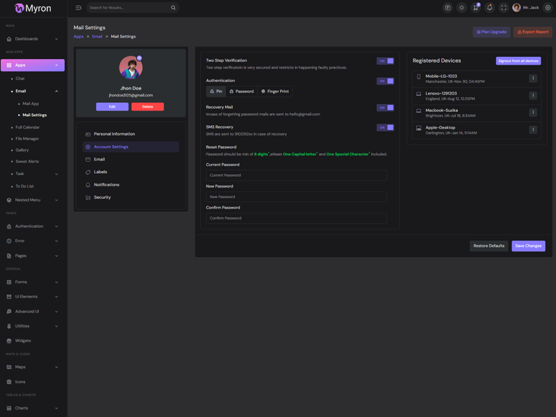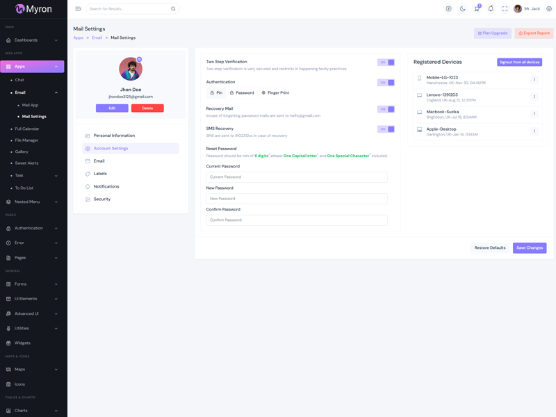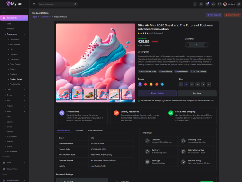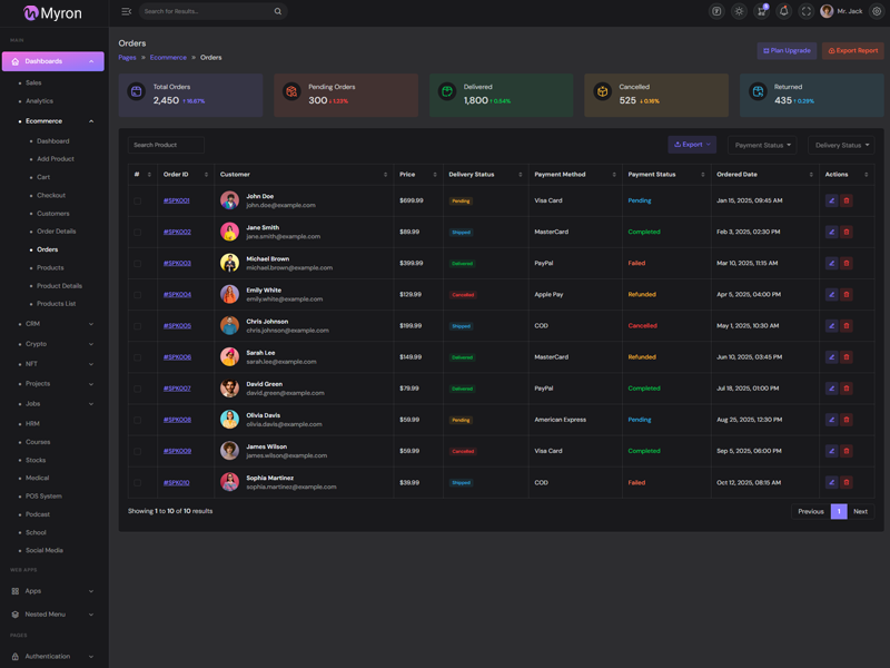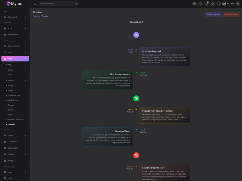 Discover the multiple Features packed into the Myron Premium Admin & Dashboard Template, each offering flexible customization to suit any project style or requirement. Built for developers of all levels, Myron makes it easy to create stunning, high-performance dashboards with minimal effort.